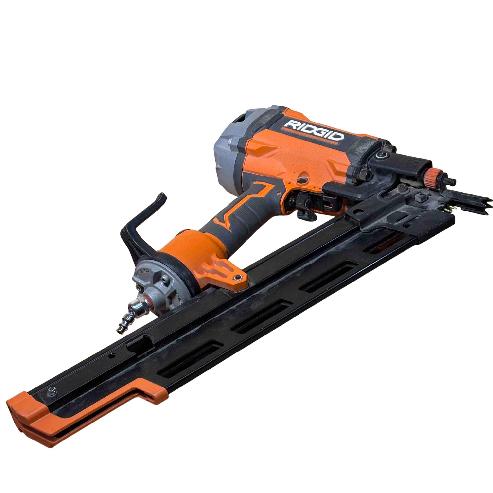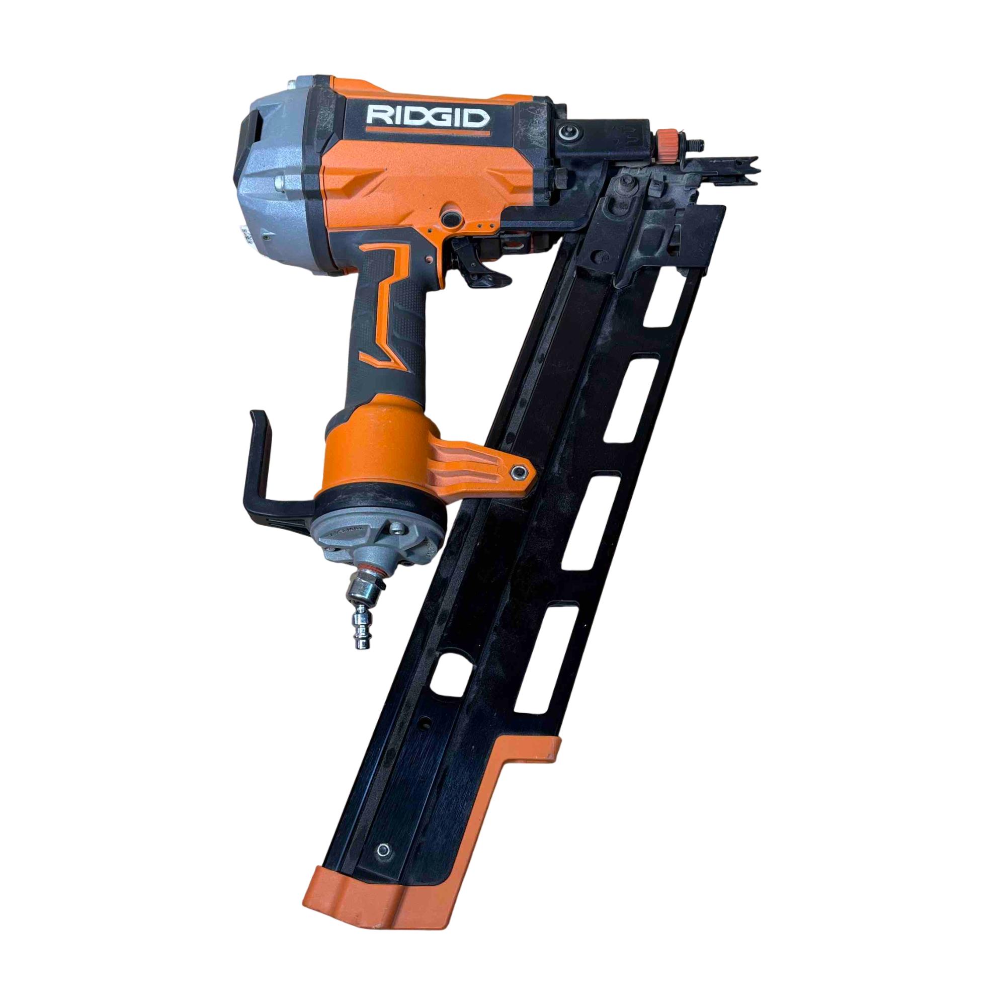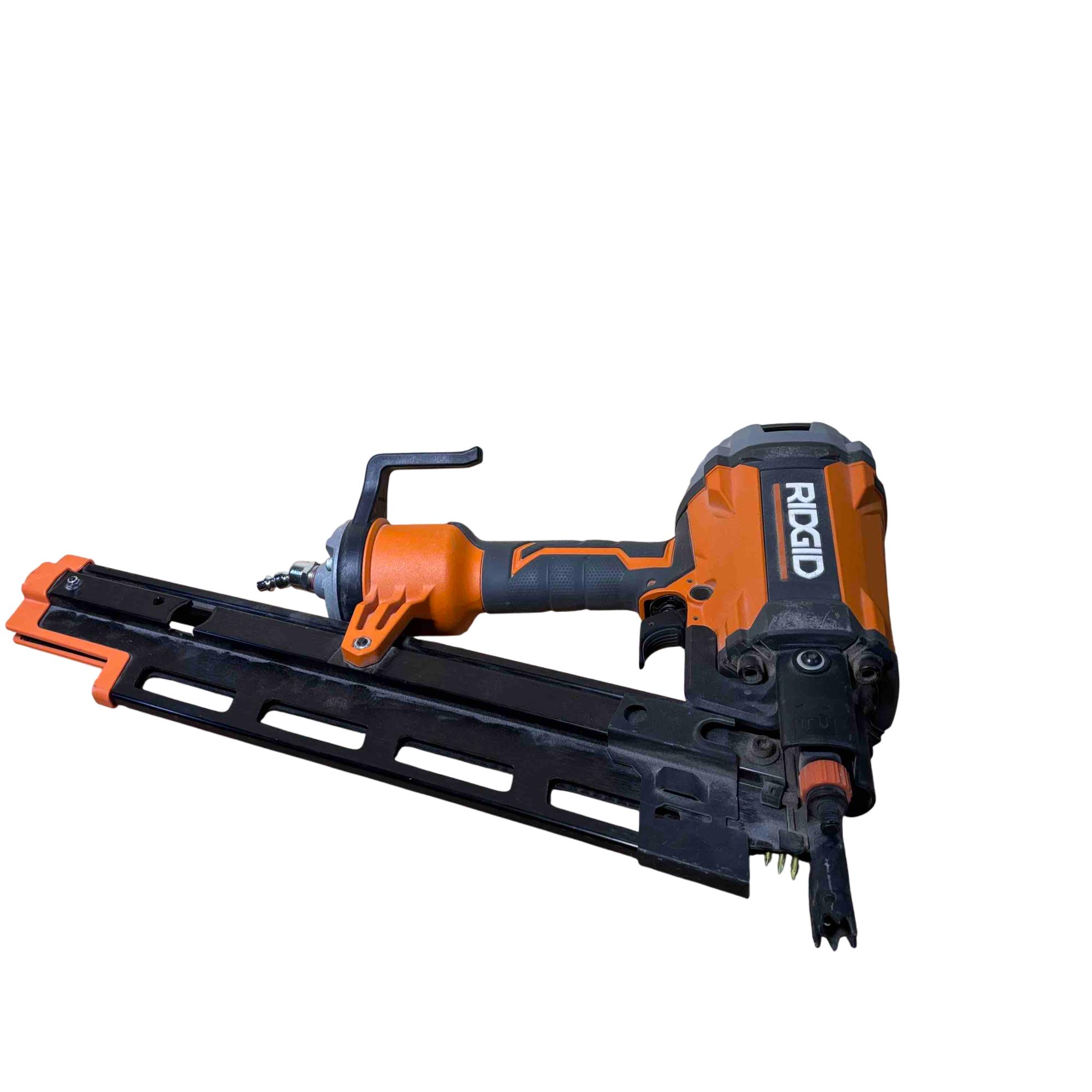 RIDGID R350RHF 21° Round Head Framing Nailer (Mg Body) is a durable pneumatic tool designed for efficient wood framing and construction tasks. Featuring a lightweight magnesium body and a 3-1/2 inch round-head nail capacity, this framing nailer delivers precision and power for professional-grade performance.