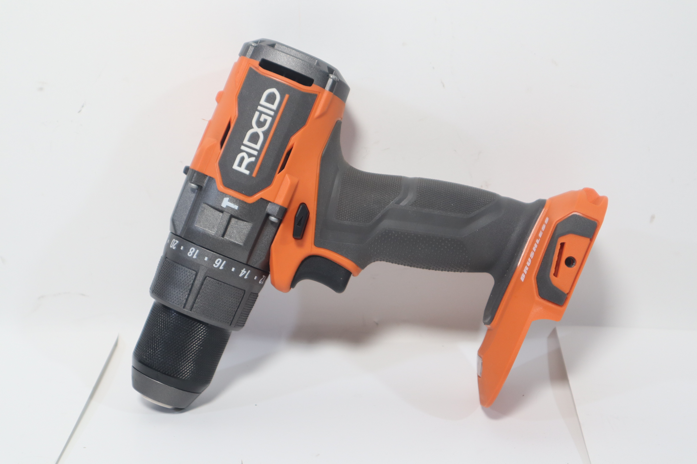 Introducing the R86115 18V Brushless 1/2 in. Hammer Drill/Driver Kit. RIDGID brushless motor technology delivers maximum performance and longer runtime. The RIDGID 18V Brushless 1/2 in. Hammer Drill delivers up to 800 in./lbs. of torque for maximum power. With a 2-speed gearbox and max RPM of 2,100, this 18V brushless hammer drill can handle the complete range of drilling application like drilling and driving into wood and metal as well as drilling into masonry. It was designed with superior ergonomics for enhanced user comfort. This 18V brushless hammer drill is 35% more compact and 20% lighter weight than the previous model (R8611506), and still powers through even the most demanding applications. The RIDGID 18V Brushless 1/2 in. Hammer Drill features an all-metal 1/2 in. ratcheting chuck and metal gearcase for maximum jobsite durability.