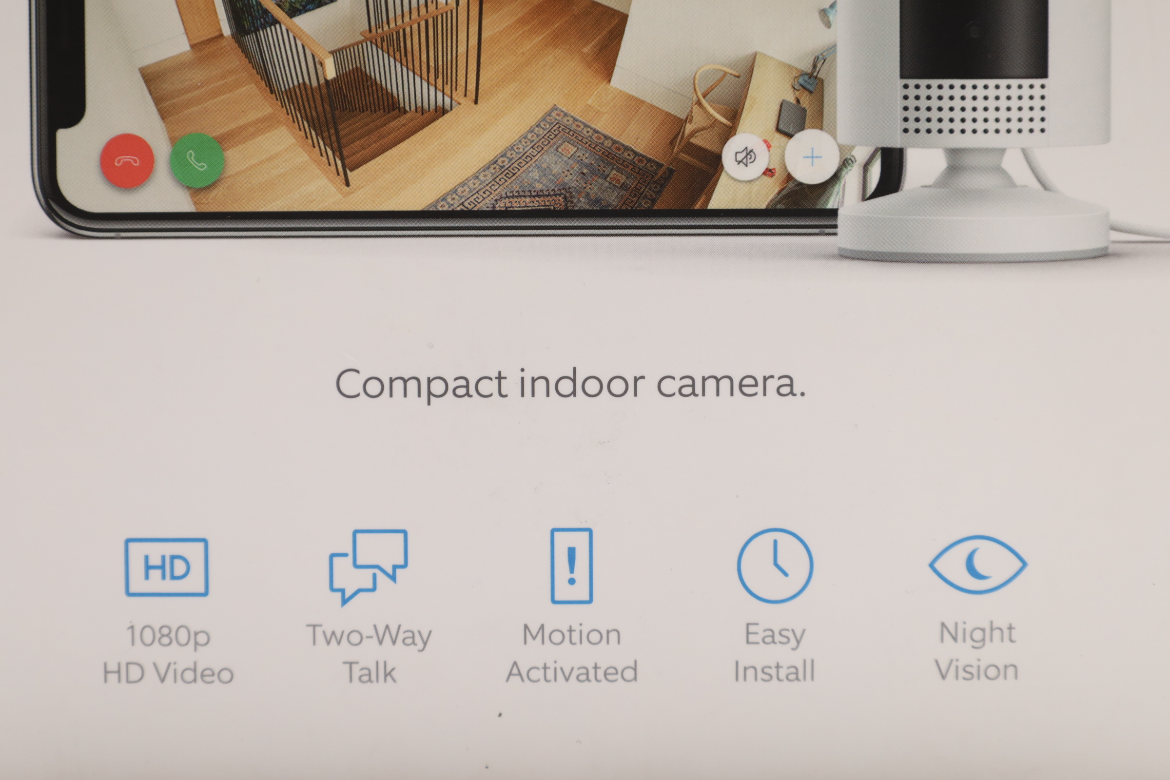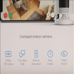 A compact, plug-in Wi-Fi smart security camera designed for indoor use. It offers 1080p HD video quality and allows users to monitor their home in real-time through Live View. The camera features motion detection with customizable sensors and sends real-time notifications to your phone or tablet when motion is detected. Users can also communicate with people on camera via their device. Its small size enables it to fit in tight spaces, and it can be placed on flat surfaces or mounted on a wall. The camera is powered through standard outlets, ensuring continuous operation.