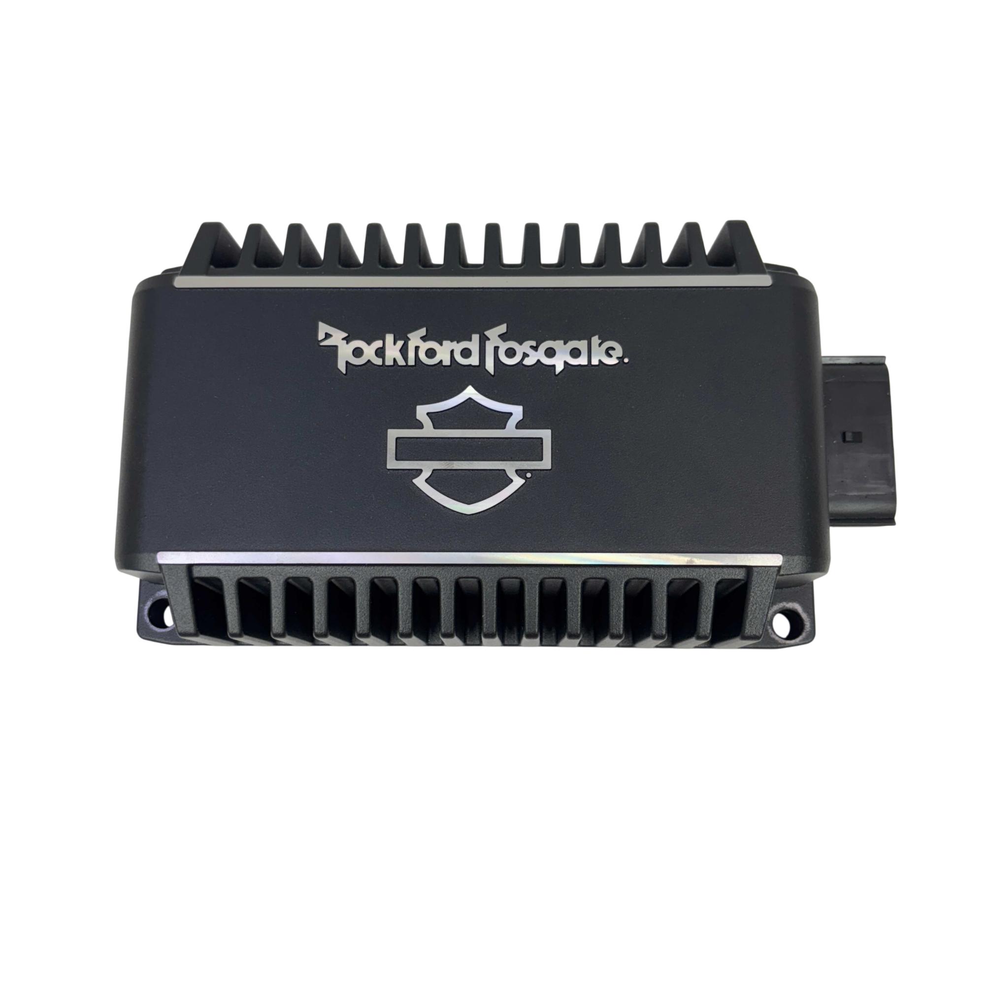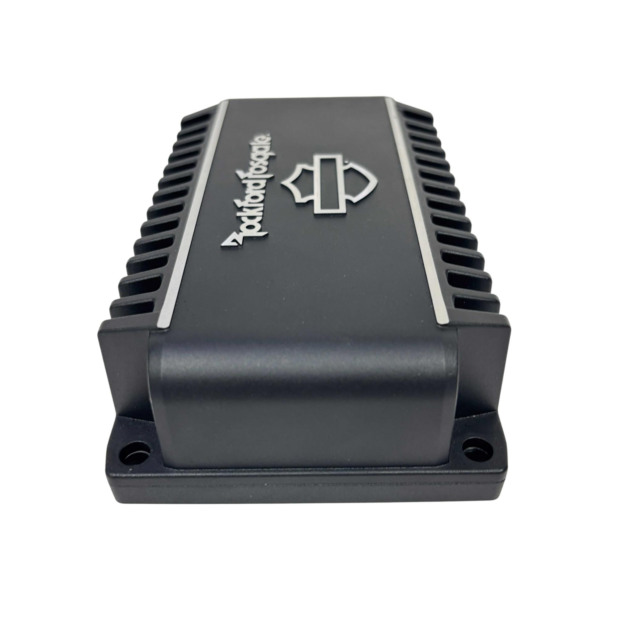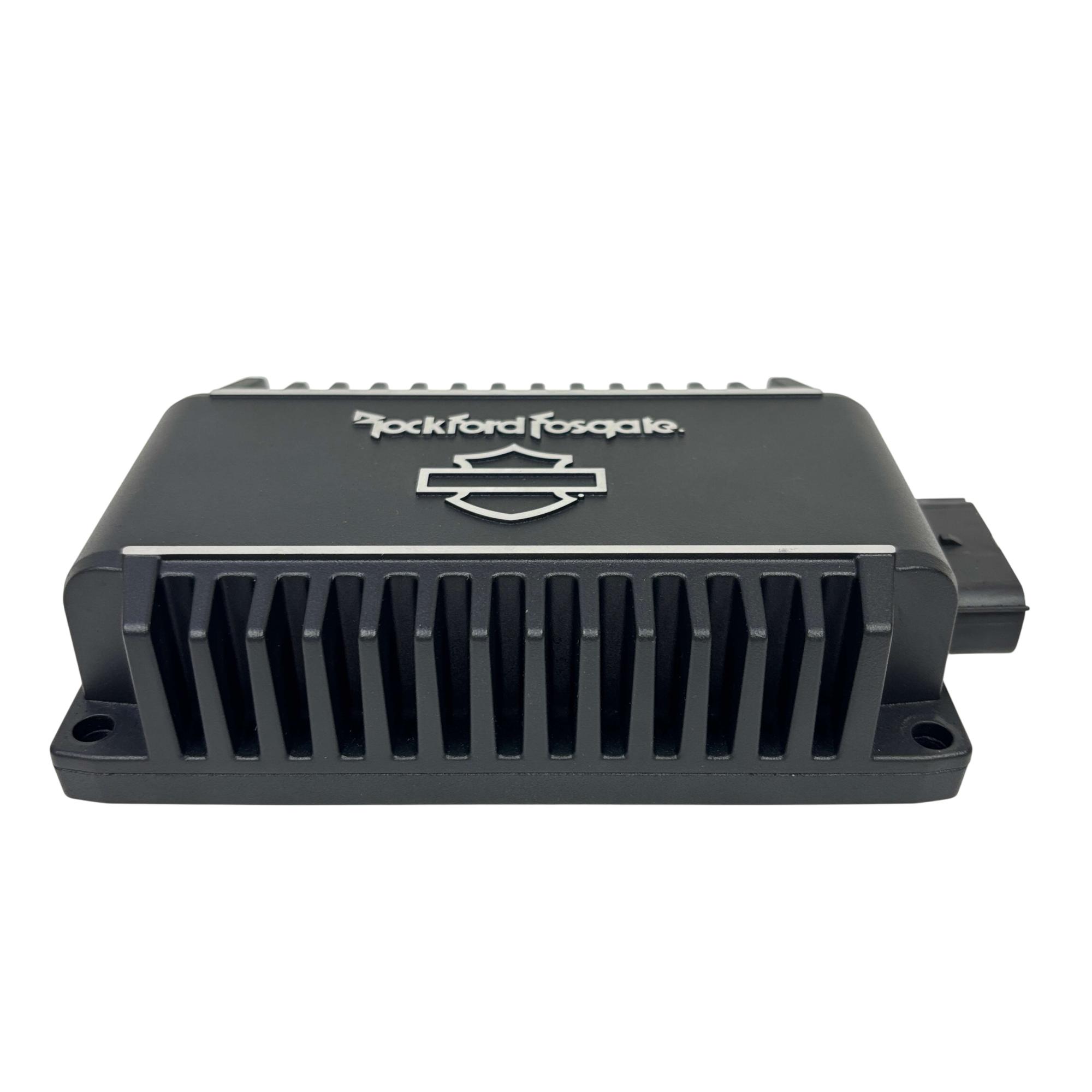 The Rockford Fosgate Harley-Davidson Motorcycle Amplifier 500W Model 76001132 delivers high-performance audio enhancement specifically engineered for Harley-Davidson motorcycles. Designed and engineered in Tempe, Arizona, this amplifier offers 500 watts of power with a durable black casing featuring clear white text and logos for easy identification. Its robust build and precise engineering ensure superior sound quality tailored for motorcycle audio systems.