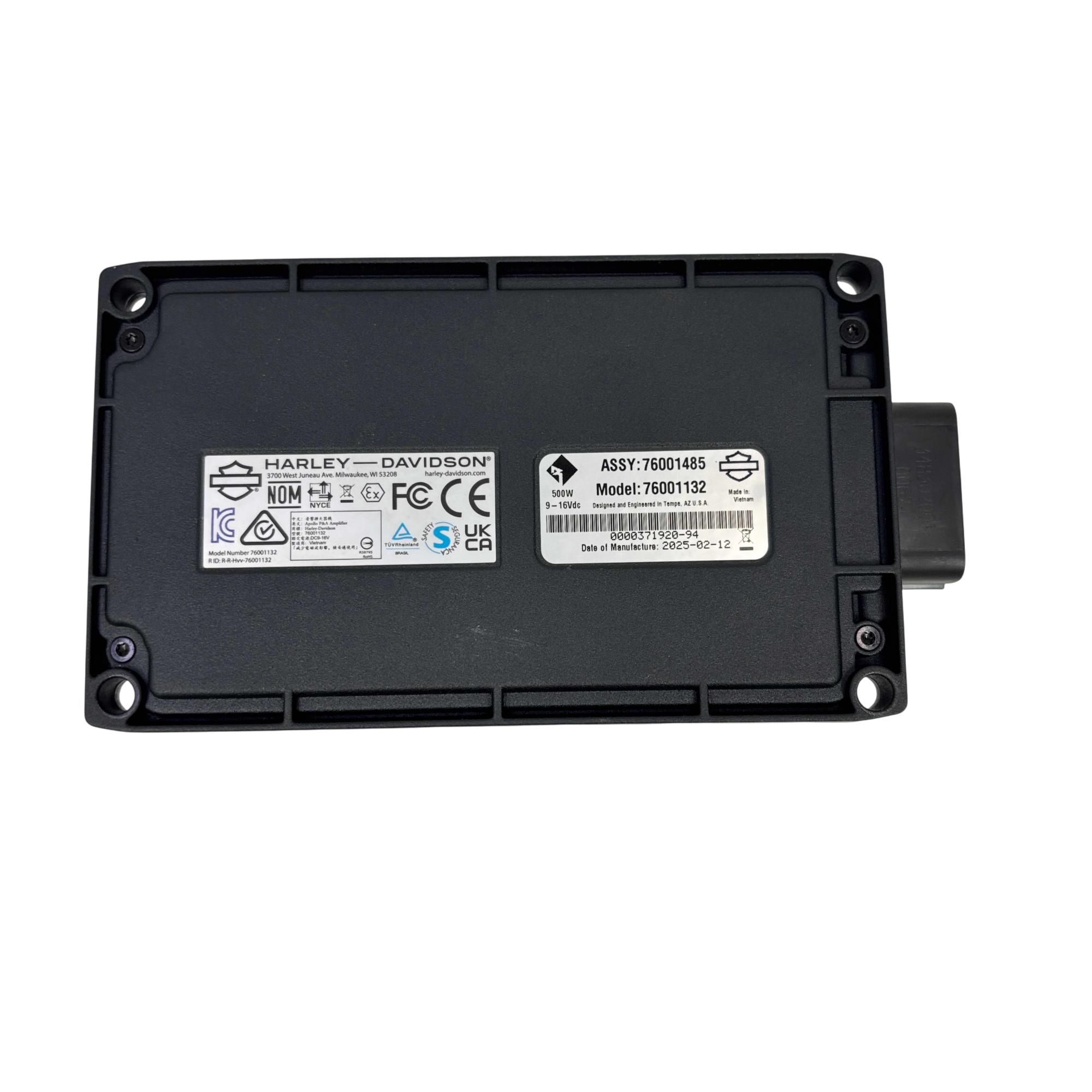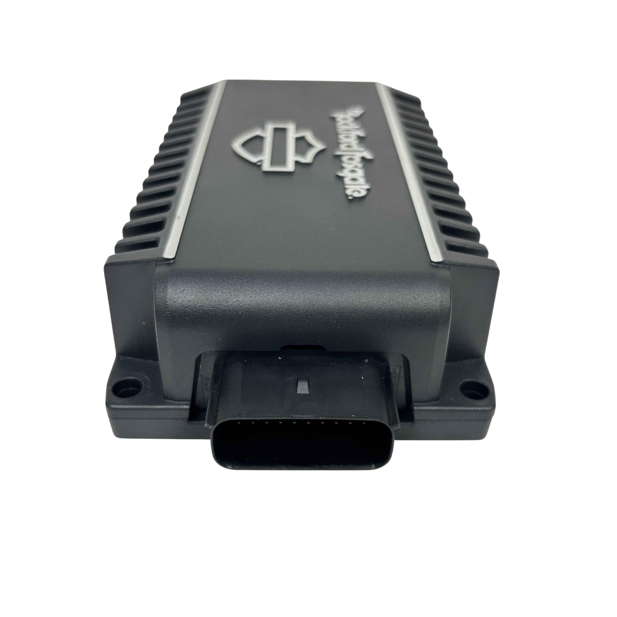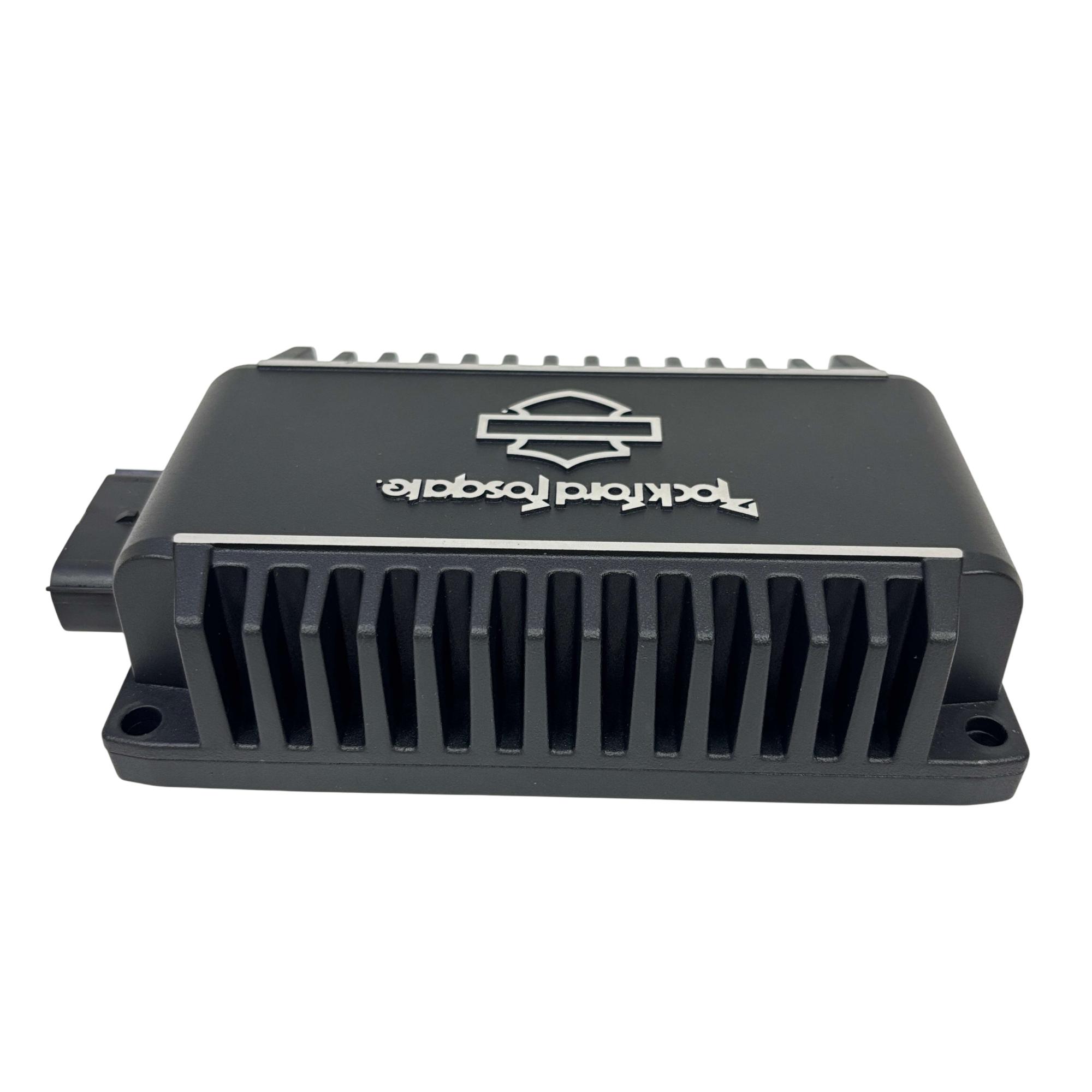 The Rockford Fosgate Harley-Davidson Motorcycle Amplifier 500W Model 76001132 delivers high-performance audio enhancement specifically engineered for Harley-Davidson motorcycles. Designed and engineered in Tempe, Arizona, this amplifier offers 500 watts of power with a durable black casing featuring clear white text and logos for easy identification. Its robust build and precise engineering ensure superior sound quality tailored for motorcycle audio systems.