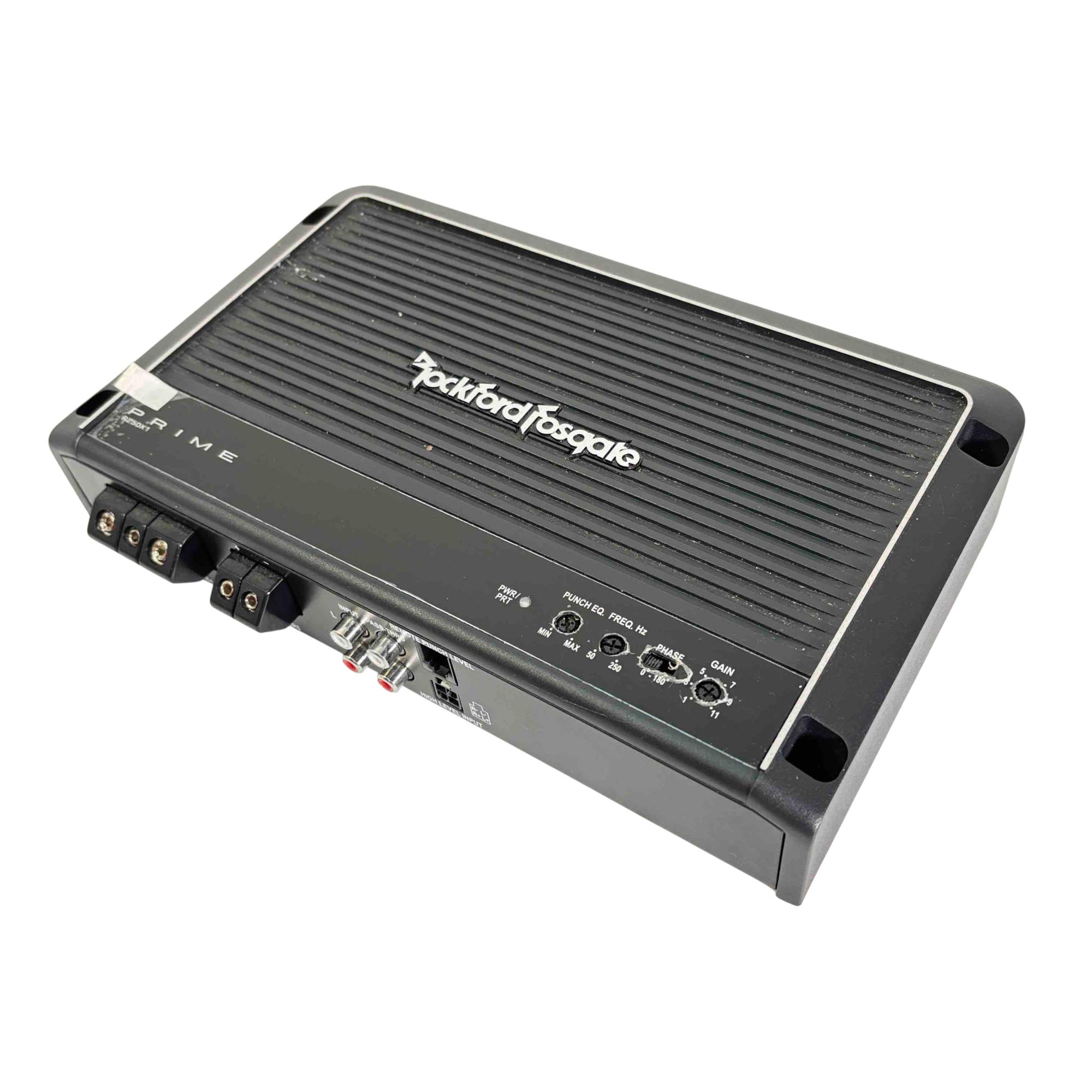 The PRIME R250X1 is a mono amplifier featuring a compact chassis capable of producing 250 Watts of pure Rockford Fosgate power into 2-Ohms. The frequency response of the R250X1 allows it to be used exclusively with subwoofers.