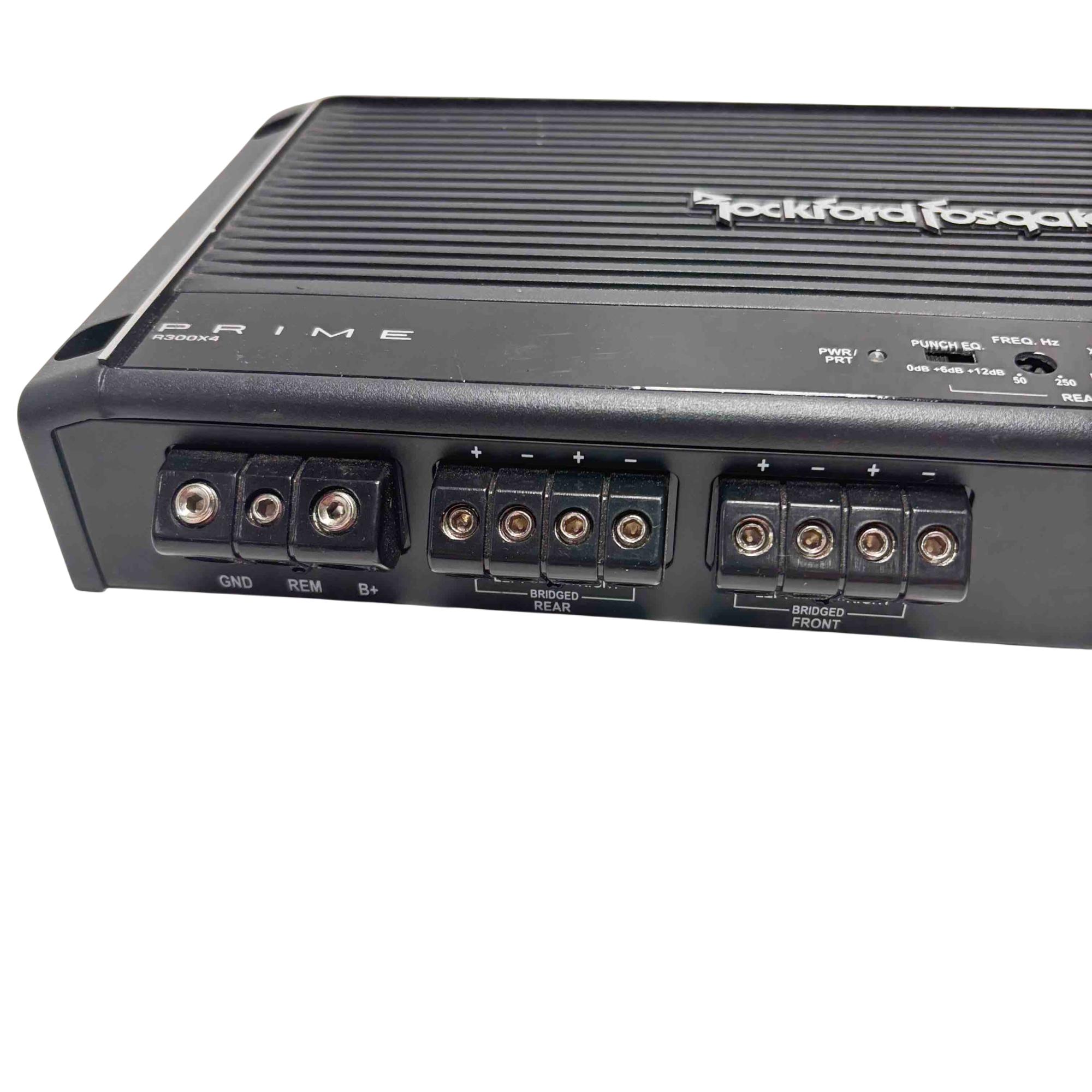 Elevate your car audio experience with the Rockford Fosgate Prime Series R300X4 300W 4-Channel Amplifier. This powerful black amp offers exceptional sound quality and flexibility, allowing you to drive four separate channels for a well-rounded audio performance. Perfect for audiophiles looking to amplify their in-car sound system with precision and clarity.