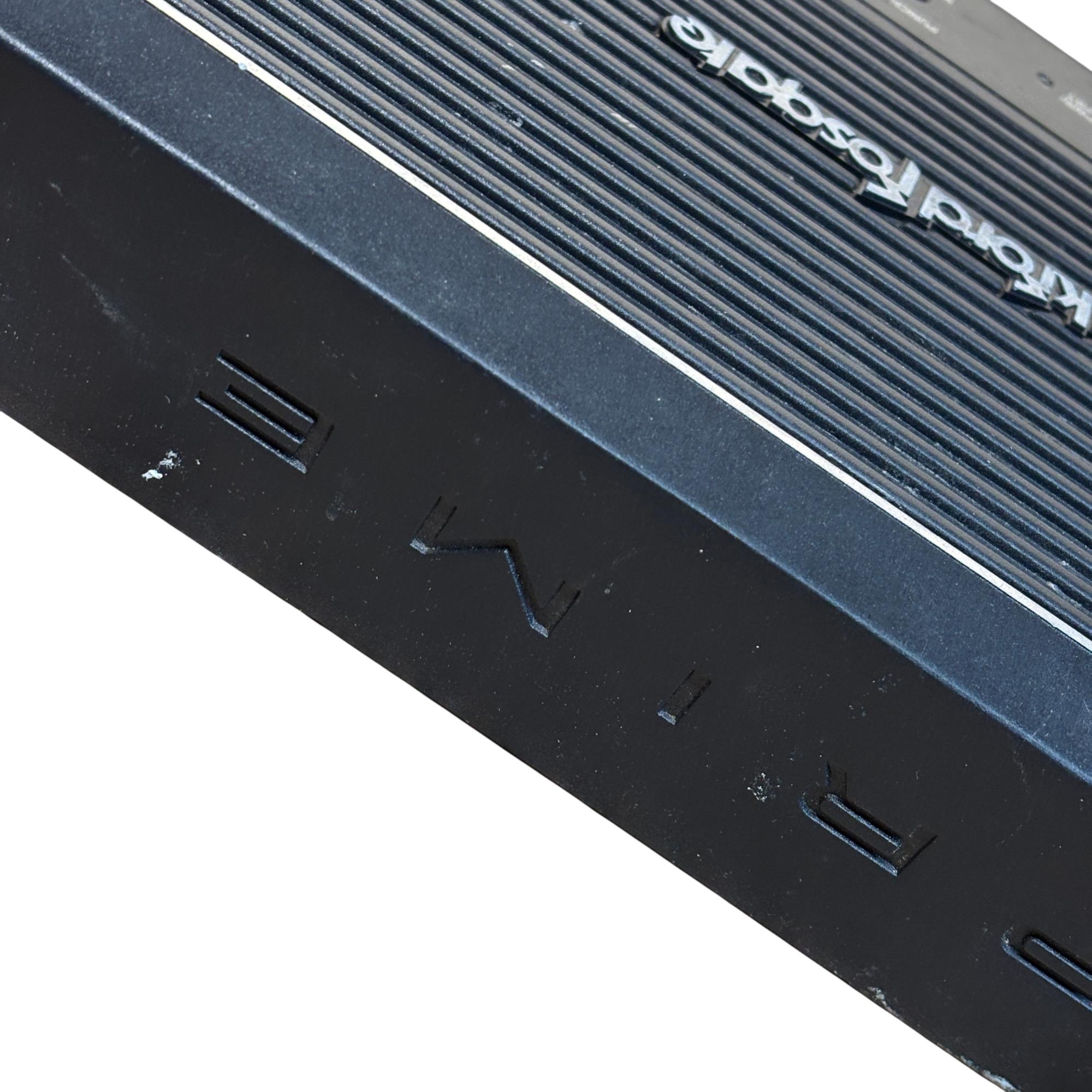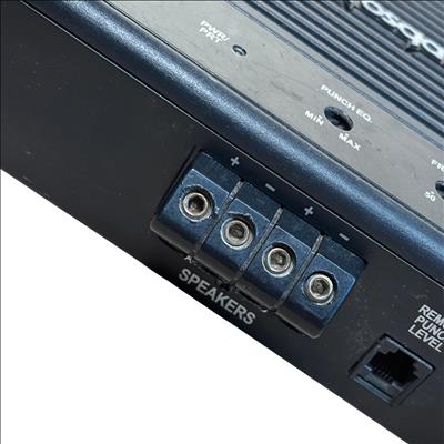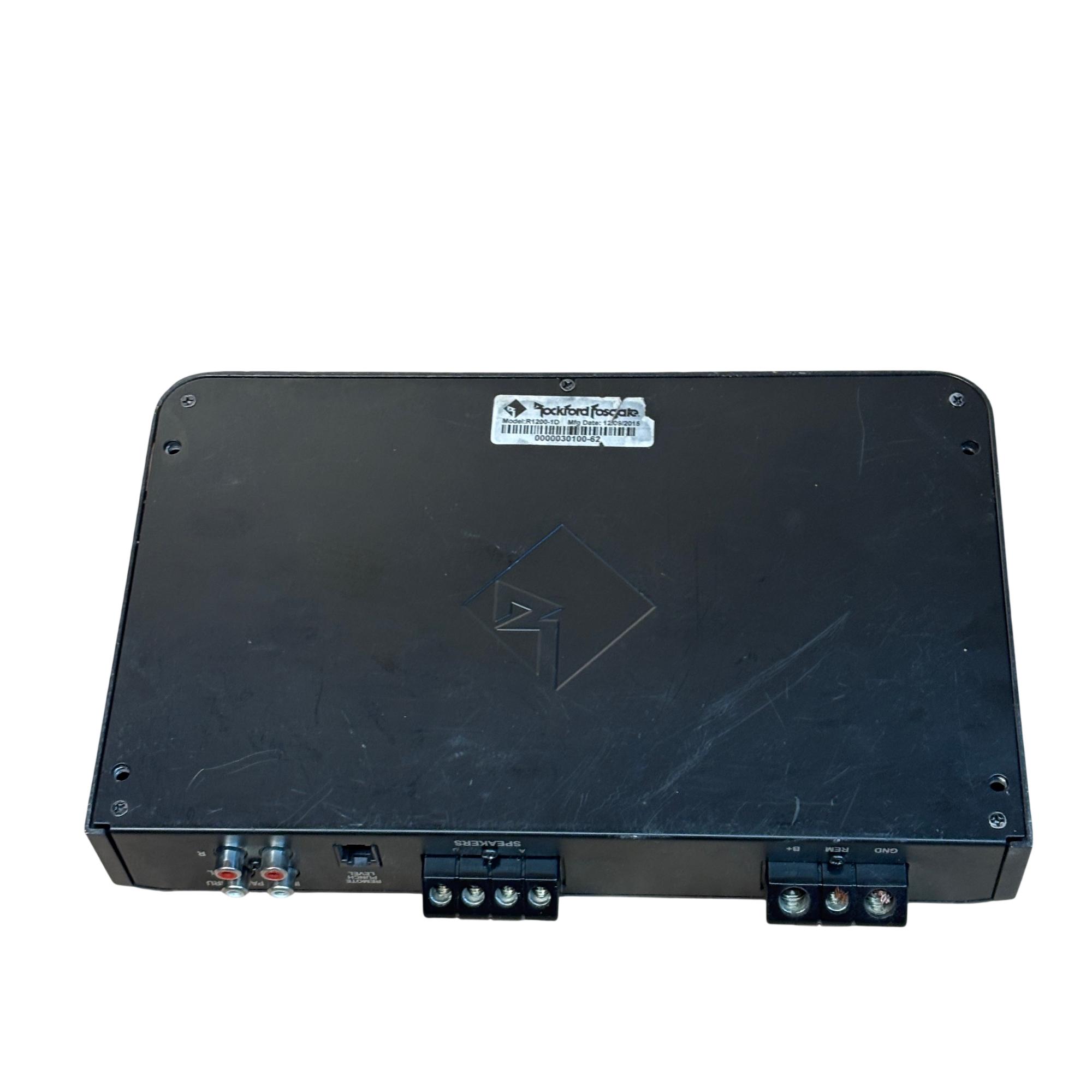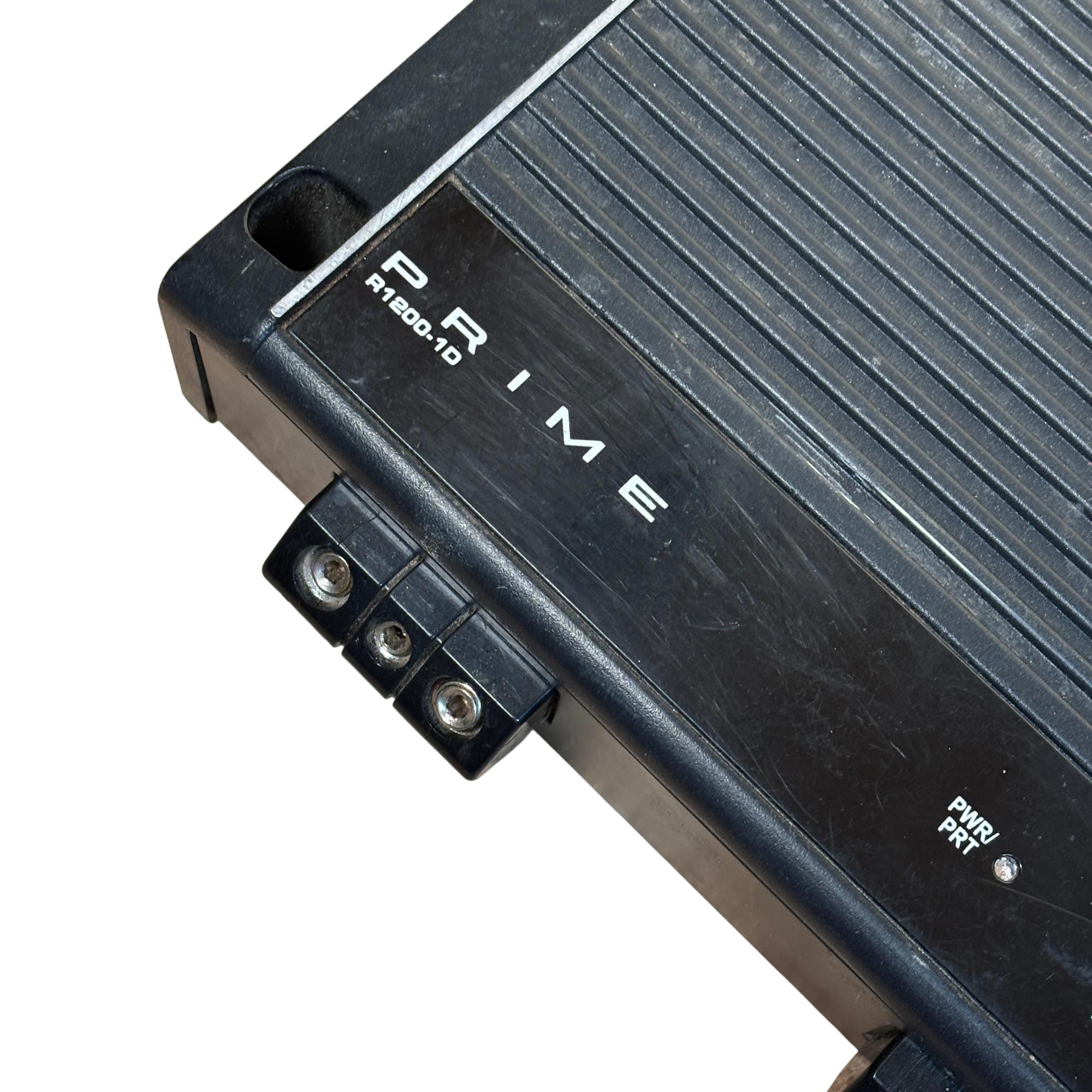 Rockford Fosgate Prime R1200-1D 1,200 Watt Class-D Mono Car Amplifier delivers powerful and efficient performance with a sleek black design. This amplifier features precise control options including punch EQ, frequency adjustments, and gain for tailored sound quality. Engineered for high output and durability, it is ideal for enhancing car audio systems with deep, robust bass.