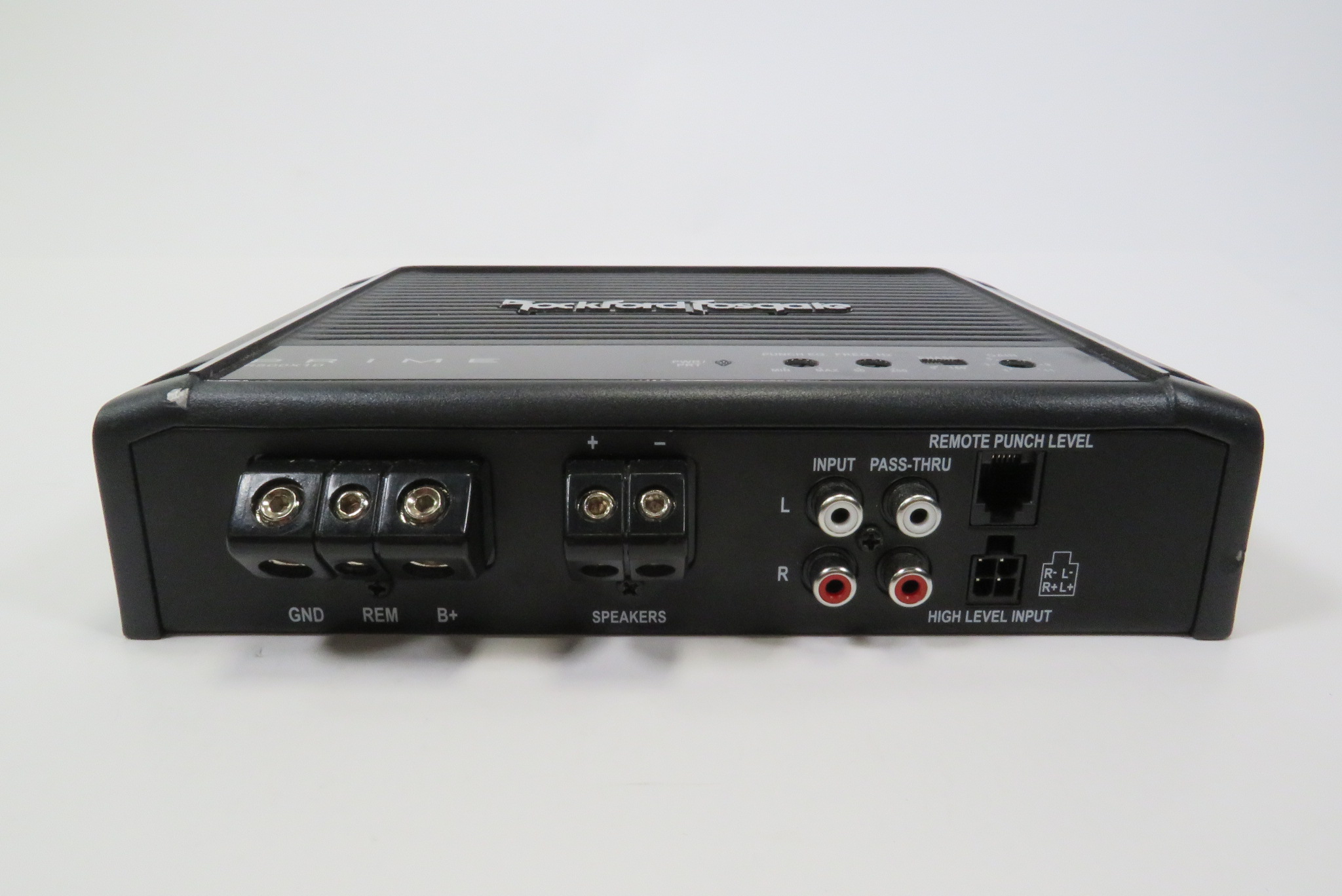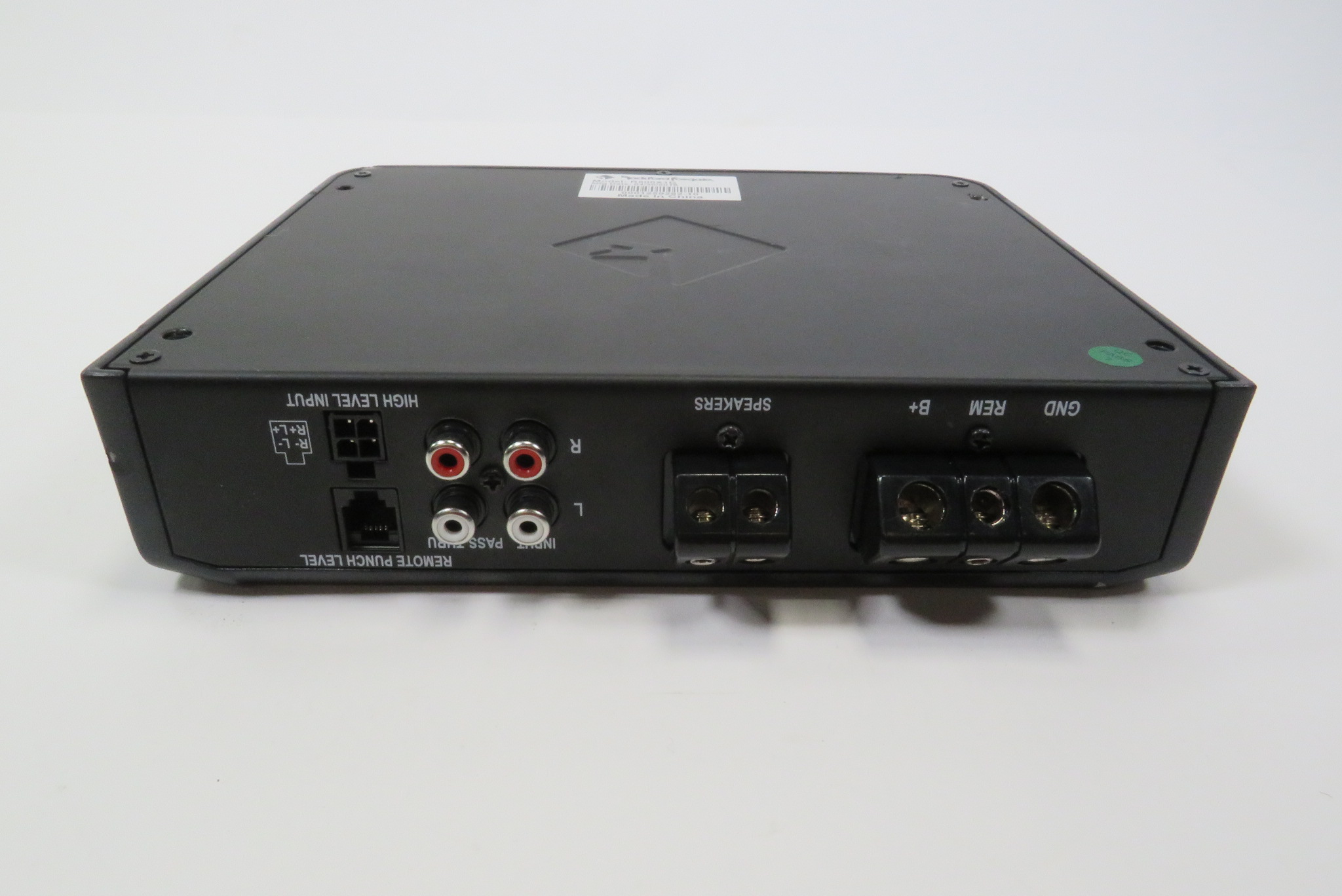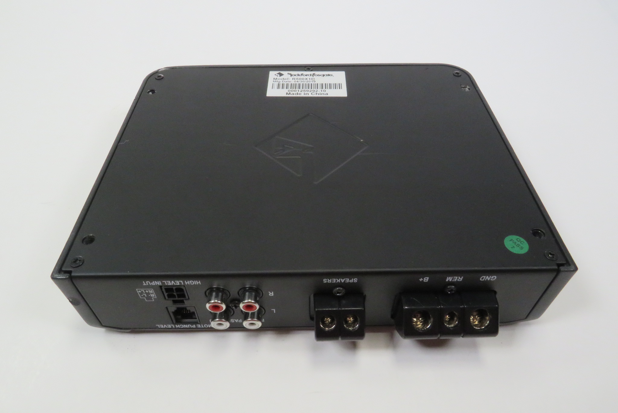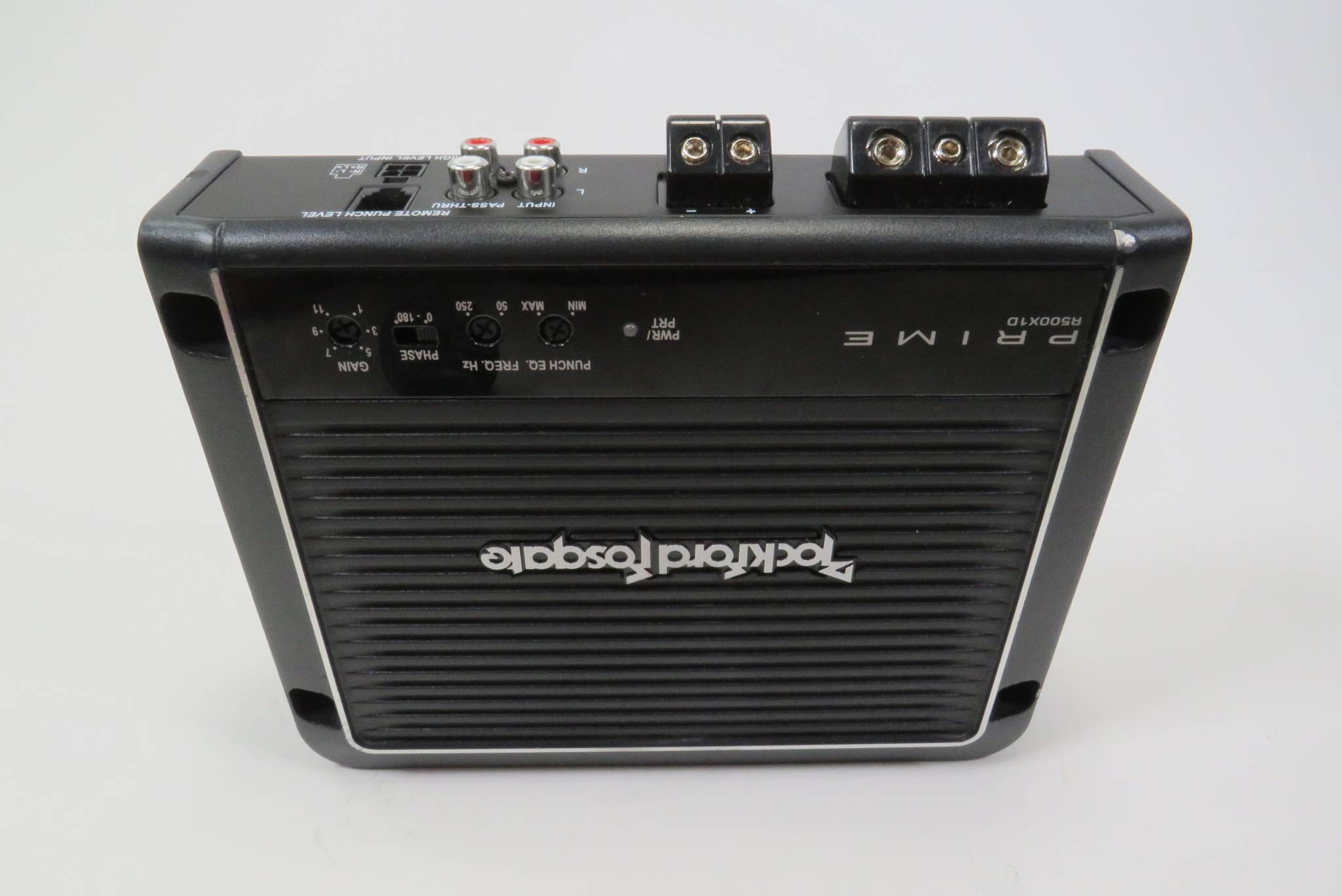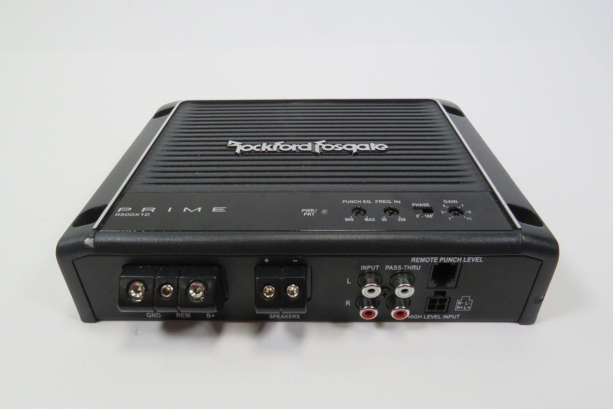 A quality made Mono D car amplifier that is rated at 500 Watt x 1 Channel @ 2 Ohms RMS. The amplifier features a MOSFET power supply, cast aluminum heatsink, muted turn on, short circuit protection, over current protection, RCA pass thru outputs, high level inputs, real time output and power supply thermal sensing, and phase switch.