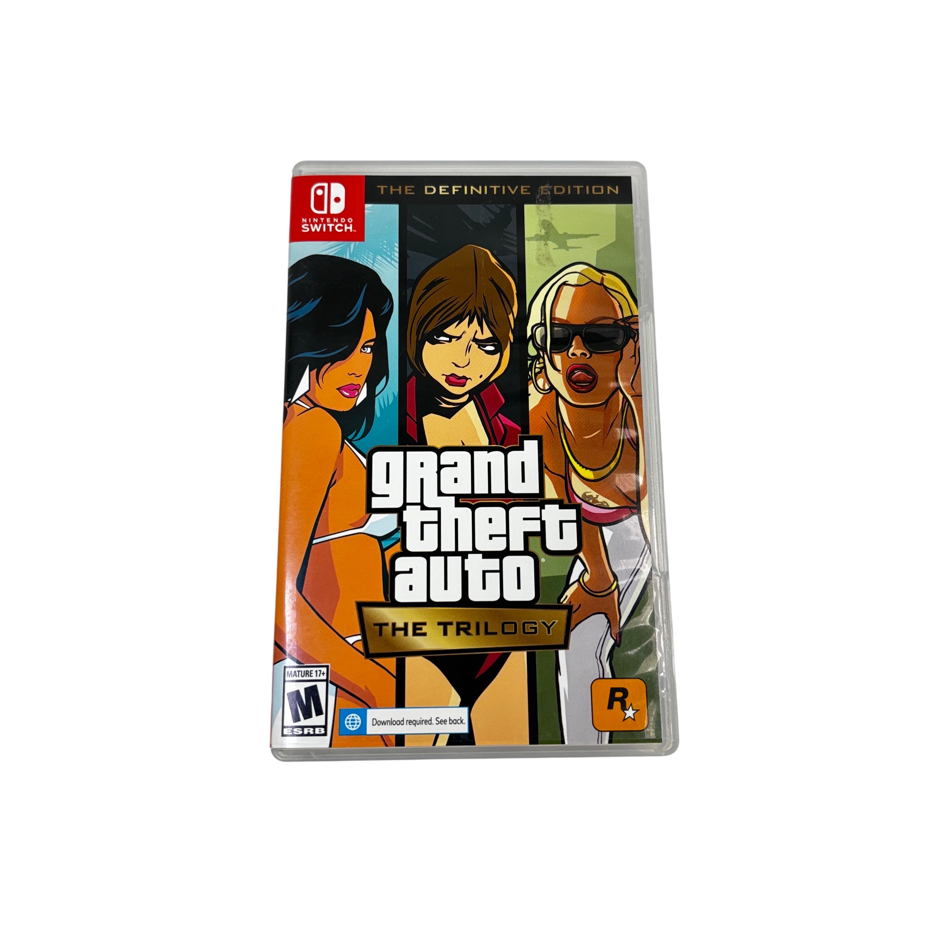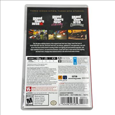 Grand Theft Auto : The Trilogy Definitive Edition Switch Game offers a definitive edition of the iconic Grand Theft Auto series, featuring GTA III, Vice City, and San Andreas. Experience enhanced graphics and updated controls optimized for the Nintendo Switch. This collection brings the classic open-world action to a new generation, providing hours of immersive gameplay.