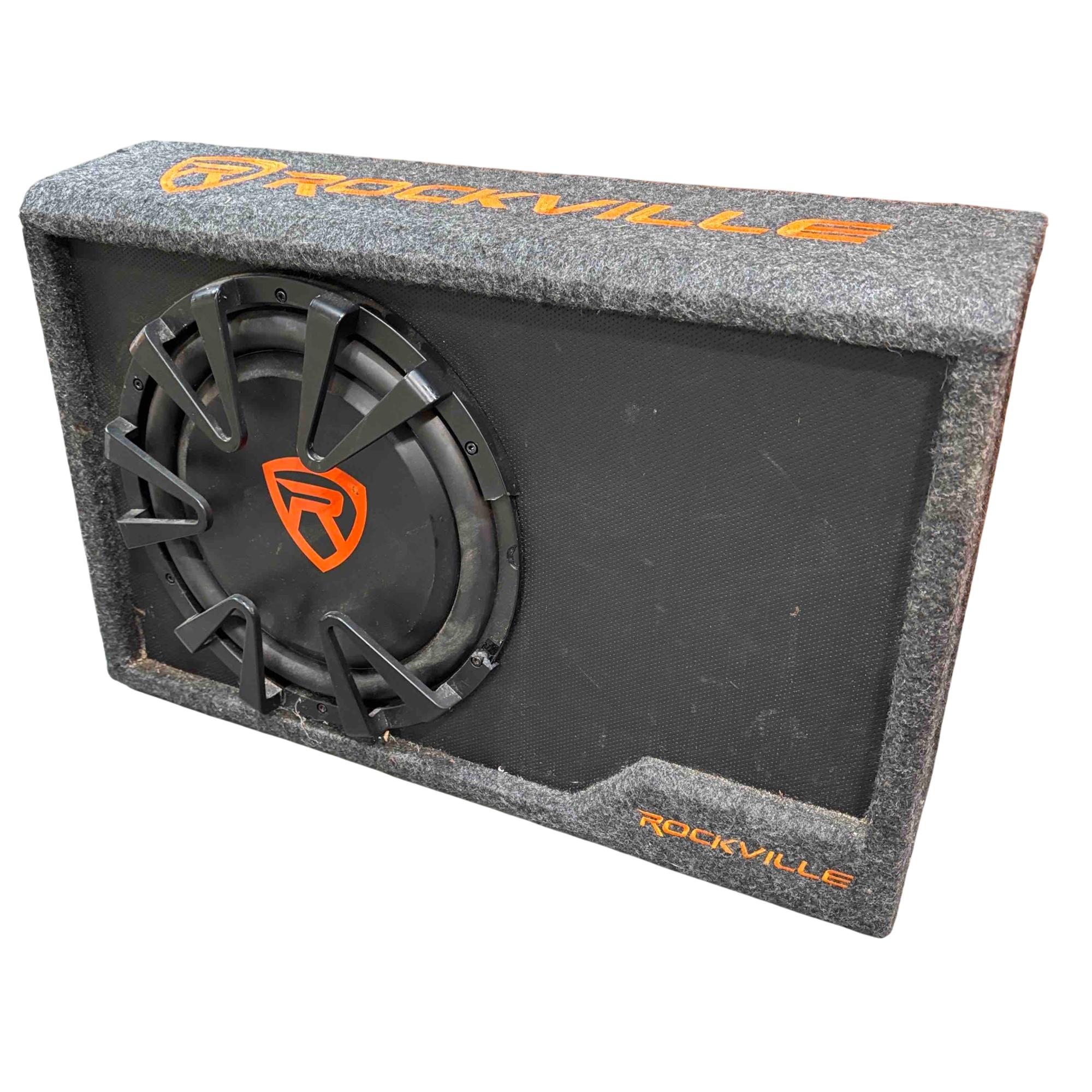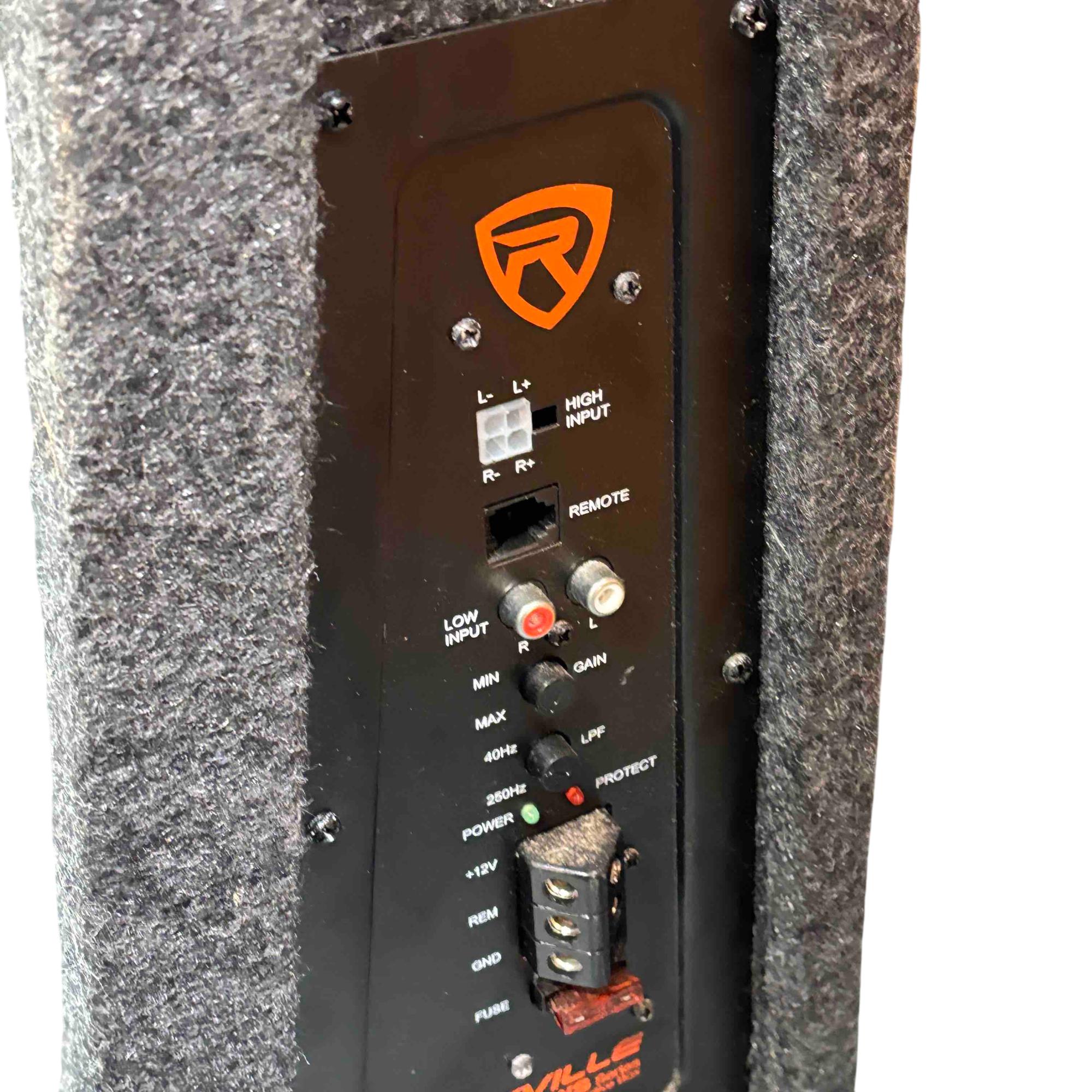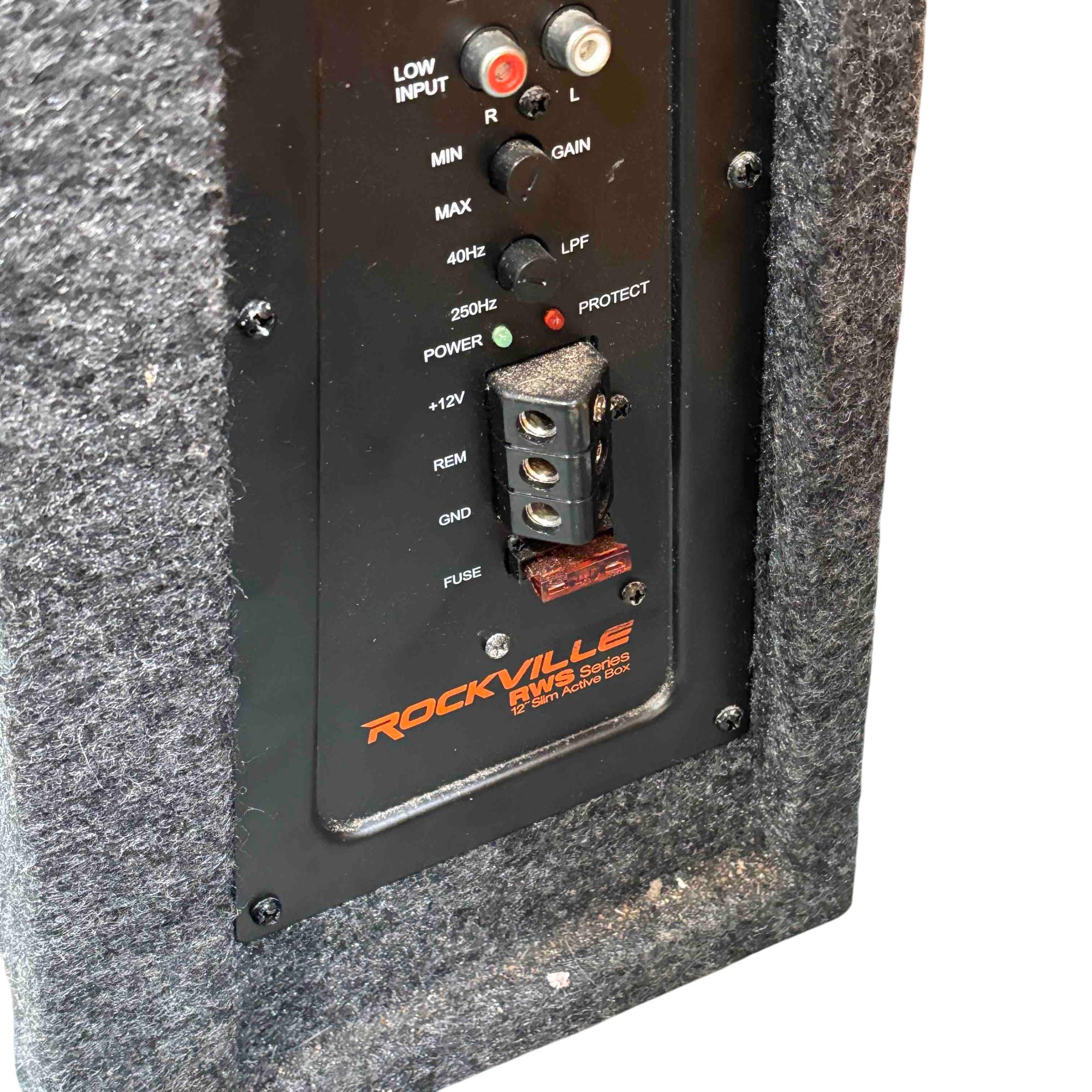 Experience powerful bass in your vehicle with the Rockville RWS12A 12-inch Slim Active Subwoofer Box.