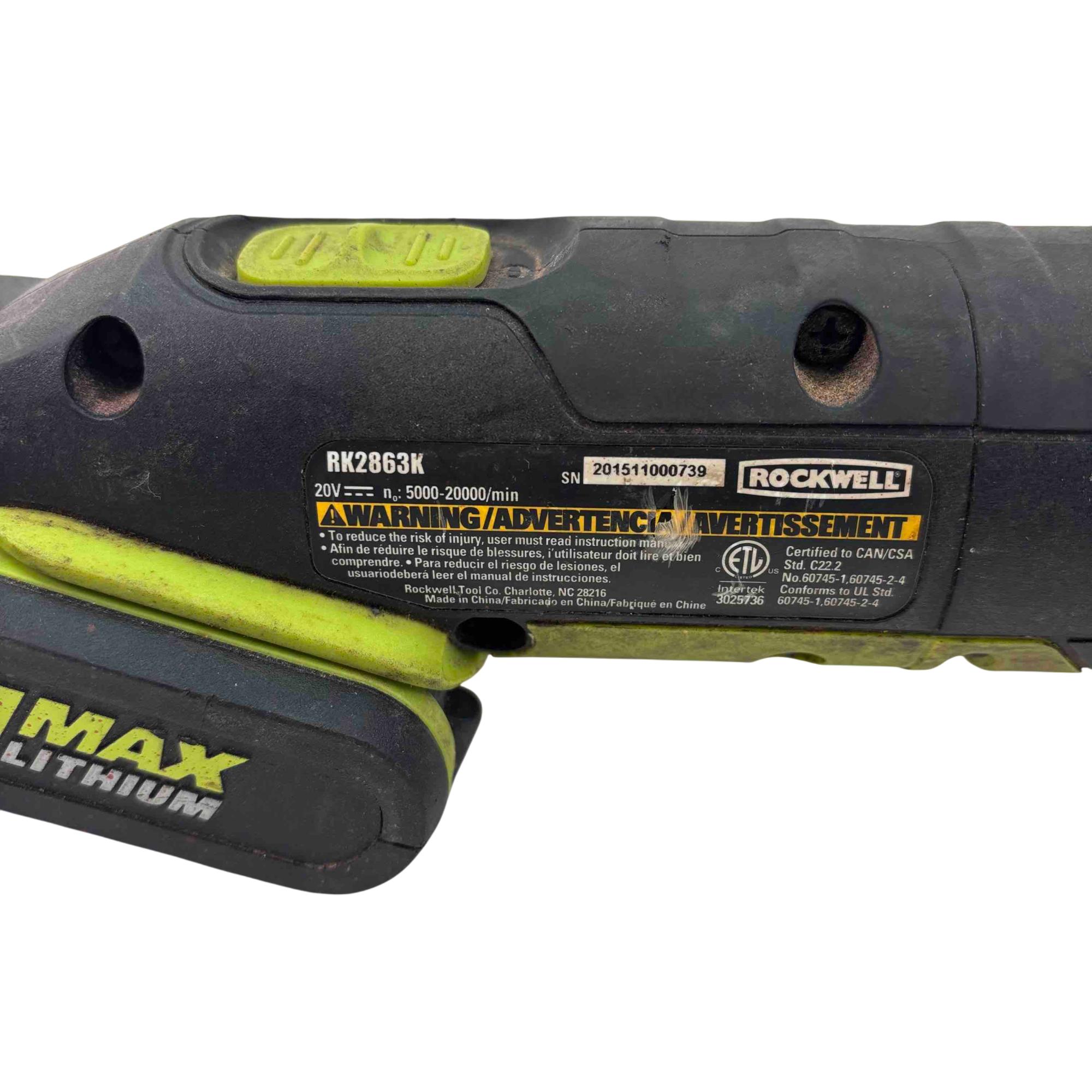 Rockwell RK2863K 20V MAX Lithium Sonicrafter Oscillating Multi-Tool delivers versatile performance for cutting, sanding, scraping, and grinding tasks. Featuring variable speed control from 5,000 to 20,000 oscillations per minute, this durable tool is designed for precision and efficiency with a comfortable grip and a robust build. Ideal for DIY and professional use, it operates on 20V MAX lithium power for long-lasting cordless convenience.