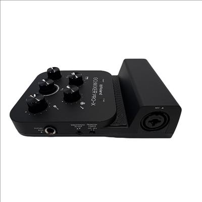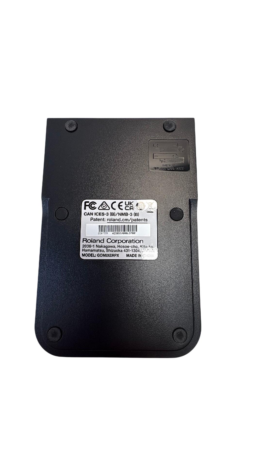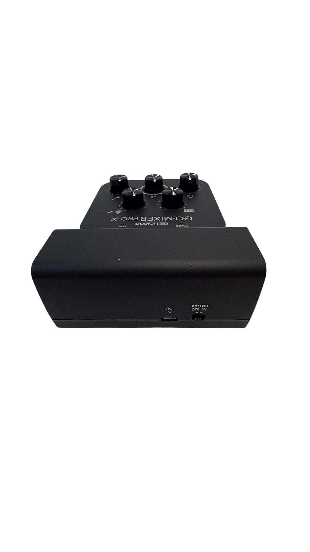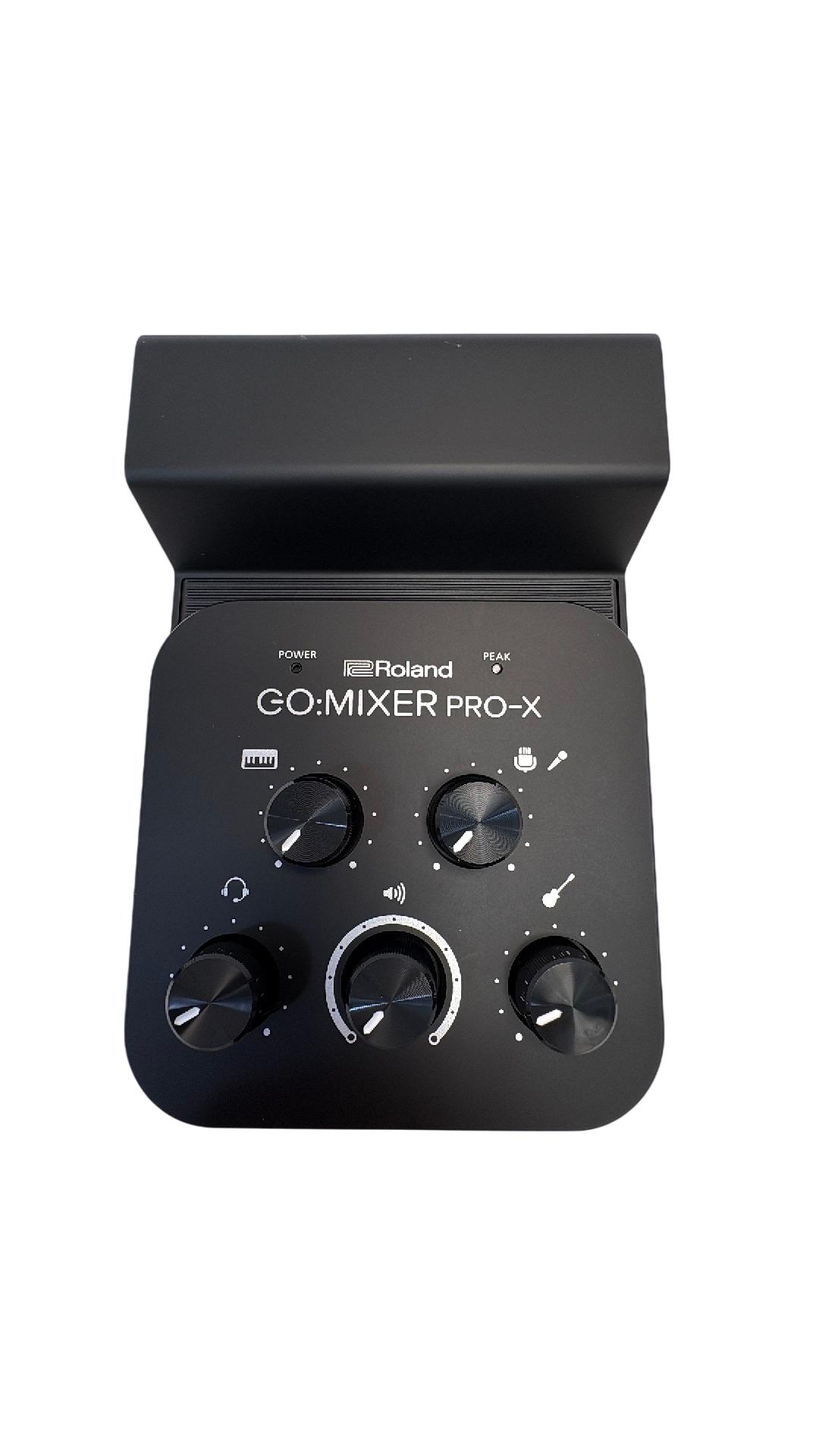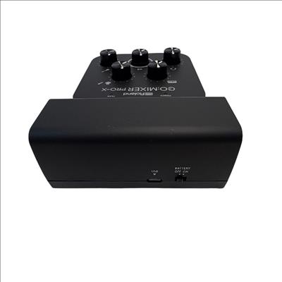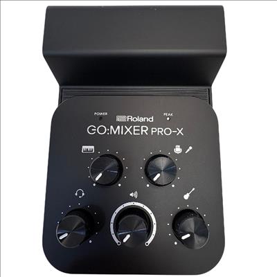 The Roland GO:MIXER PRO-X Audio Mixer for Smartphones is a compact and versatile audio mixer designed for seamless sound control during live streaming and recording. Featuring multiple knobs and buttons, it offers precise adjustment of audio inputs with clear labeling for professional-grade mixing performance. Its sleek black design combined with intuitive controls makes it ideal for content creators seeking high-quality smartphone audio solutions.