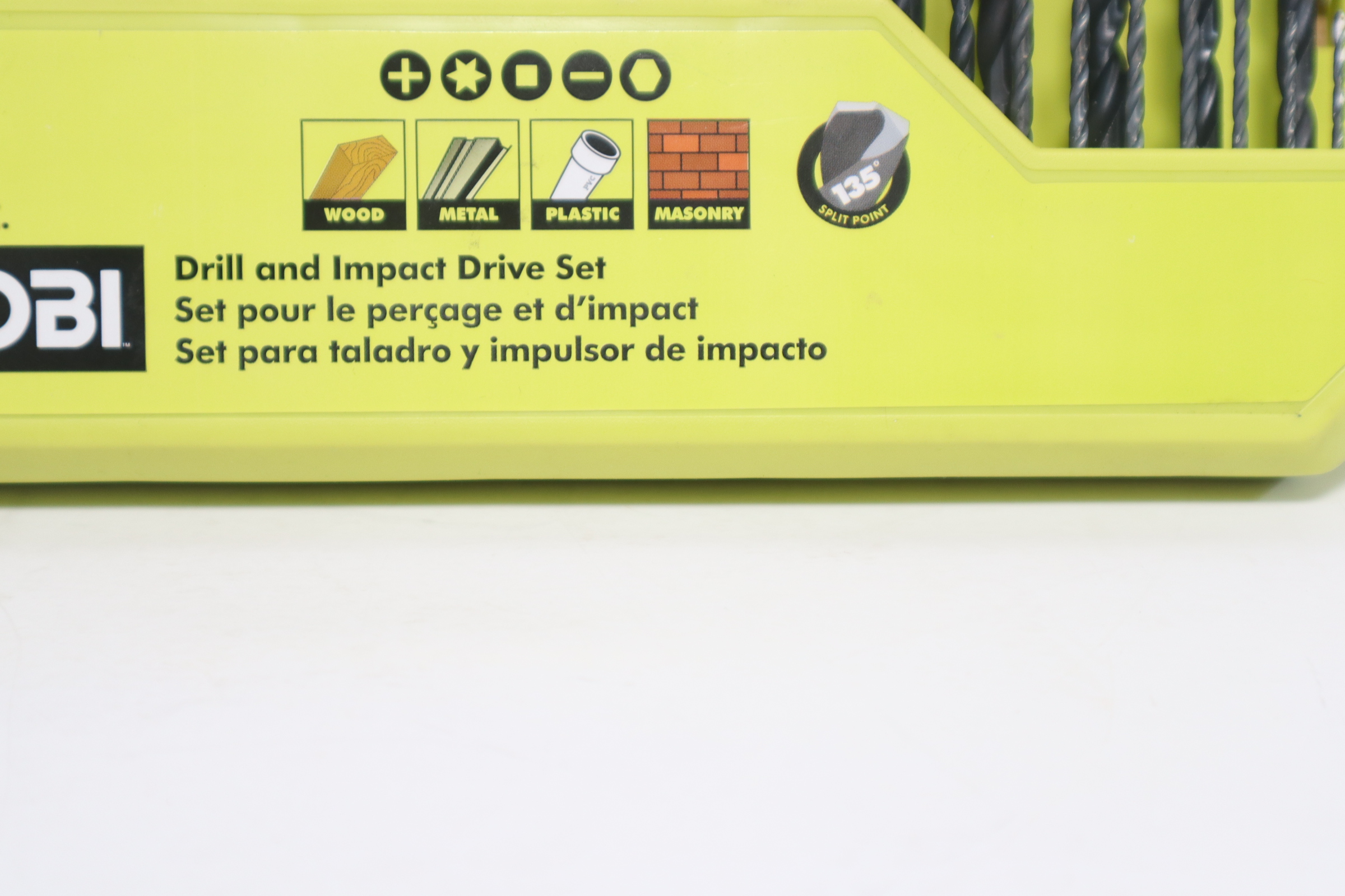 RYOBI introduces the 95-Piece Drilling and Drive Kit. This assortment of drilling and impact bits include a large variety fit for all projects including wood, metal, plastic, brick, block, concrete, and mortar materials. The Black Oxide bits are constructed out of high-speed steel with a black oxide finish to offer superior durability. Another key detail of these bits is the 135° split point that prevents your bit from walking and ensures drilling on contact. This kit features bits containing a TORSION ZONE that is engineered to absorb the high torque and demand that comes with the use of an impact driver for 3X longer life. The 3.5 in. bits are perfect for extended driving capability in hard-to-reach applications. The woodboring spade bits, ranging from 1/2 in. to 1 in., are perfect for fast, clean and accurate drilling. Also included are (5) bradpoint drill bits to improve precision for clean wood drilling. This kit includes 5 masonry bits compatible with your hammer drill, rotary hammer or impact driver for all your brick, block, concrete and mortar needs. The nut drivers feature a powerful fastening that provide excellent end results.