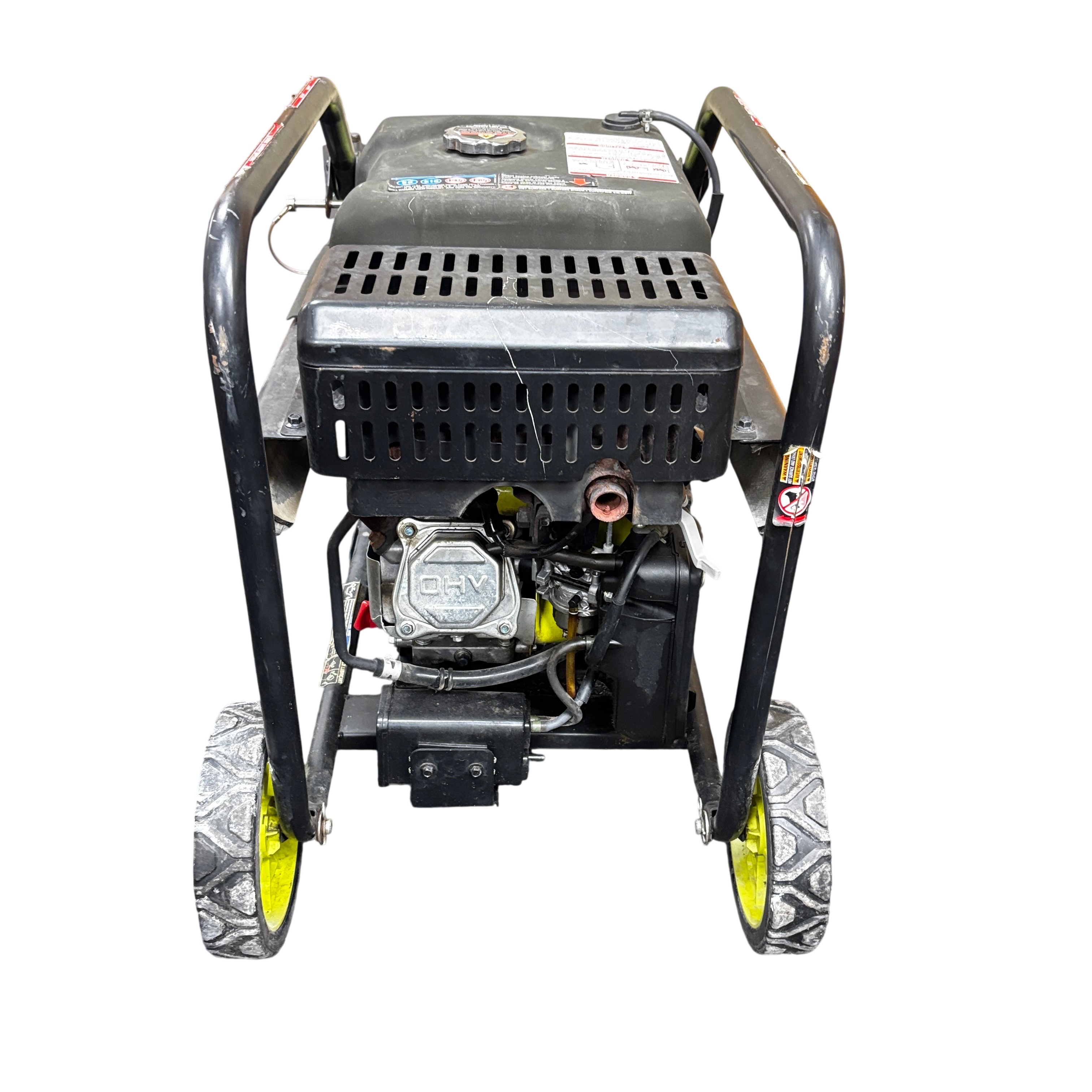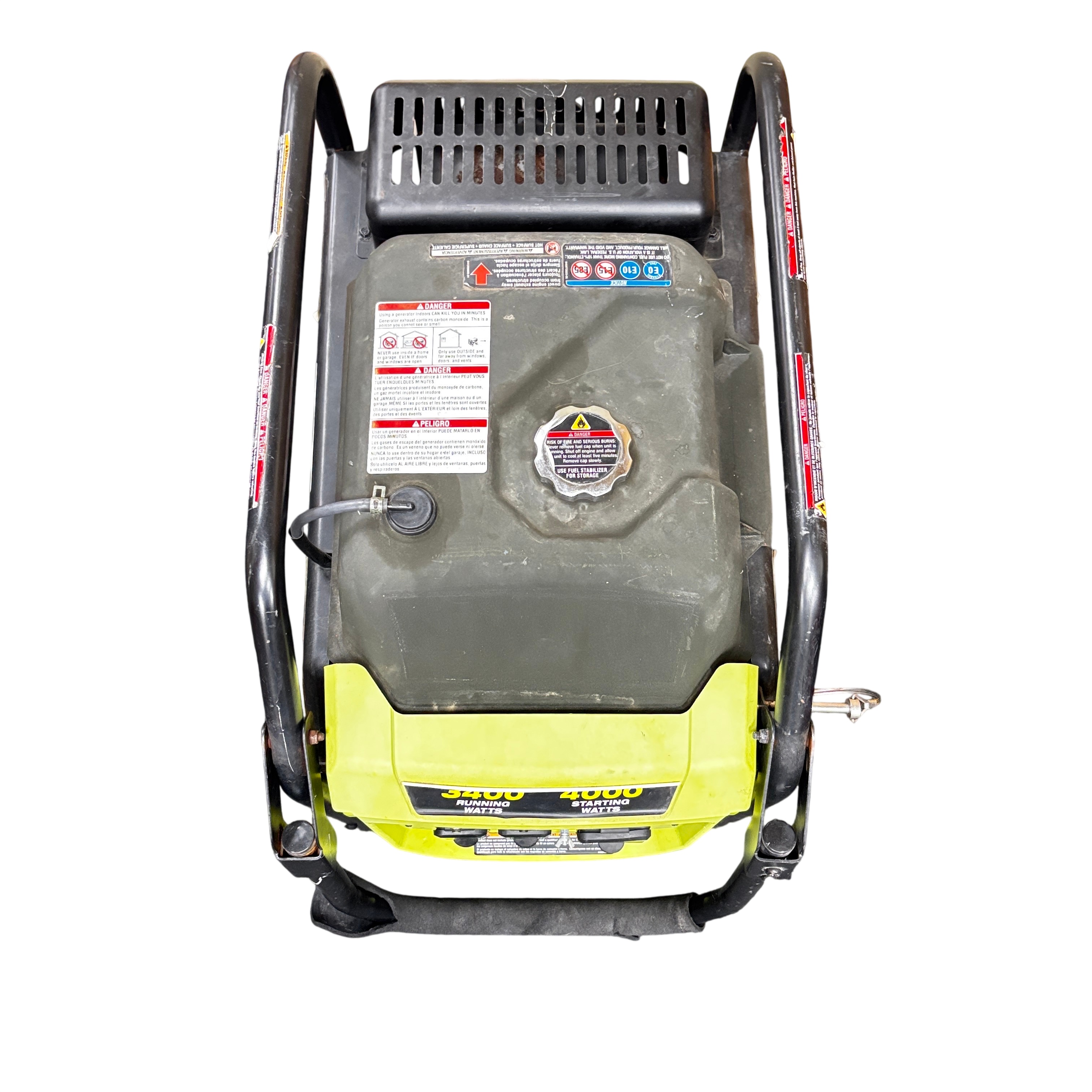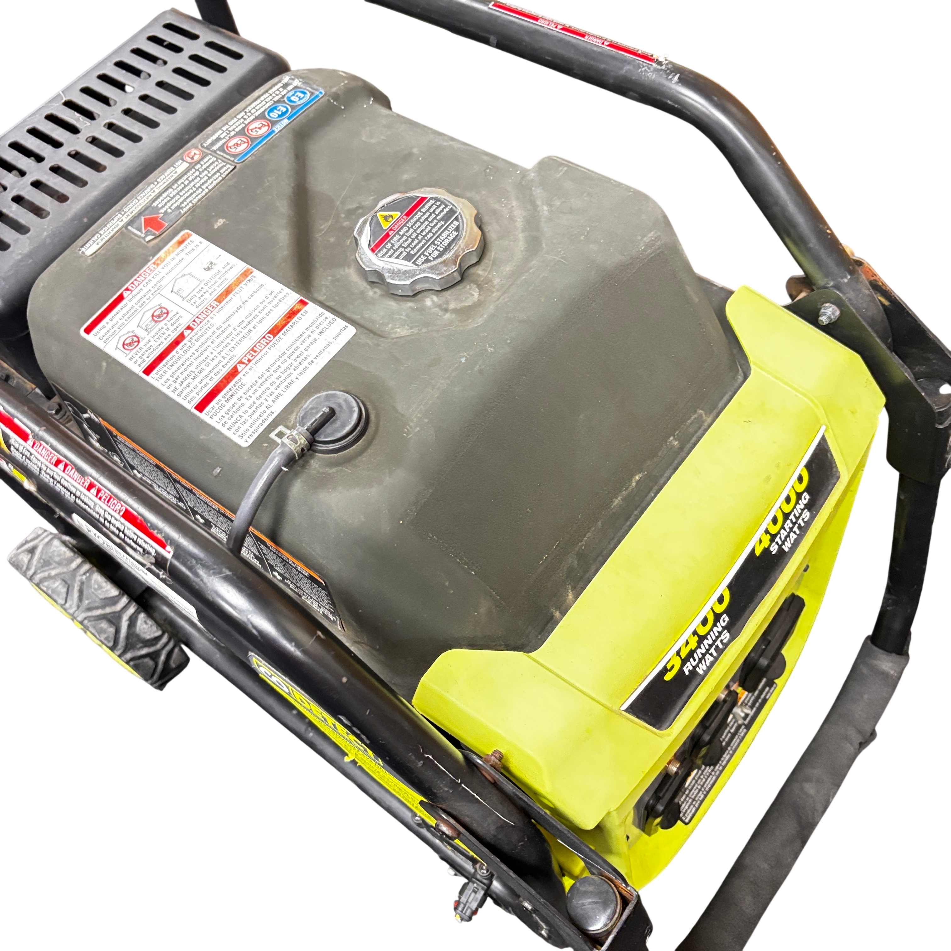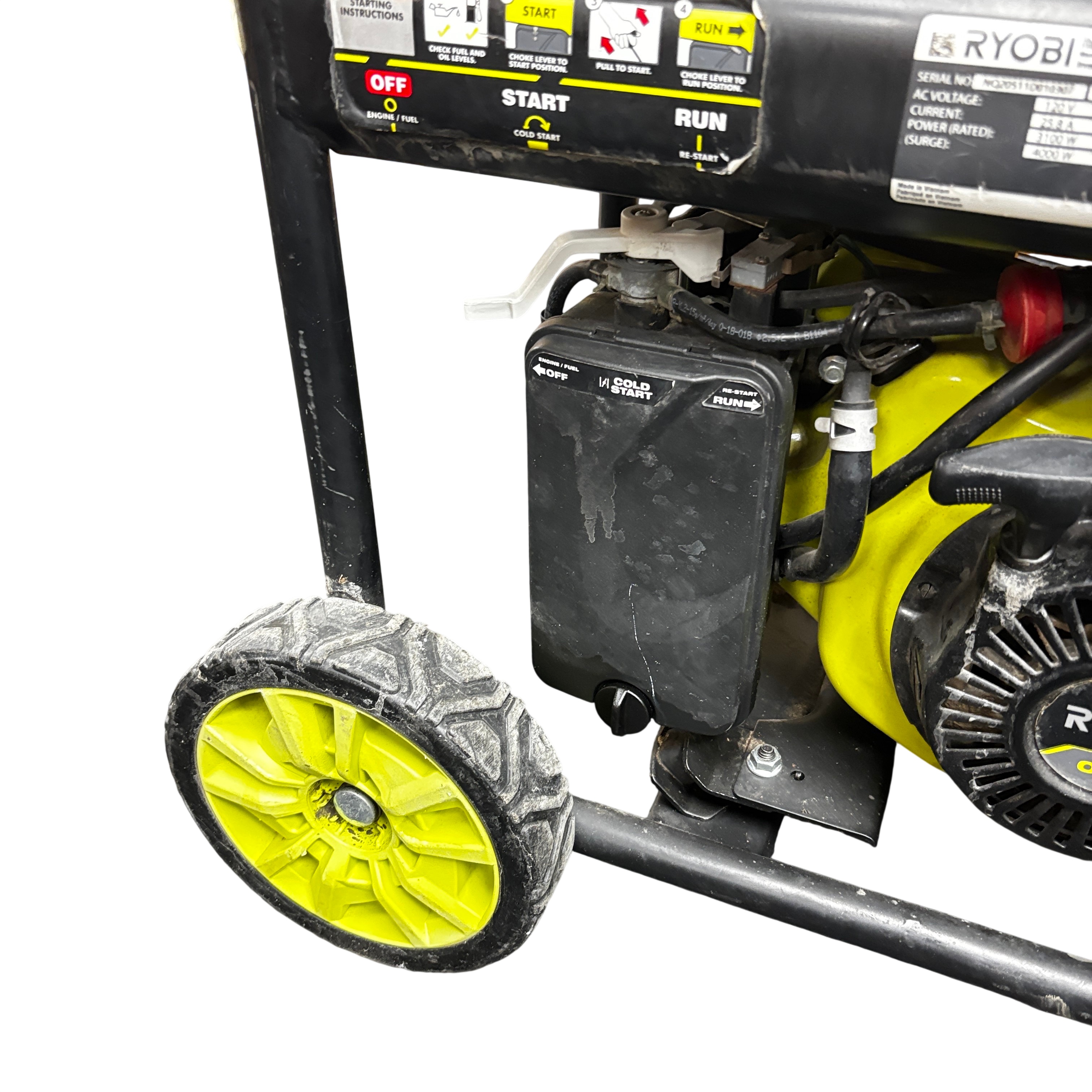 The Ryobi RYi4022VNM Inverter Generator delivers a rated power output of 3100 watts and a surge capacity of 4000 watts, making it ideal for powering tools and appliances during outages or on job sites. Featuring a 120V single-phase output and a variable RPM range of 2820 to 3640, this generator provides stable and efficient power. It includes Ryobi's Easy Start system for hassle-free operation and a CO Detect automatic carbon monoxide shutdown system for enhanced safety. The unit is built with a durable metal frame and compact design. This generator is perfect for homeowners and professionals seeking reliable portable power with advanced safety features.