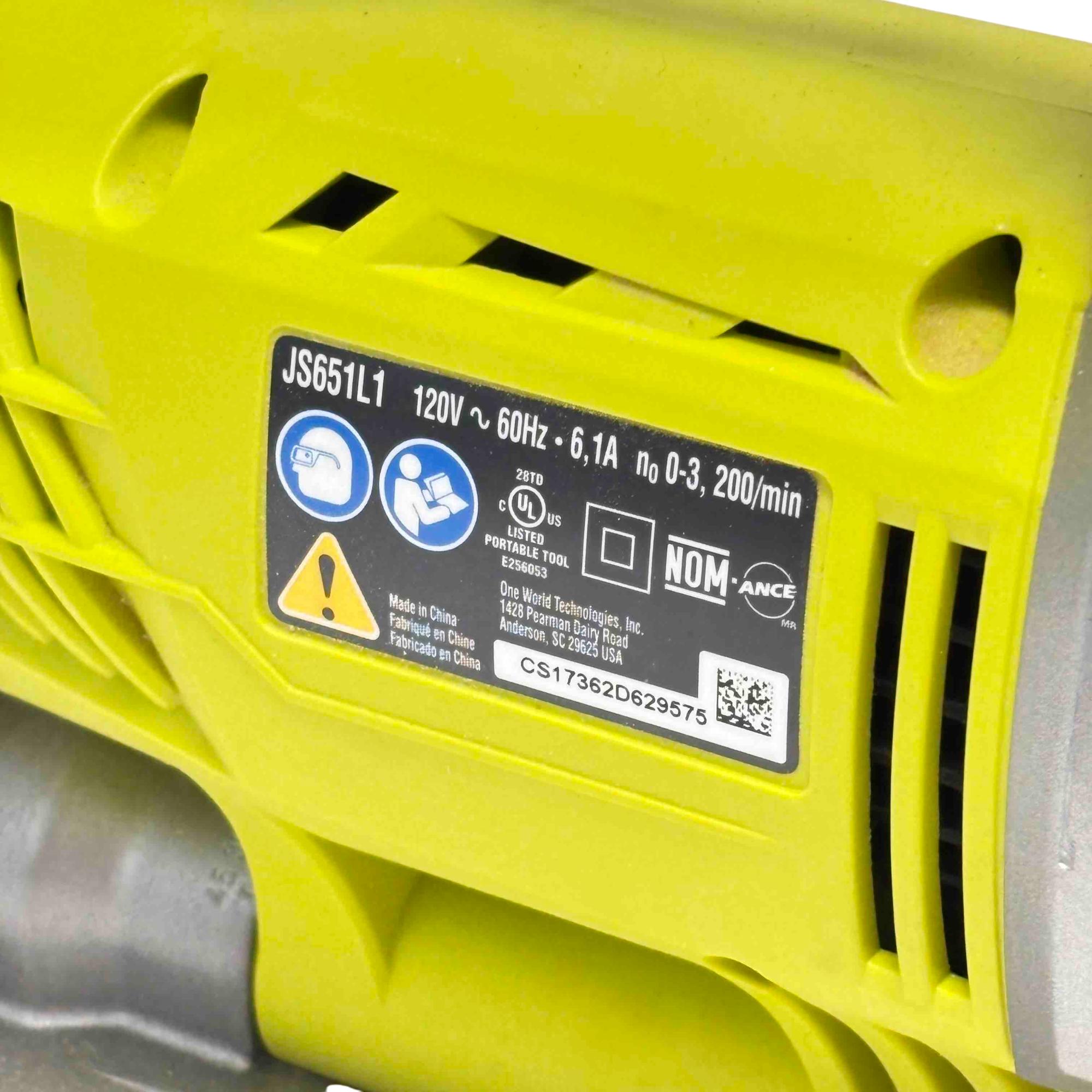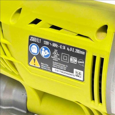 Power through your DIY and professional projects with the RYOBI JS651L1 Corded Variable Speed Orbital Jigsaw. Featuring a 6.1 amp motor, precise variable speed control, and Ryobis innovative SpeedMatch selector, this tool is engineered for exceptional accuracy and versatility in cutting wood, plastic, and metal. Its ergonomic yellow and black design makes it both comfortable and durable for extended use—perfect for craftsmen and hobbyists alike.