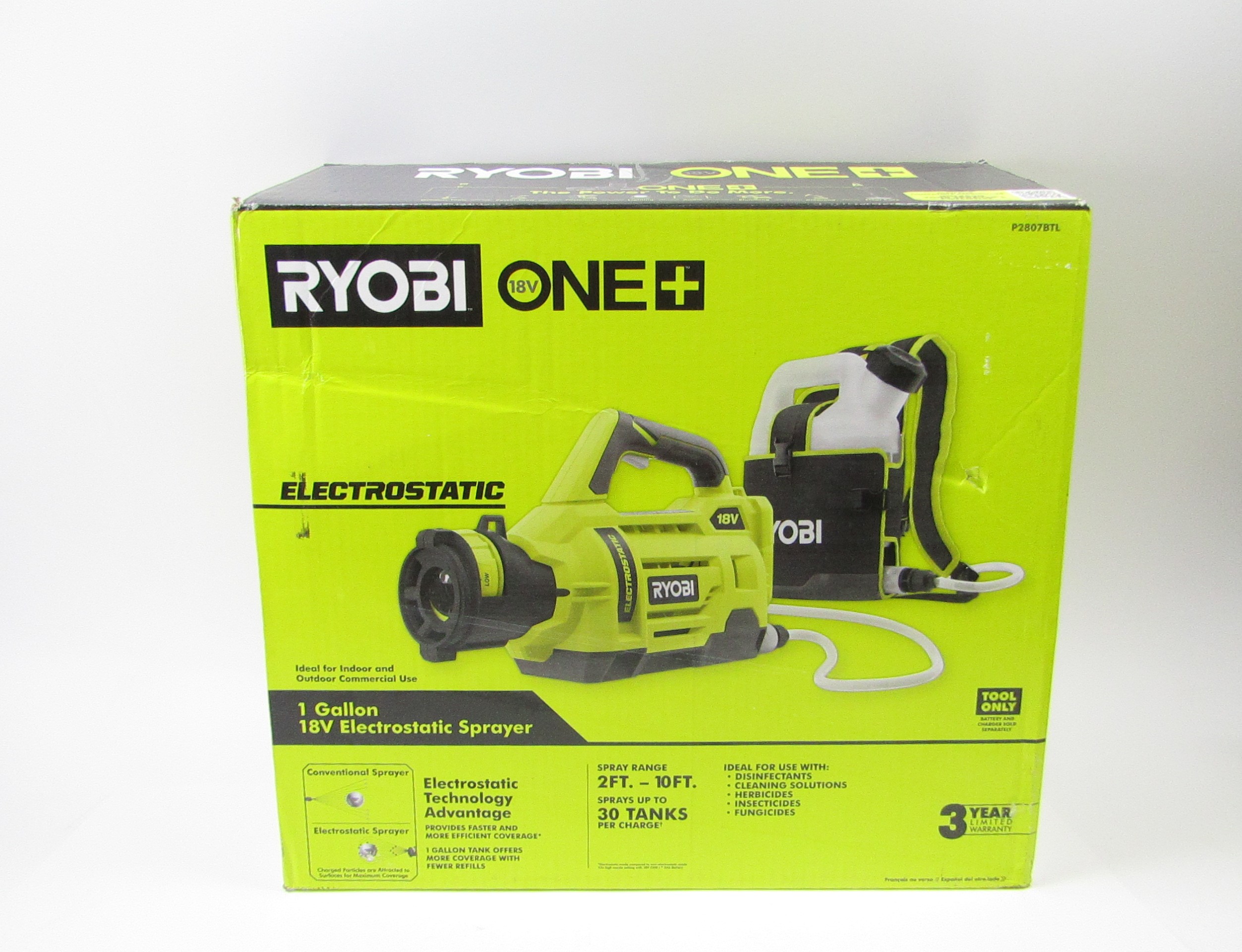 The RYOBI 18V ONE+ Cordless 1 Gallon Electrostatic Sprayer allows you to spray water soluble disinfectants, cleaning solutions and lawn and garden chemicals with the convenience and freedom of battery power.