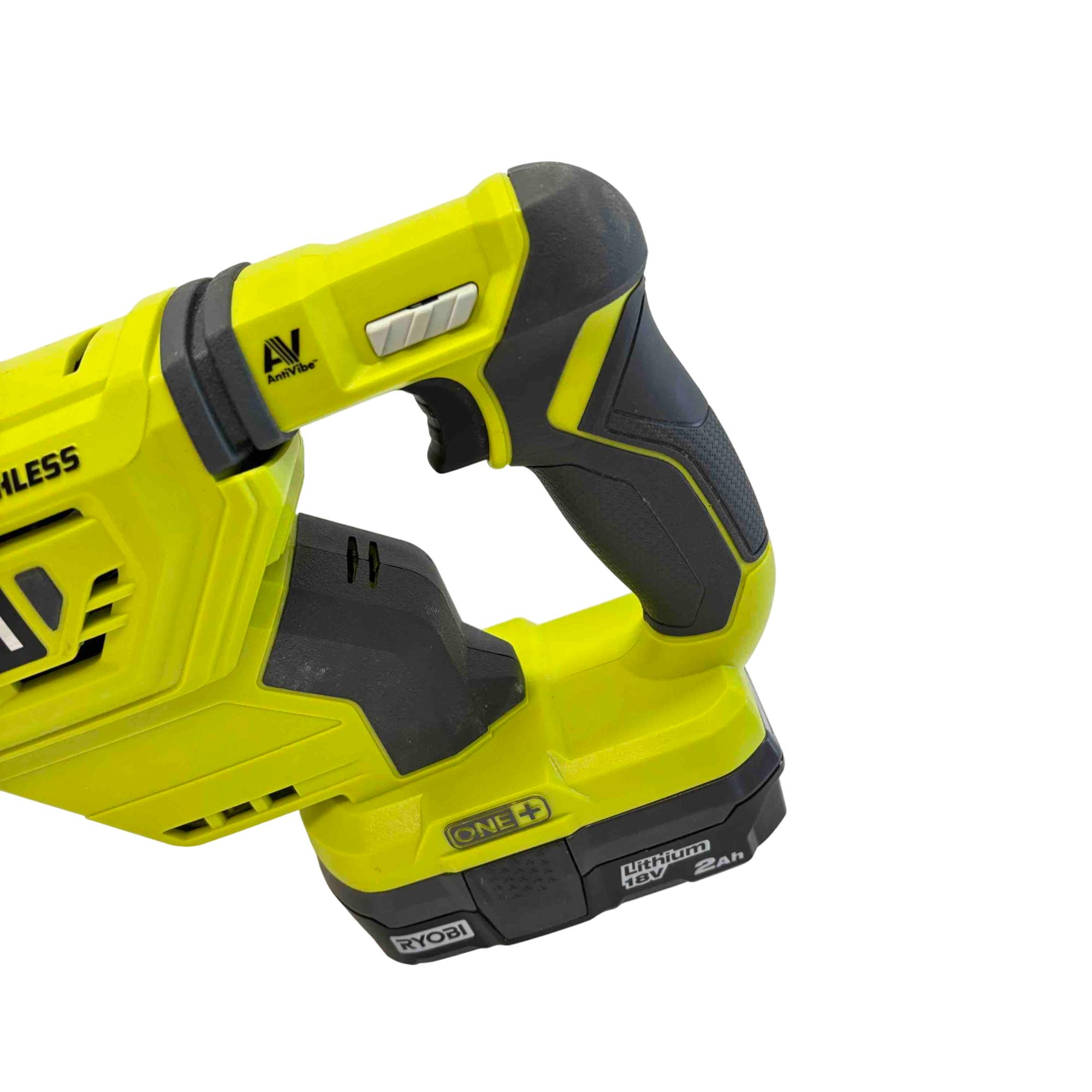 Unleash the power of precision cutting with the Ryobi ONE+ P518 18V Brushless Reciprocating Saw. This high-performance tool features a brushless motor that delivers superior run time and longer tool life. Perfect for a variety of DIY and professional applications, it comes complete with a 2Ah Lithium-Ion battery and charger, ensuring youre always ready to tackle your next project.