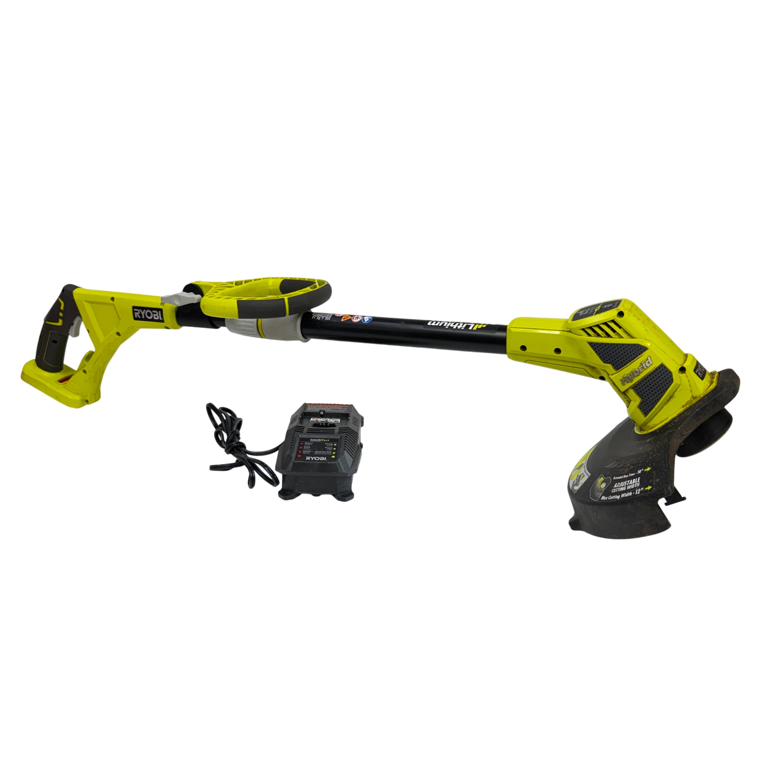 The Ryobi P2200 10 in. String Trimmer is a versatile 18V cordless lawn tool designed for efficient trimming and edging. Featuring a 10-inch adjustable cutting width and compatibility with Ryobi ONE+ lithium-ion batteries, this model offers hybrid power technology for extended use and energy savings. Included is the IntelliPort charger, which supports multiple battery chemistries for fast and safe charging. Ideal for homeowners seeking a lightweight yet powerful trimmer to maintain clean and precise lawn edges.