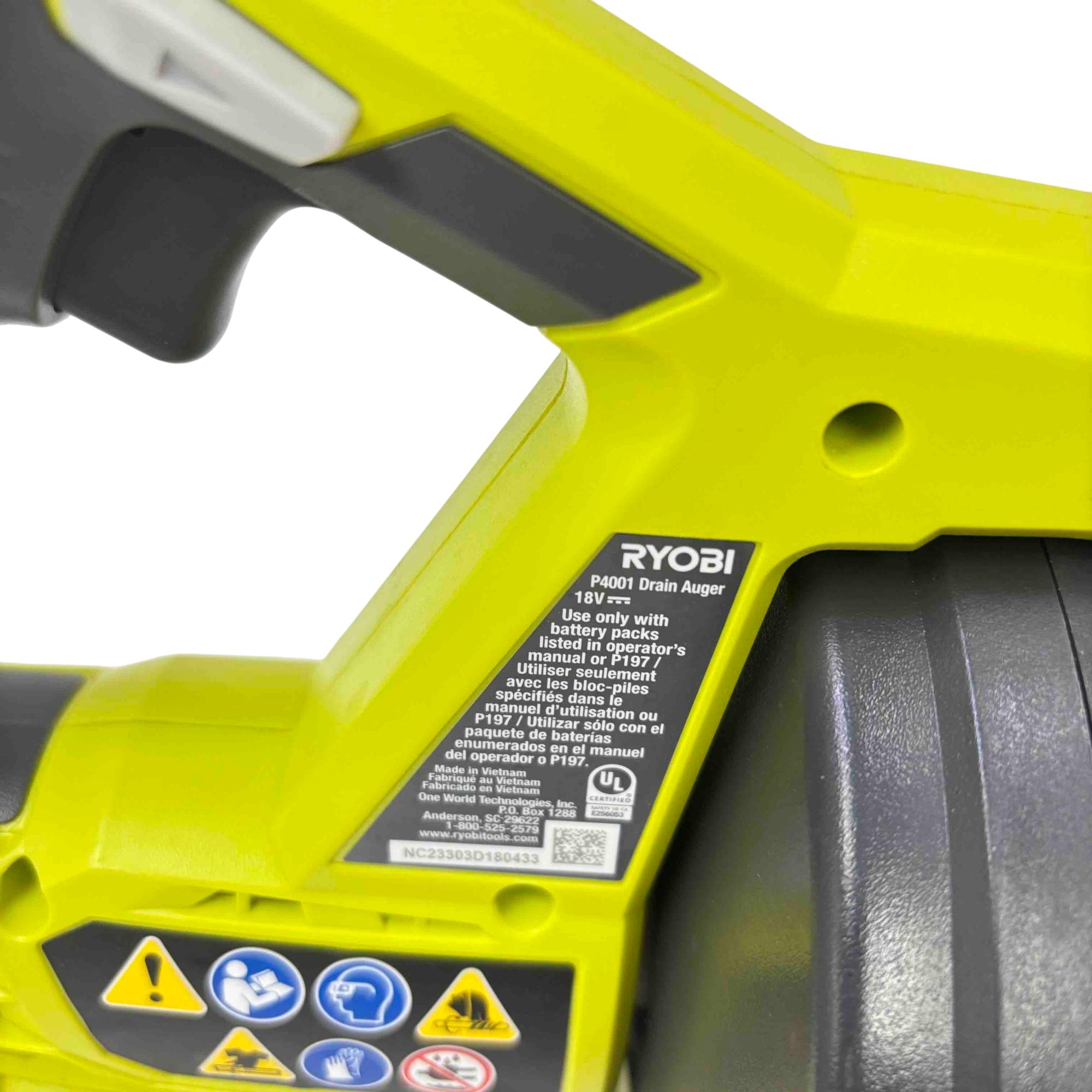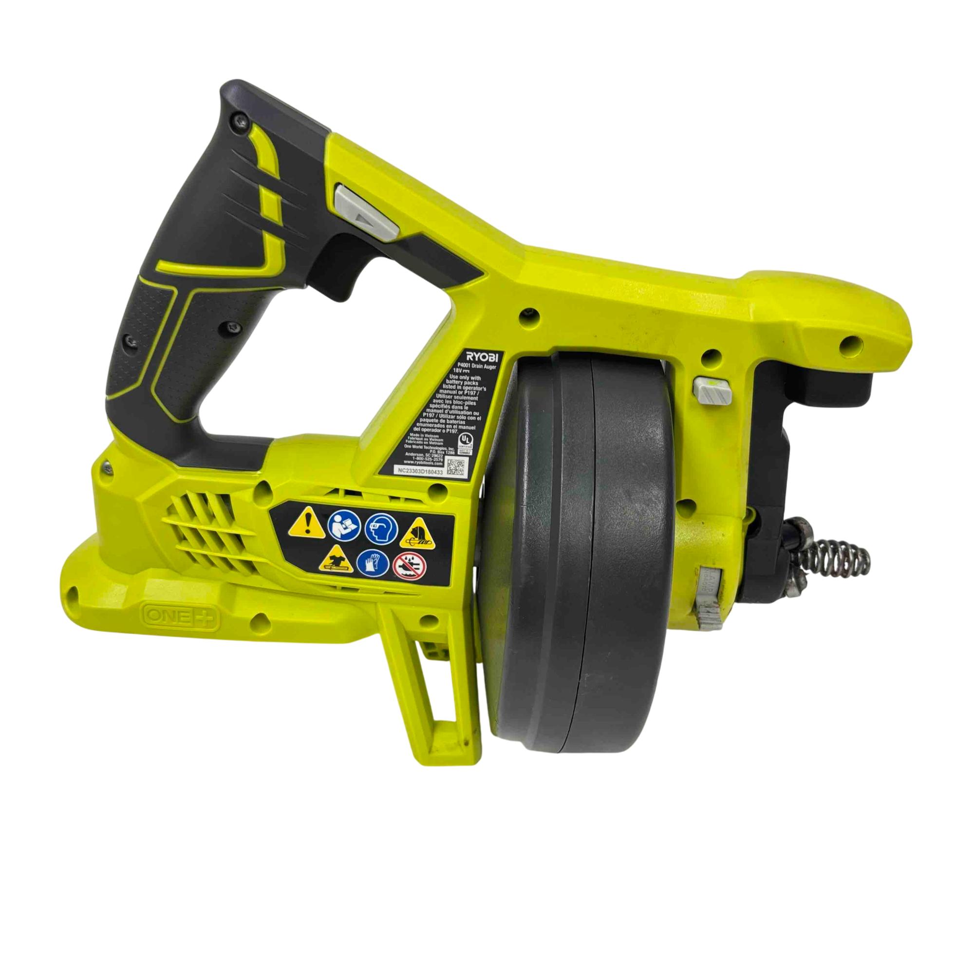 Tackle tough drain clogs with the Ryobi P4001 ONE+ 18V Cordless Drain Auger, featuring an ergonomic handle, auto-feed operation, and robust performance powered by Ryobi’s trusted ONE+ battery system. Perfect for clearing sinks, bathtubs, and showers, this handy power tool offers unparalleled convenience and durability for any DIY plumber or homeowner.