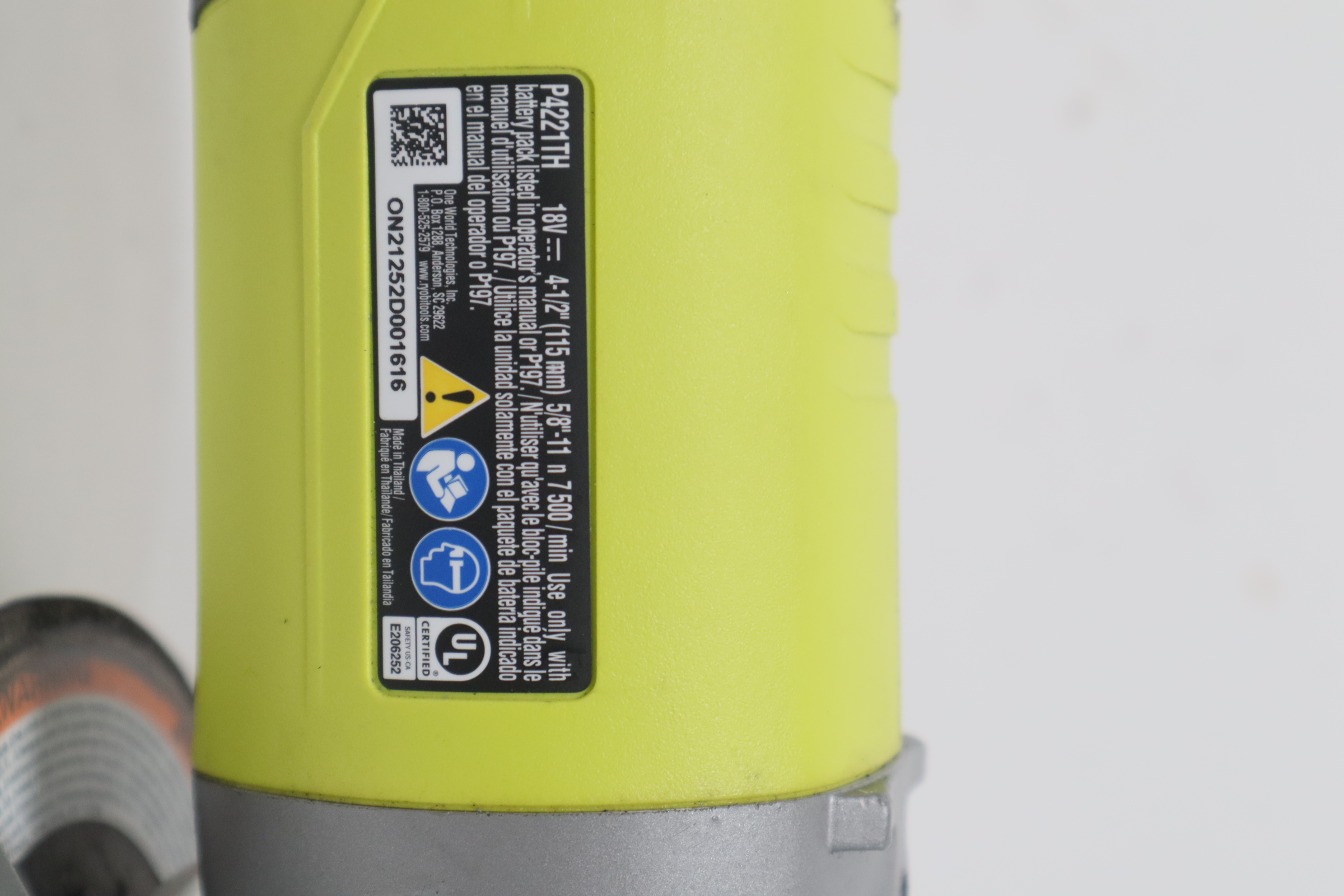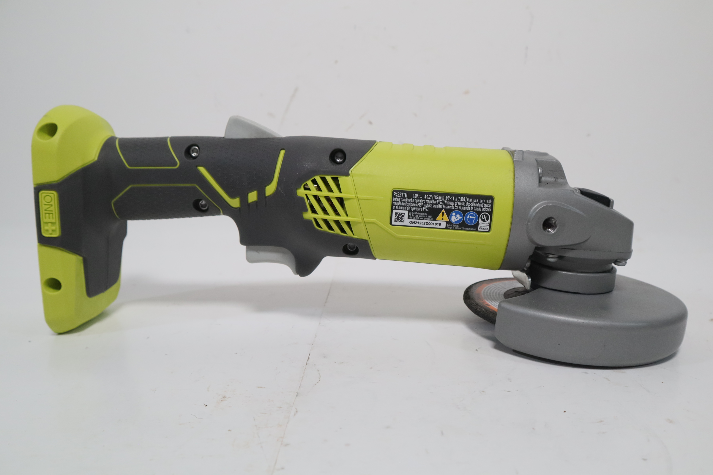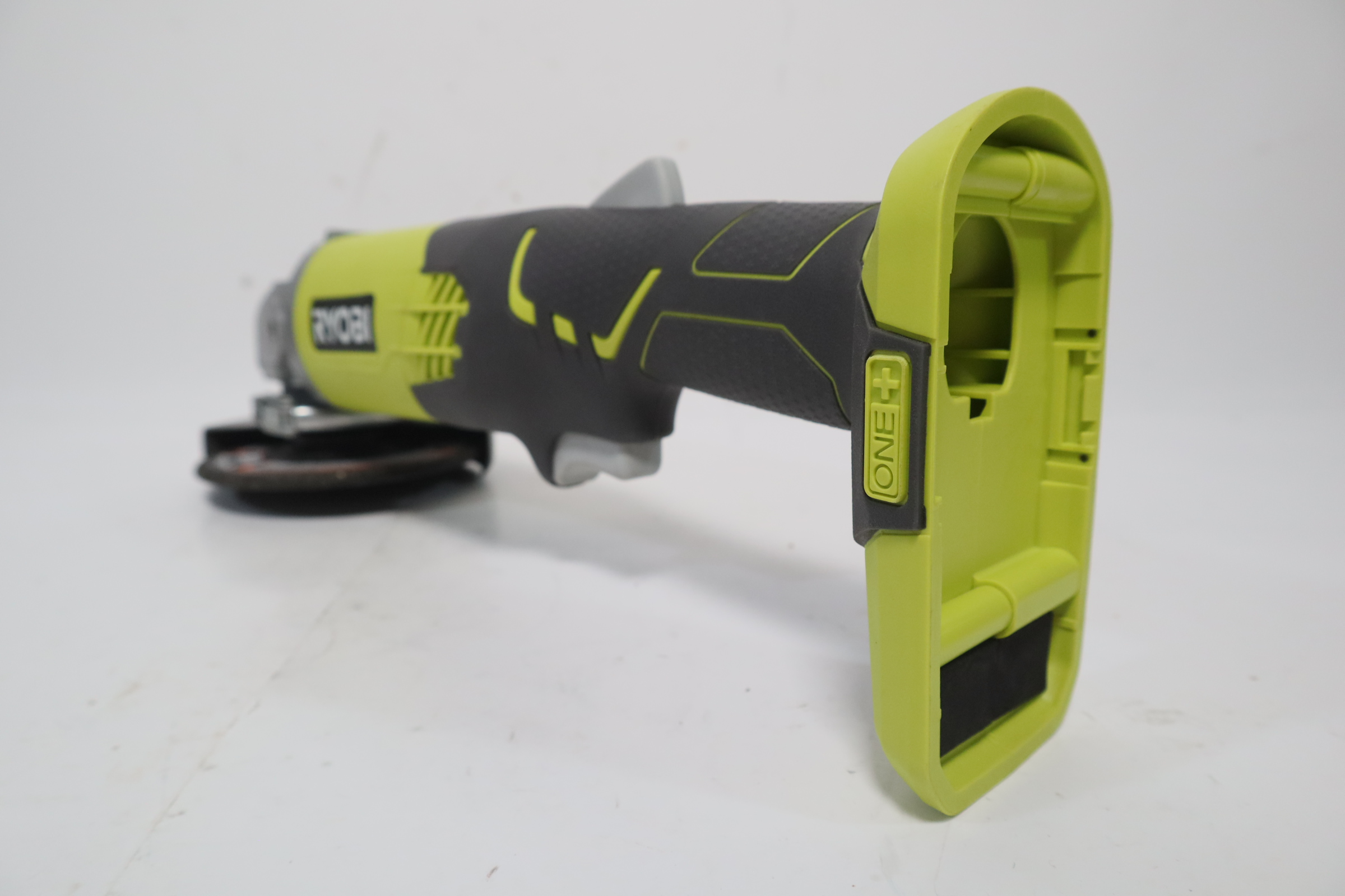 The RYOBI 18V ONE+ 4-1/2 in. Angle Grinder delivers a powerful 6,500 RPM for fast and precise work. This tool offers a host of convenient features, including on-board wrench storage. A comfortable GripZone overmold combined with a 3-position side handle help reduce fatigue. A 4-1/2 in. grinding wheel is included for added value and convenience.