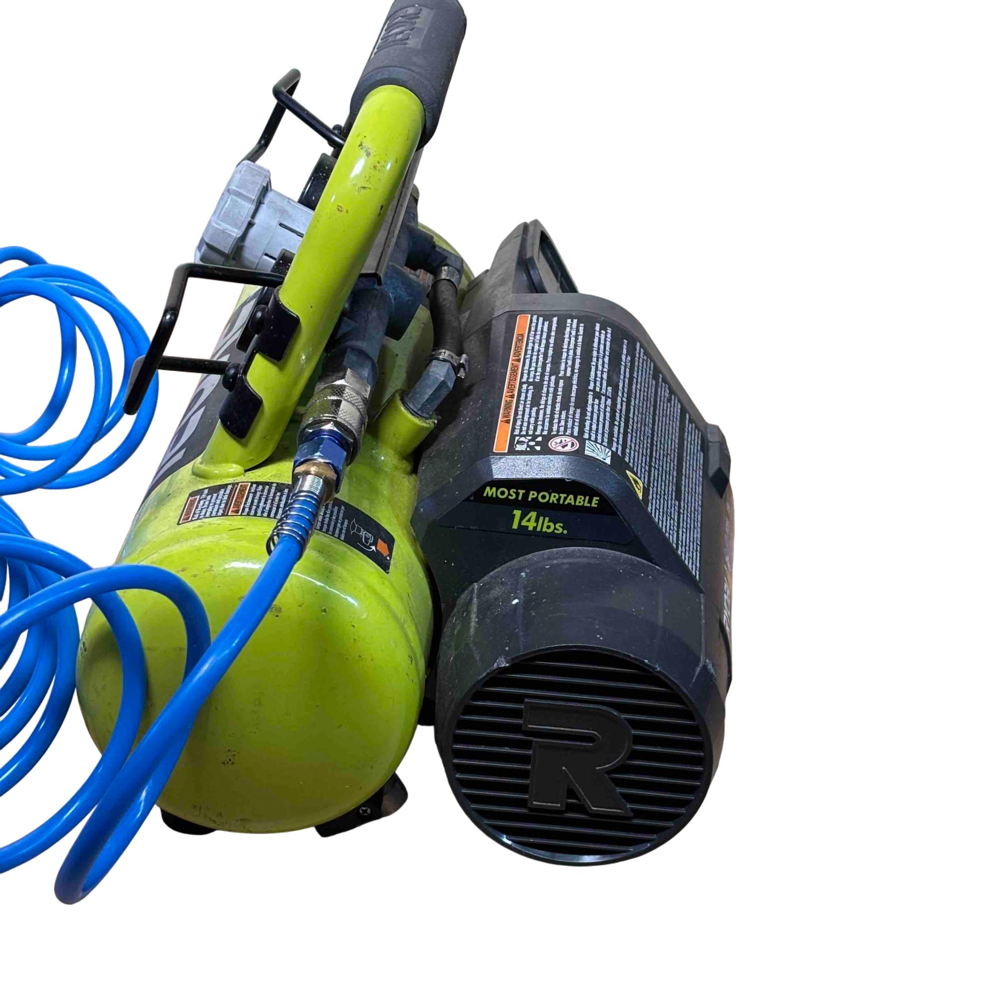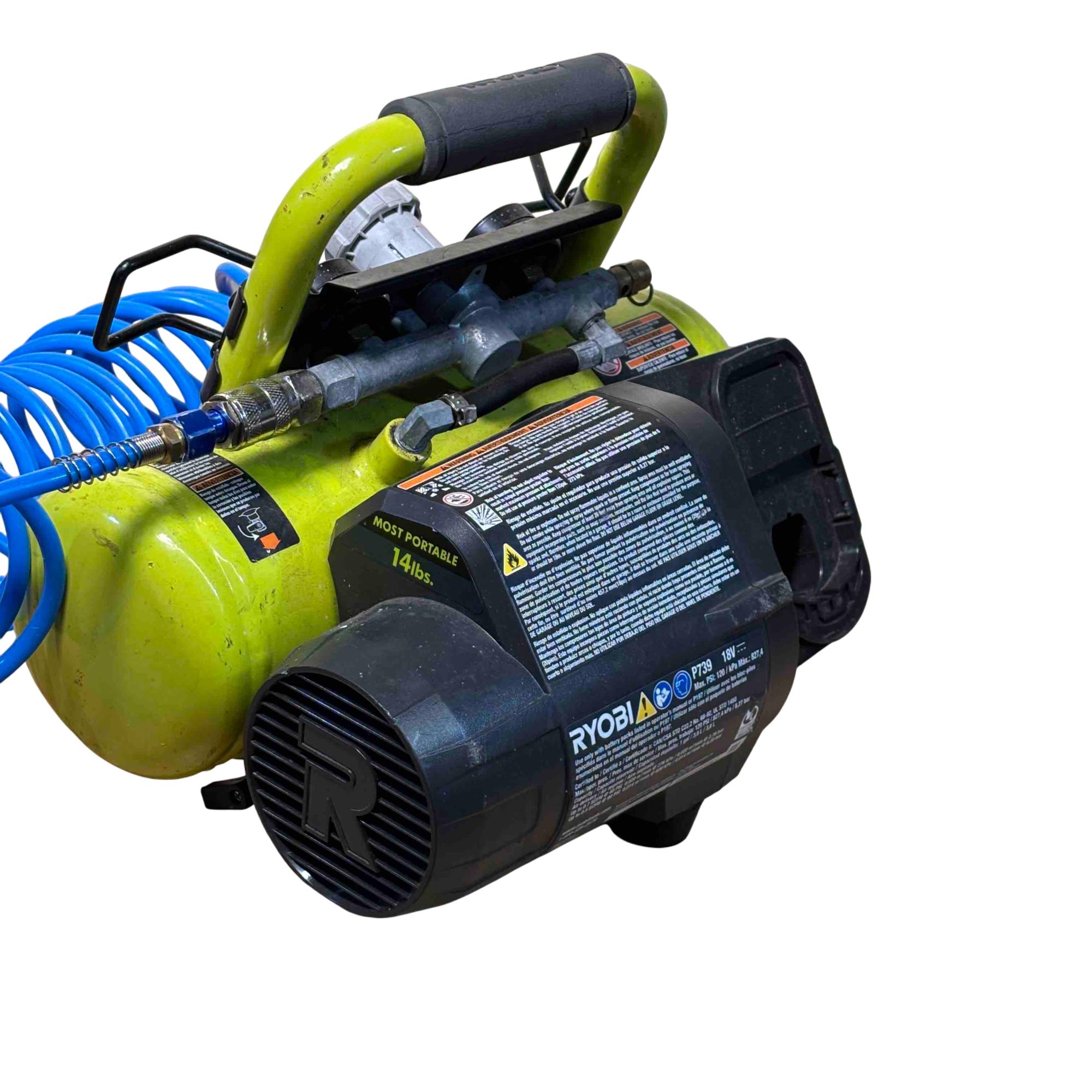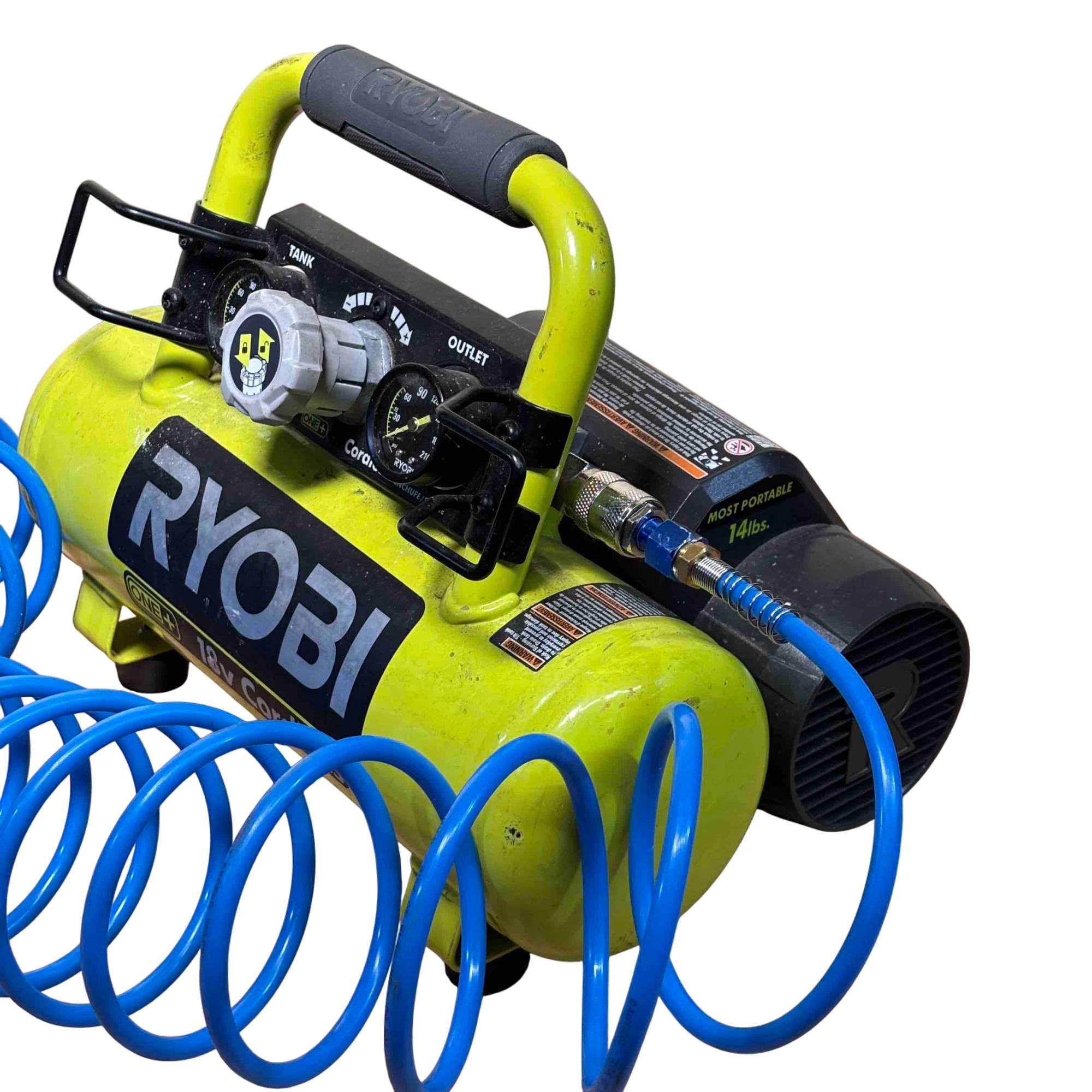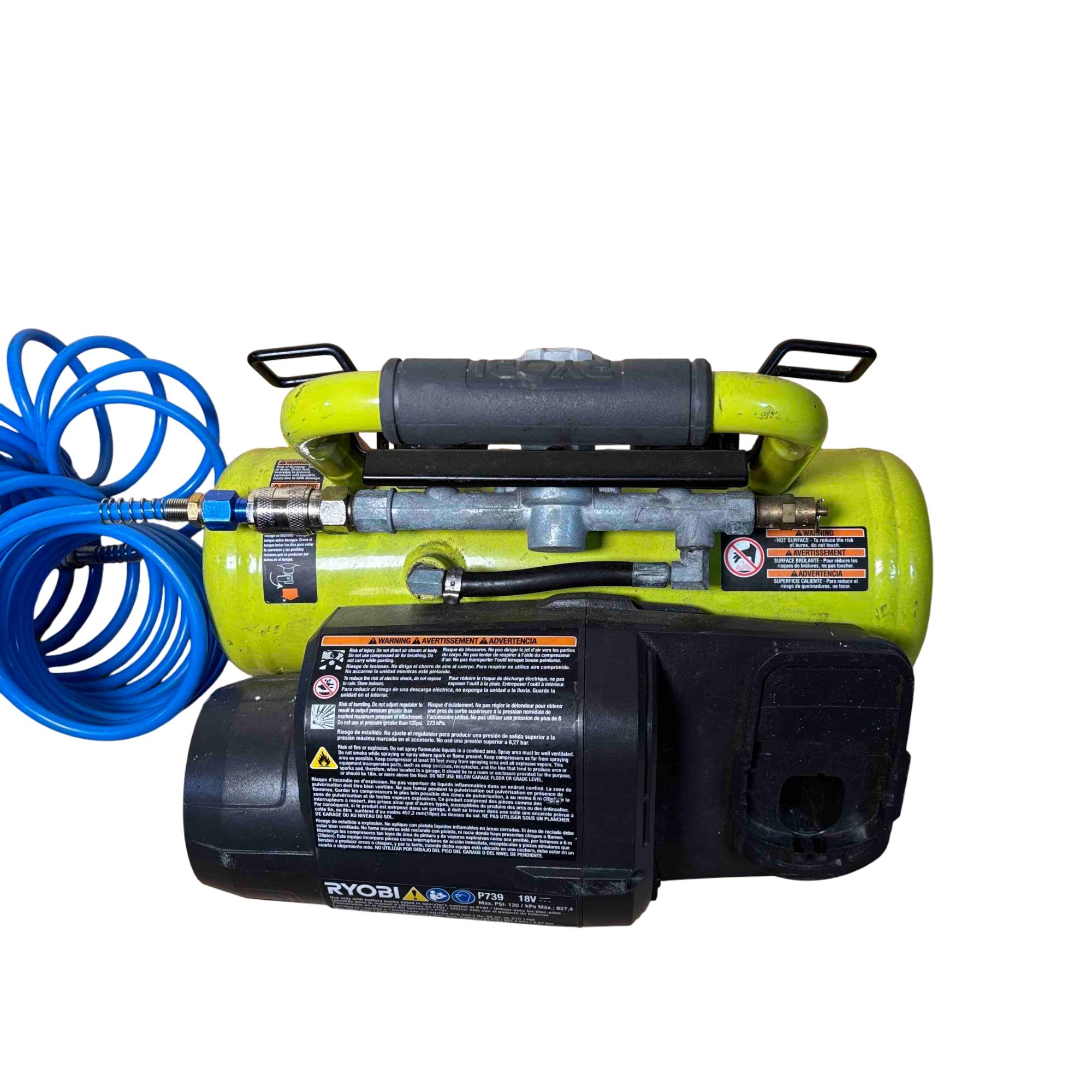 Experience ultimate portability and power with the Ryobi ONE+ P739 18V Cordless 1 Gallon Air Compressor. Weighing only 14 lbs, this compact yet robust machine is perfect for inflating tires, powering pneumatic tools, and handling DIY projects on the go. Enjoy the convenience of cordless operation using any Ryobi ONE+ 18V lithium battery.