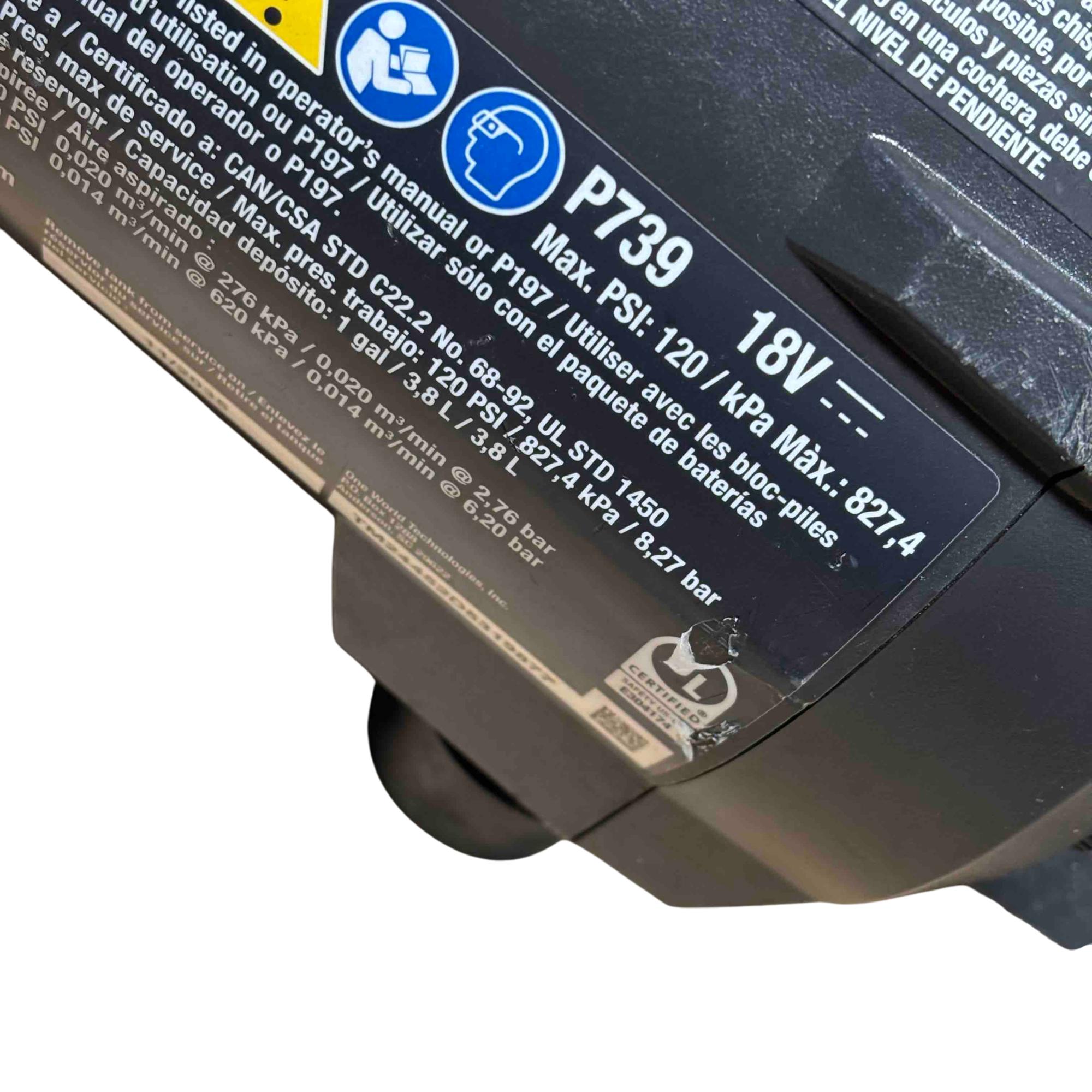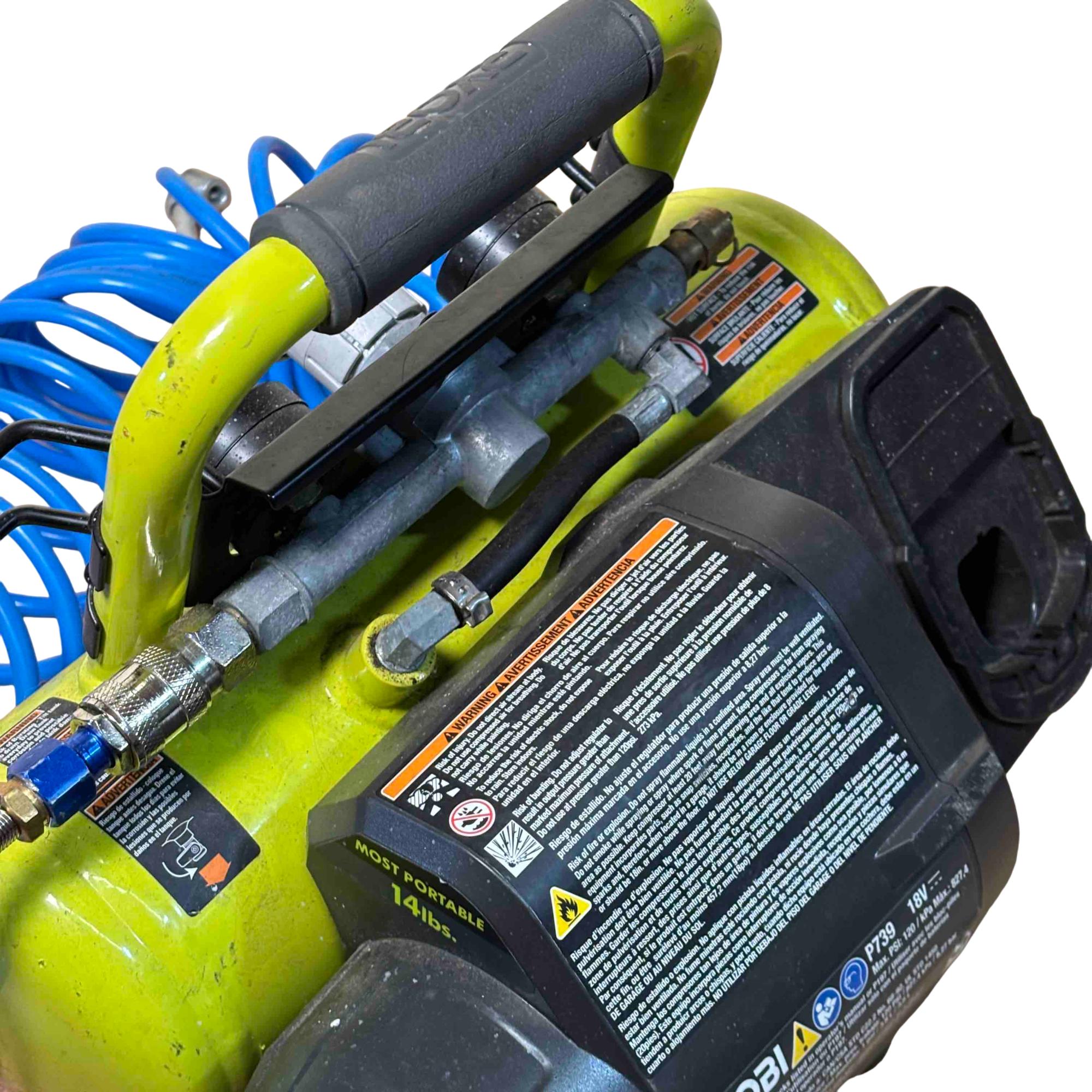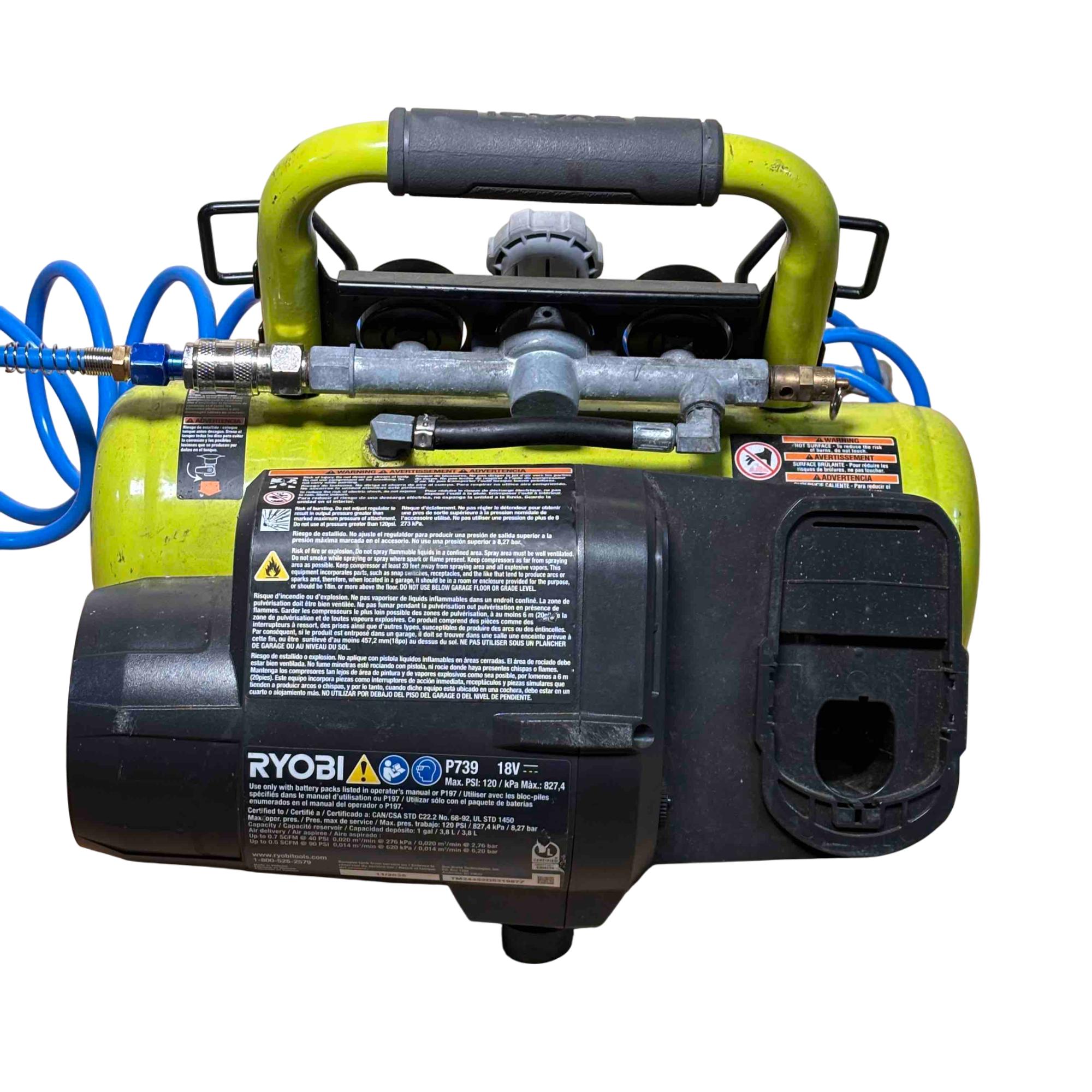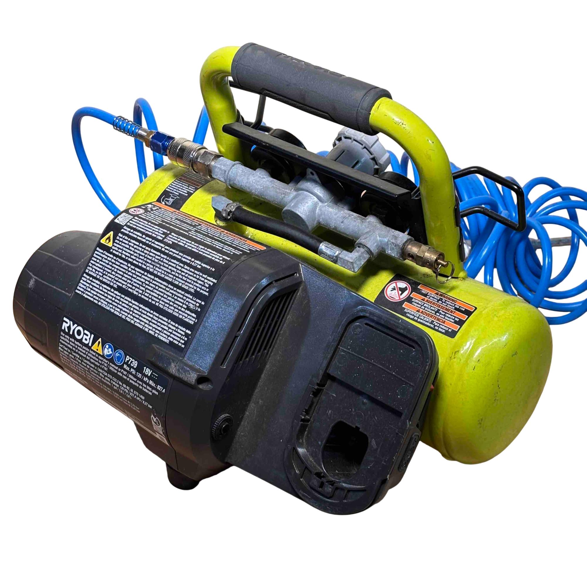 Experience ultimate portability and power with the Ryobi ONE+ P739 18V Cordless 1 Gallon Air Compressor. Weighing only 14 lbs, this compact yet robust machine is perfect for inflating tires, powering pneumatic tools, and handling DIY projects on the go. Enjoy the convenience of cordless operation using any Ryobi ONE+ 18V lithium battery.
