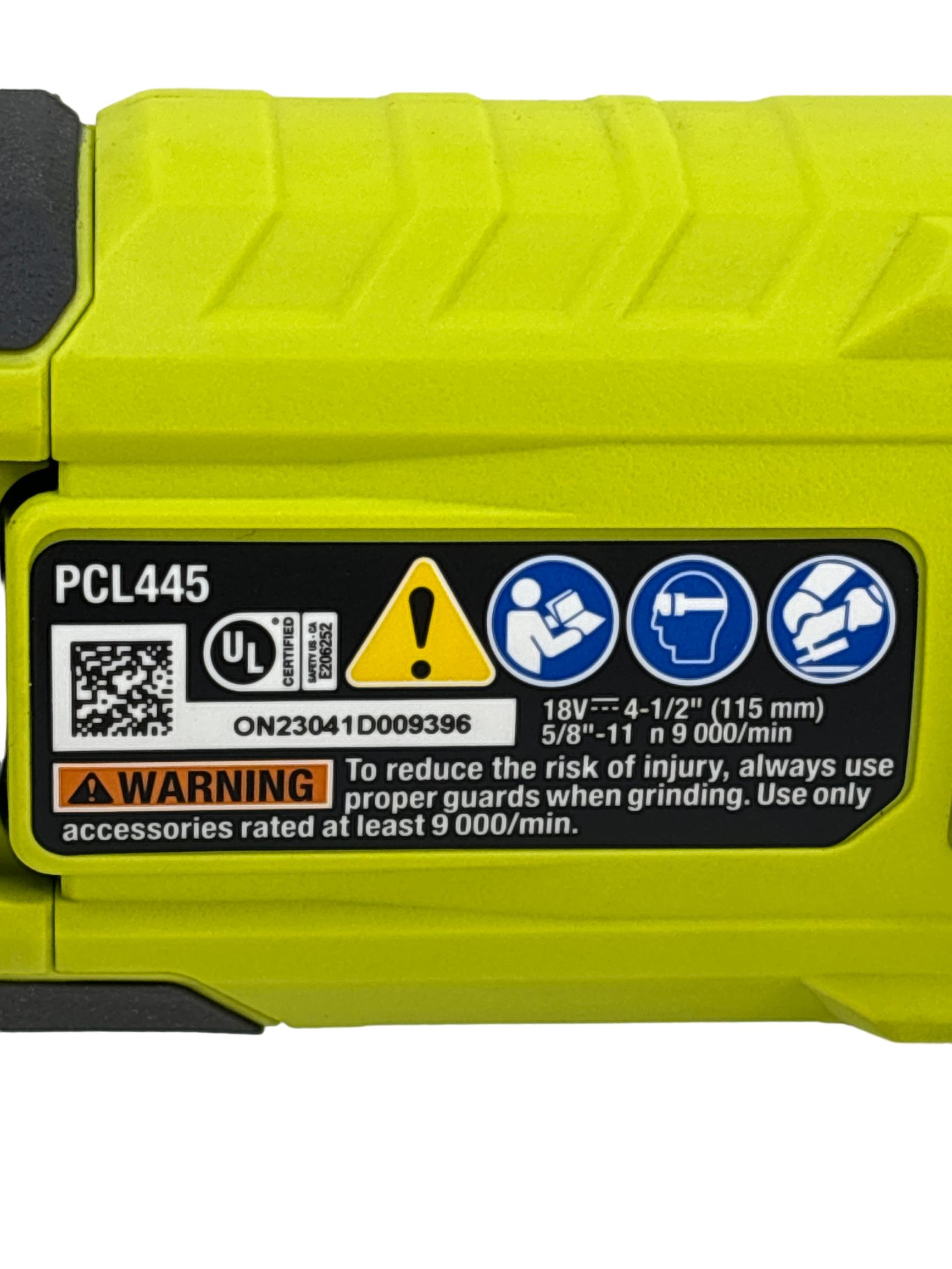 Ryobi PCL445 ONE+ 18V Cordless Lithium Ion 4 1/2" Angle Grinder