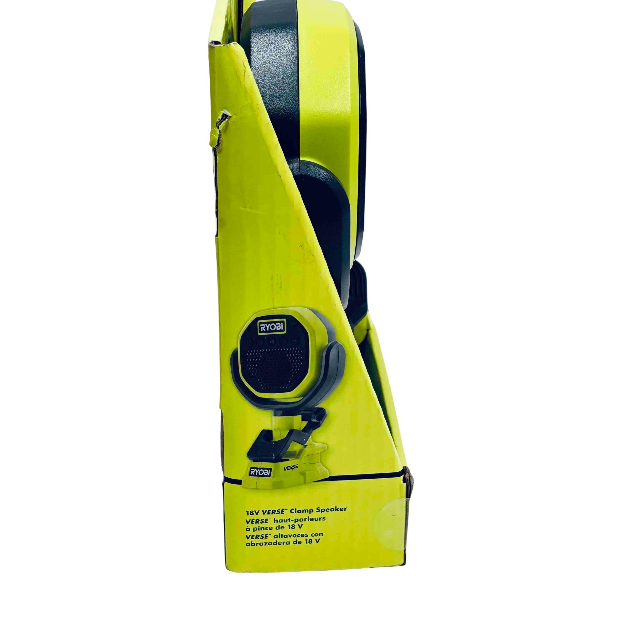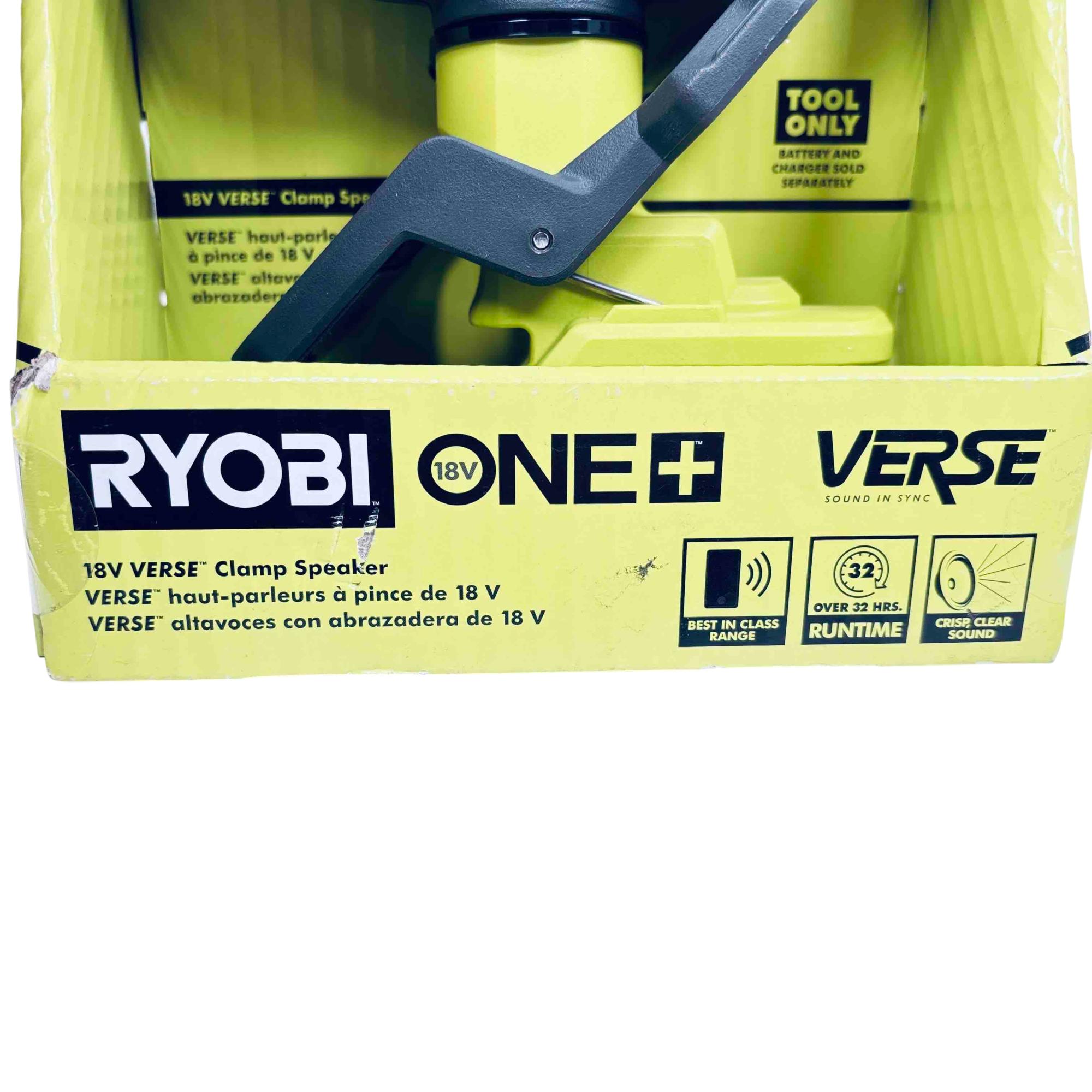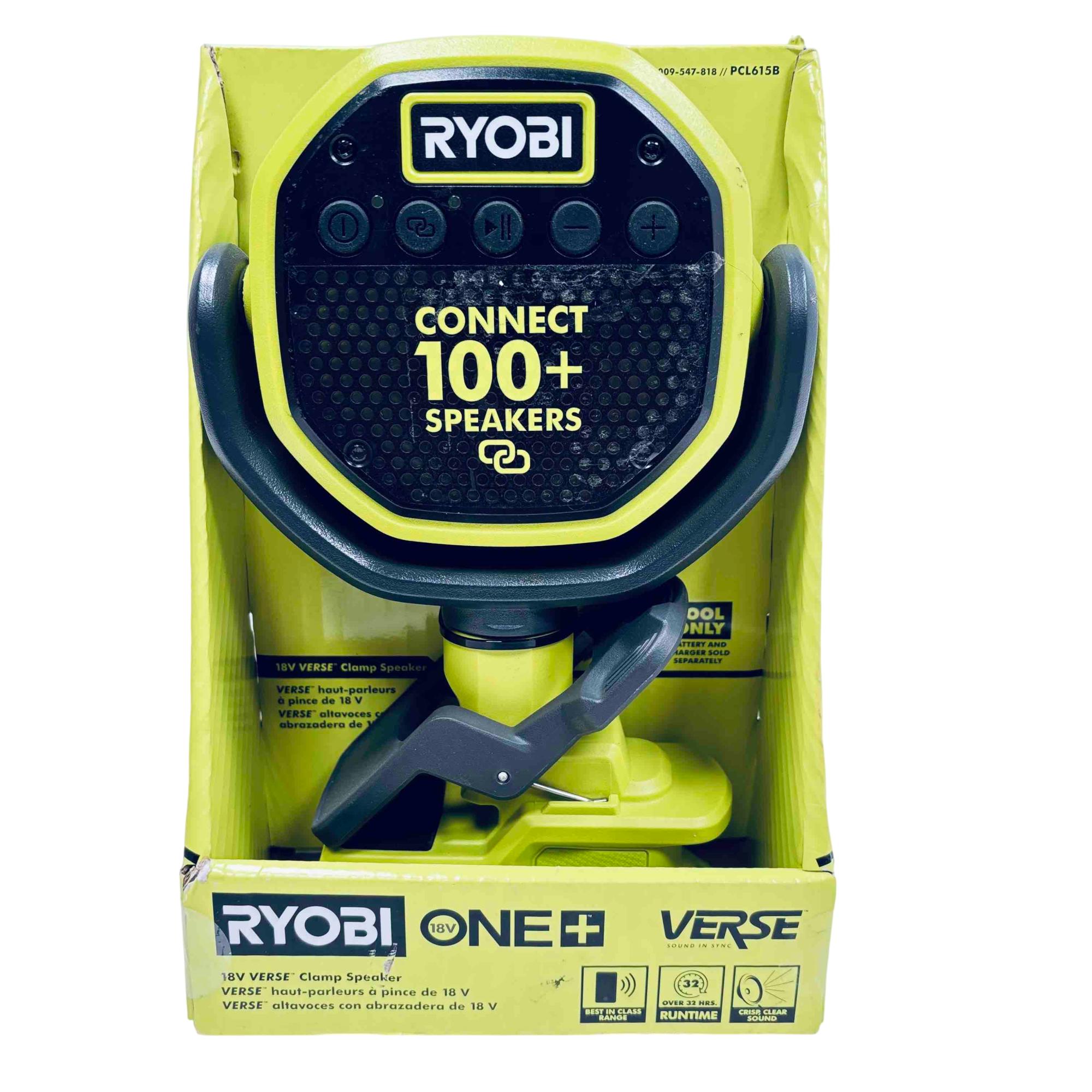 Experience powerful, portable sound anywhere with the Ryobi 18V ONE+ VERSE Clamp Bluetooth Speaker. Designed for professionals and DIYers, this versatile speaker easily clamps to various surfaces, features Bluetooth connectivity with a range of over 250 ft, and allows you to sync up with over 100+ compatible speakers for immersive audio. With up to 32 hours of runtime (battery sold separately), it’s the ultimate rugged audio companion for your workshop, jobsite, or outdoor adventures.