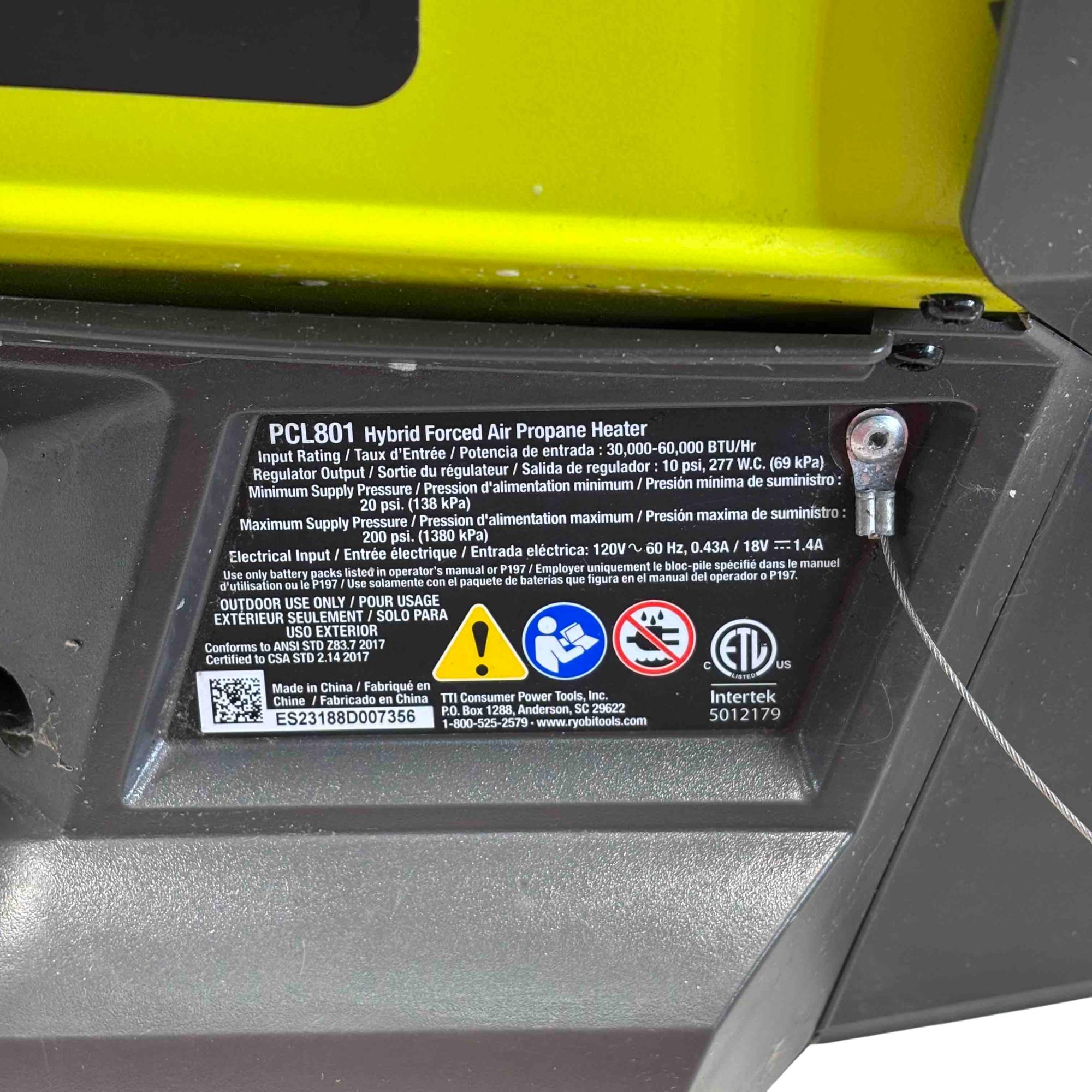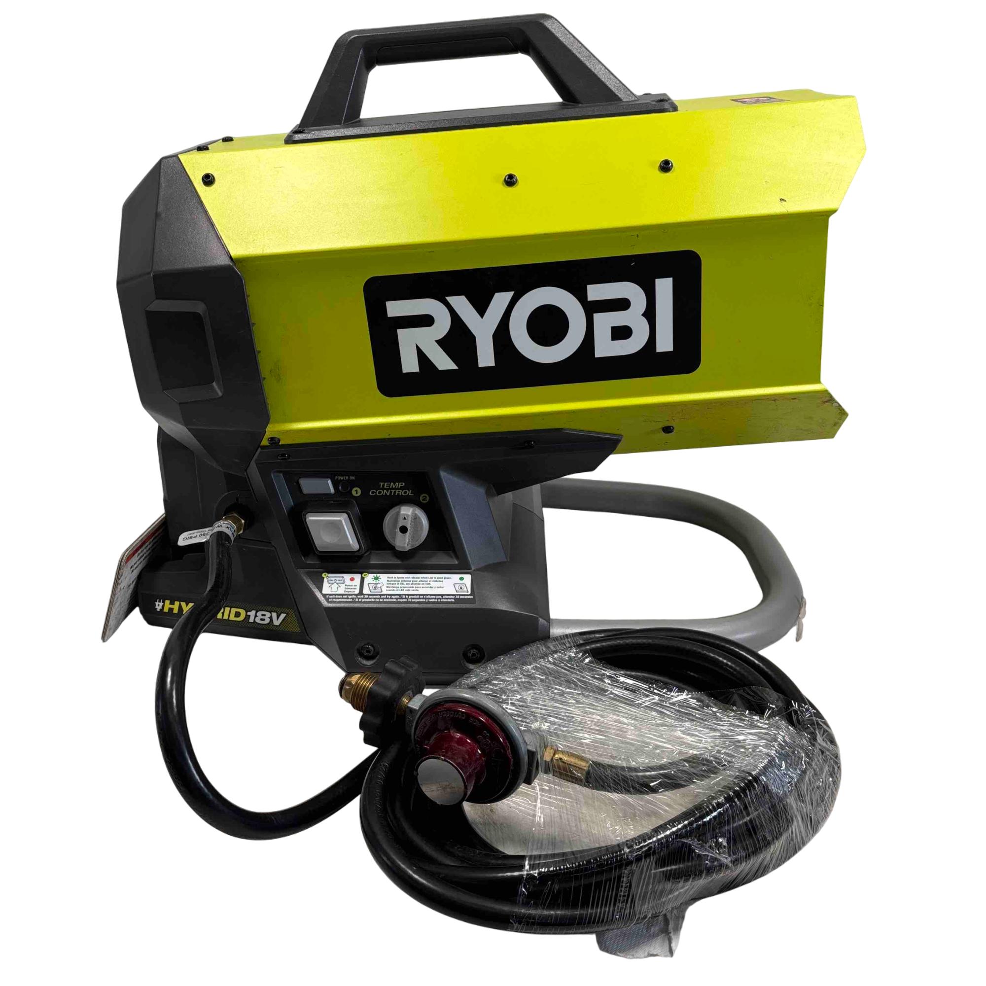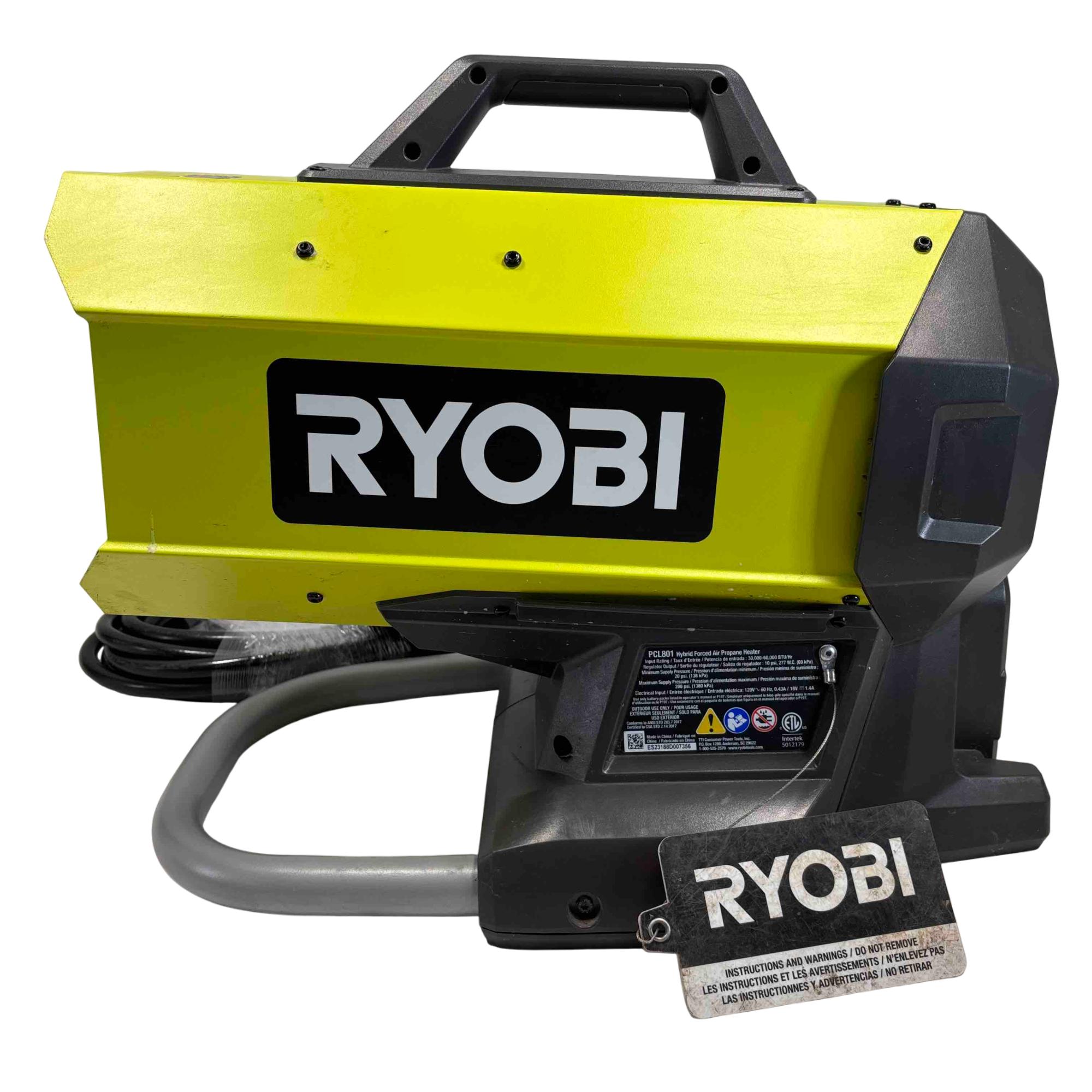 The Ryobi PCL801 ONE+ 18V Hybrid Forced Air Propane Heater is a powerful and portable solution for heating your workshop, garage, or outdoor events. Featuring hybrid technology, it can run on both propane and Ryobi 18V ONE+ batteries, providing flexibility. Its easy-carry handles make it the perfect choice for users seeking efficiency, performance, and convenience.