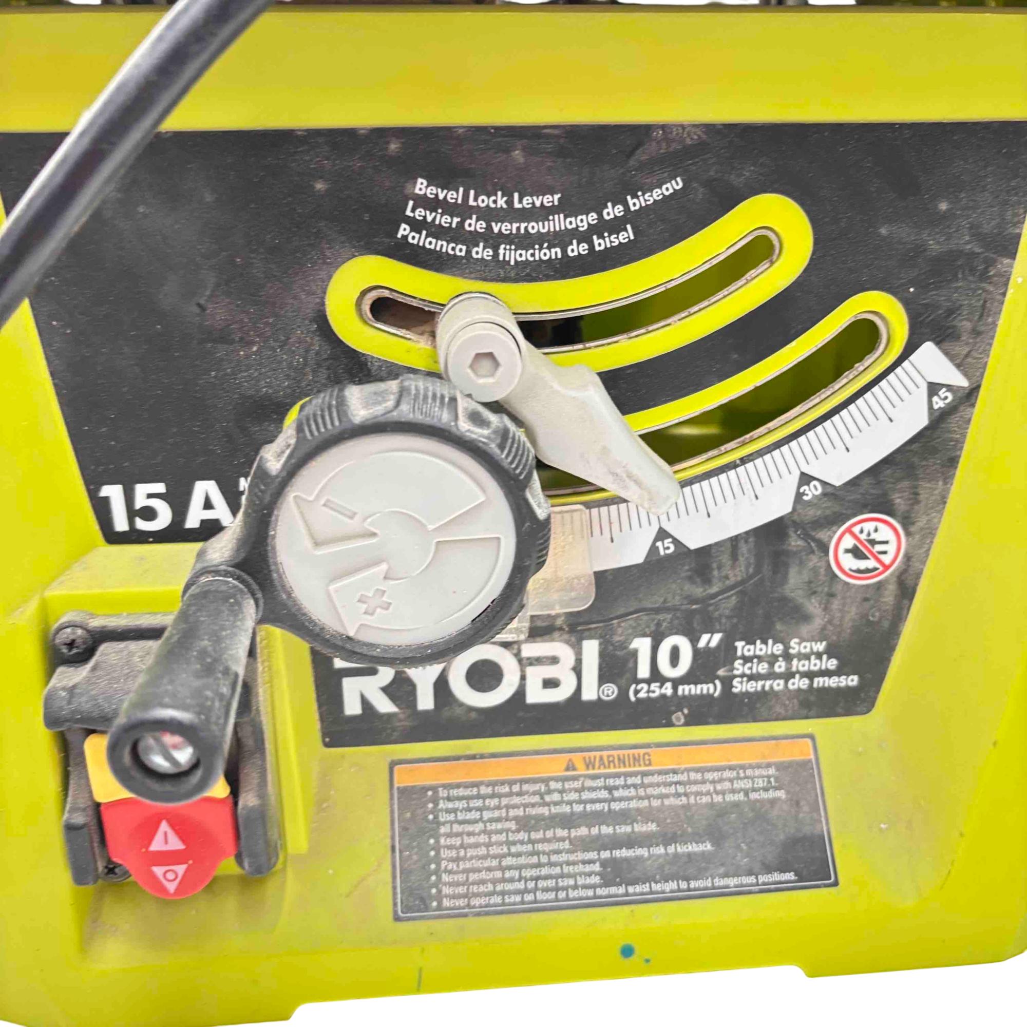 Unleash your woodworking potential with the Ryobi RTS10G 10" Table Saw. This robust machine features a powerful 15 Amp motor and is equipped with essential safety features, including a bevel lock lever to ensure precision and user protection. Ideal for both professionals and DIY enthusiasts, this versatile table saw is your go-to tool for achieving clean and accurate cuts every time.
