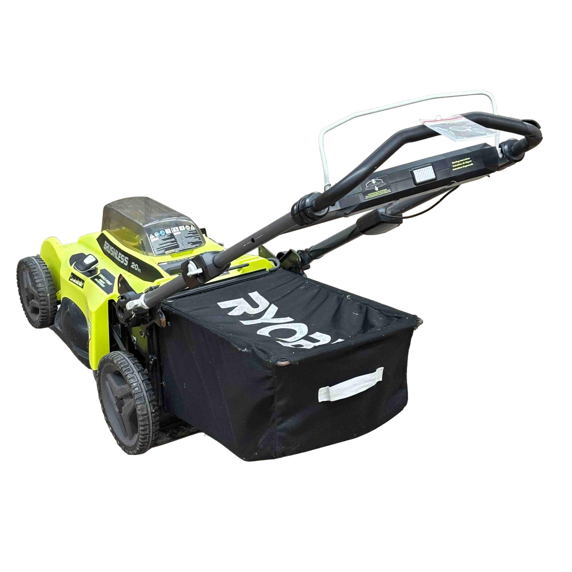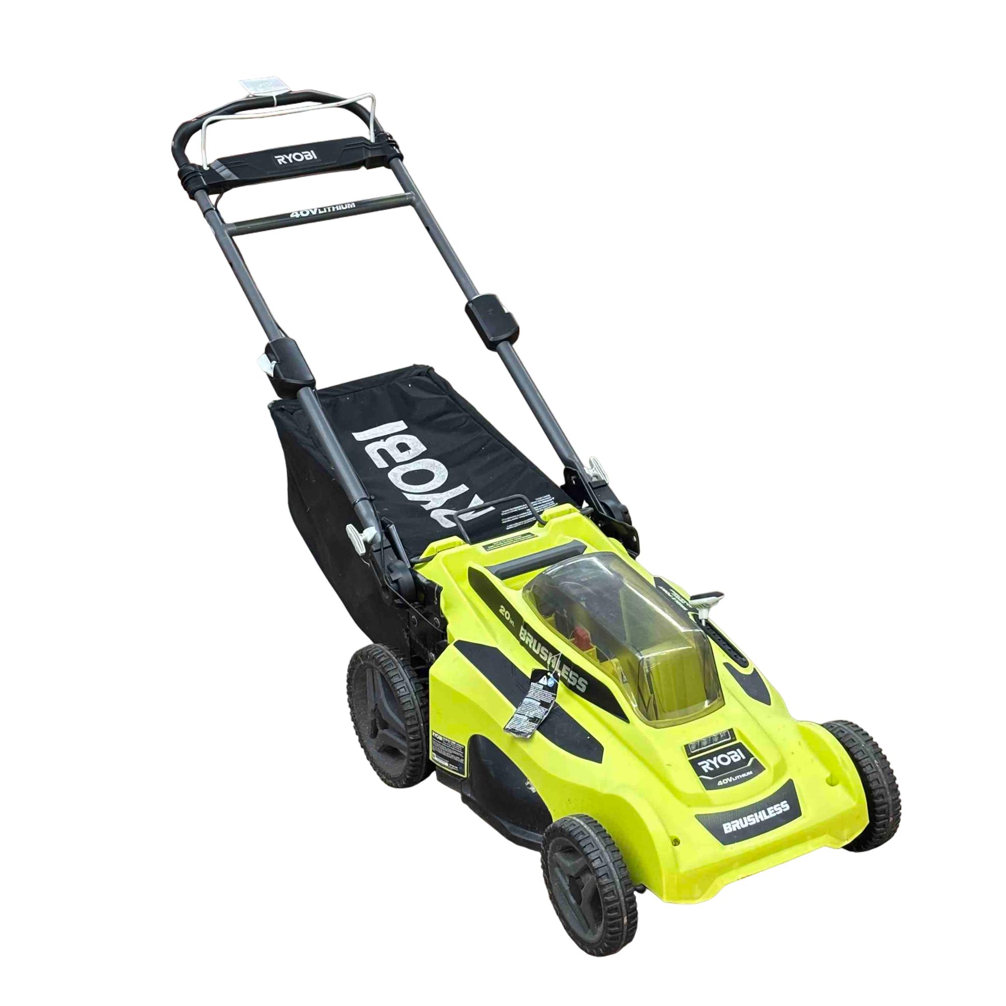 The Ryobi 40V Brushless 20" Cordless Lawn Mower delivers powerful, gas-like performance with the convenience of cordless operation. Its brushless motor provides efficient cutting, and the 7-position height adjustment lets you customize your grass length. Choose between bagging or mulching, and LED headlights make evening mowing easy. The mower features a collapsible handle for compact storage and a simple, one-motion system to empty the grass bag.