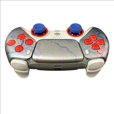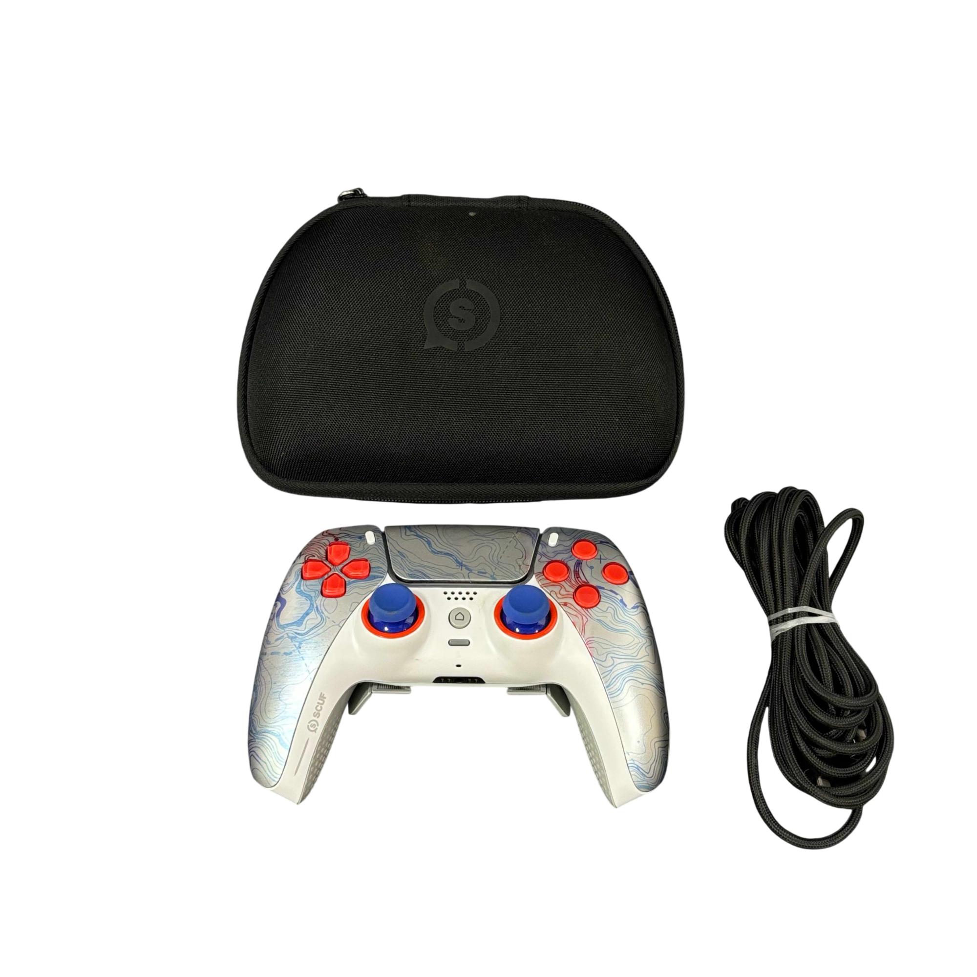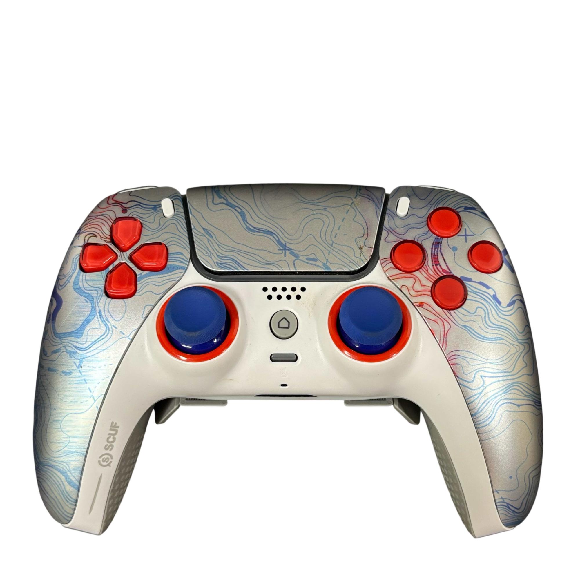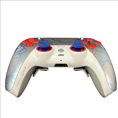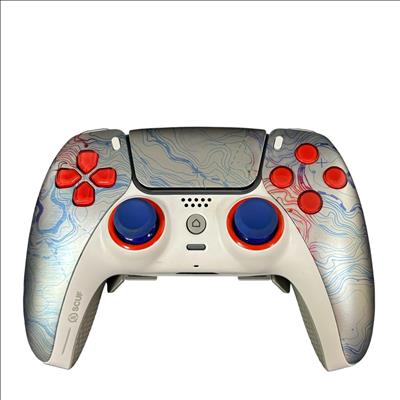 SCUF Reflex Pro CFI-ZCT1WA Custom PS5 Wireless Controller features a sleek white design accented by red and blue buttons for enhanced gameplay precision. Engineered for competitive gaming, this wireless controller includes customizable components and ergonomic grips to improve comfort during extended play sessions. Its robust build and attention to detail make it a reliable choice for serious PS5 players seeking performance and style.