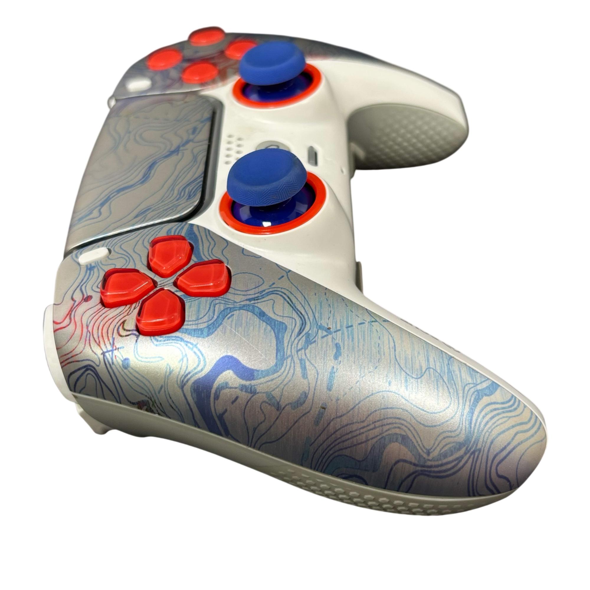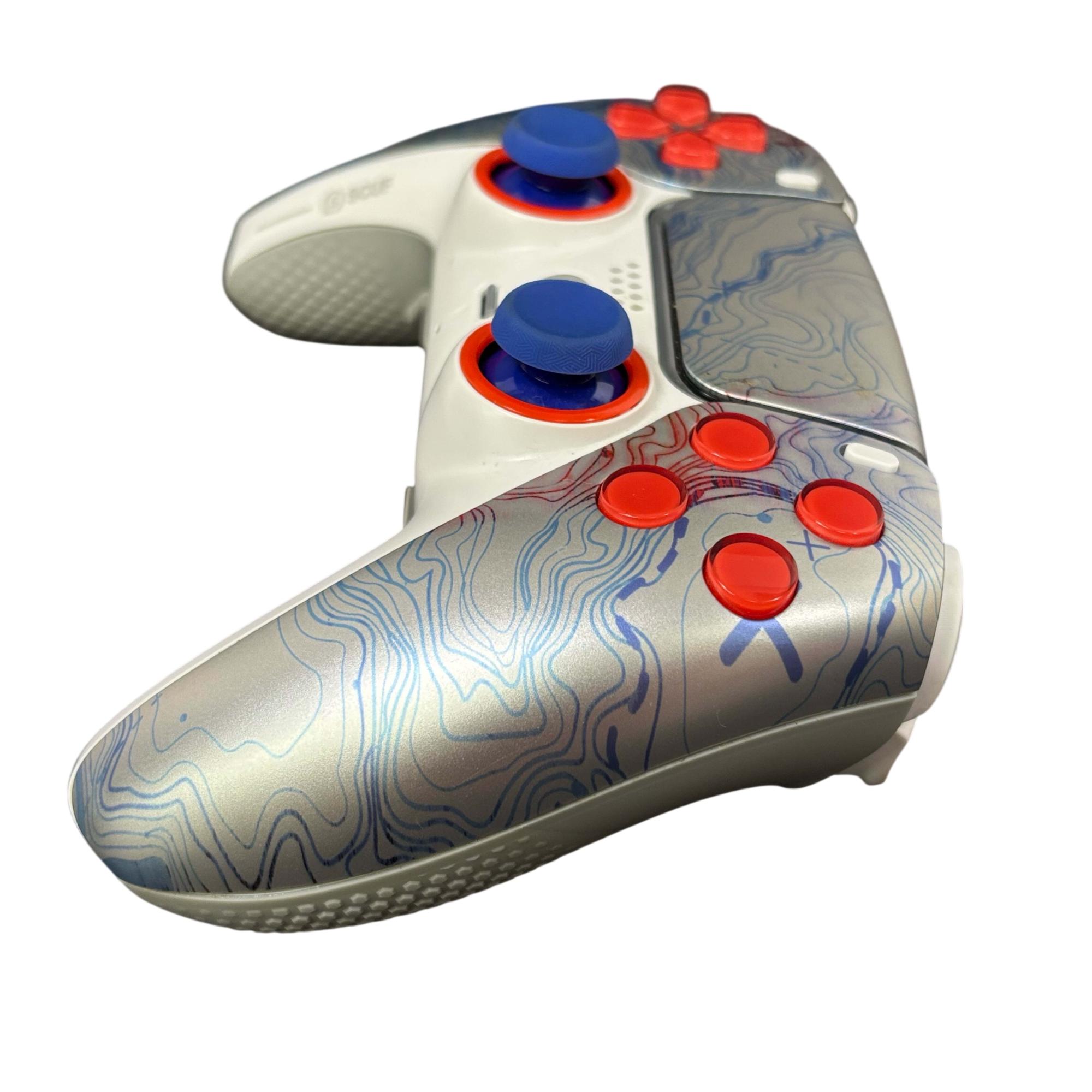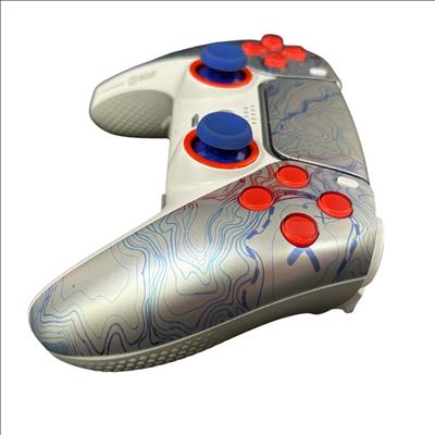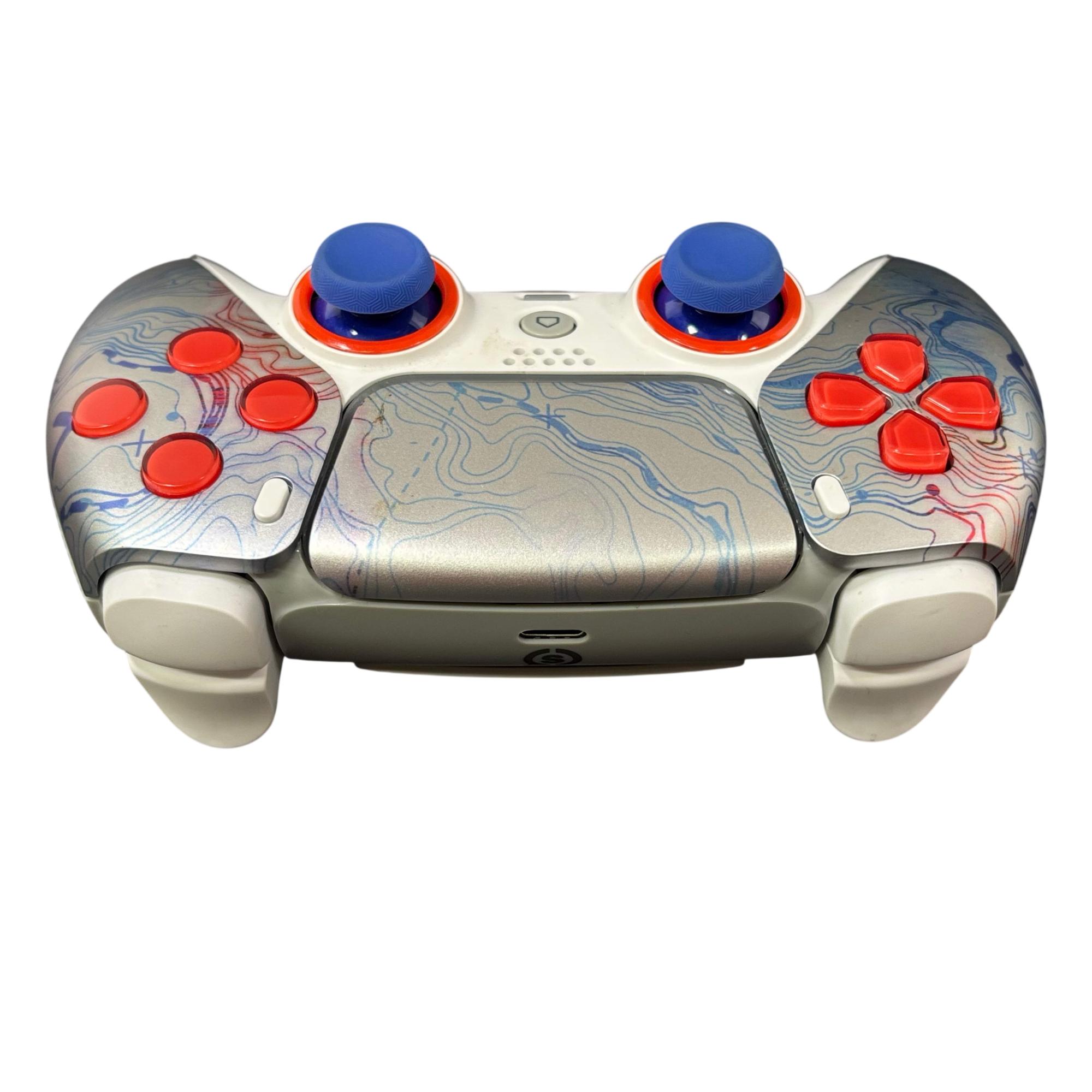 SCUF Reflex Pro CFI-ZCT1WA Custom PS5 Wireless Controller features a sleek white design accented by red and blue buttons for enhanced gameplay precision. Engineered for competitive gaming, this wireless controller includes customizable components and ergonomic grips to improve comfort during extended play sessions. Its robust build and attention to detail make it a reliable choice for serious PS5 players seeking performance and style.