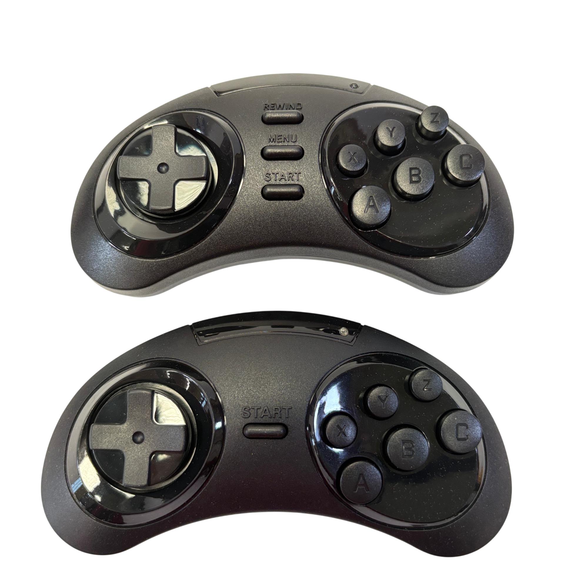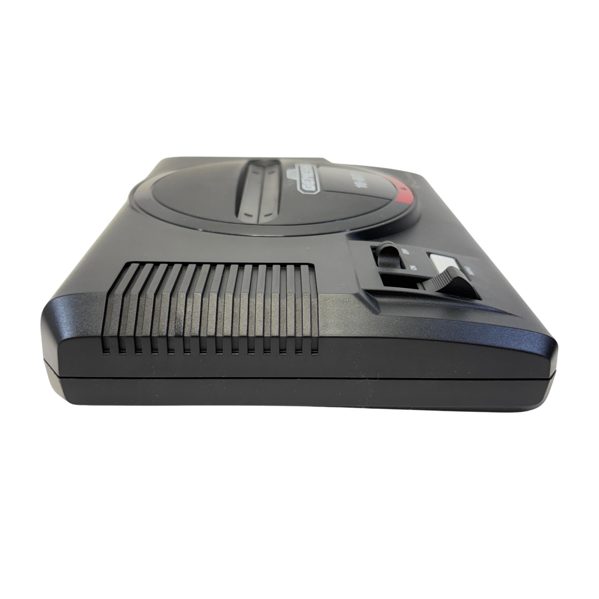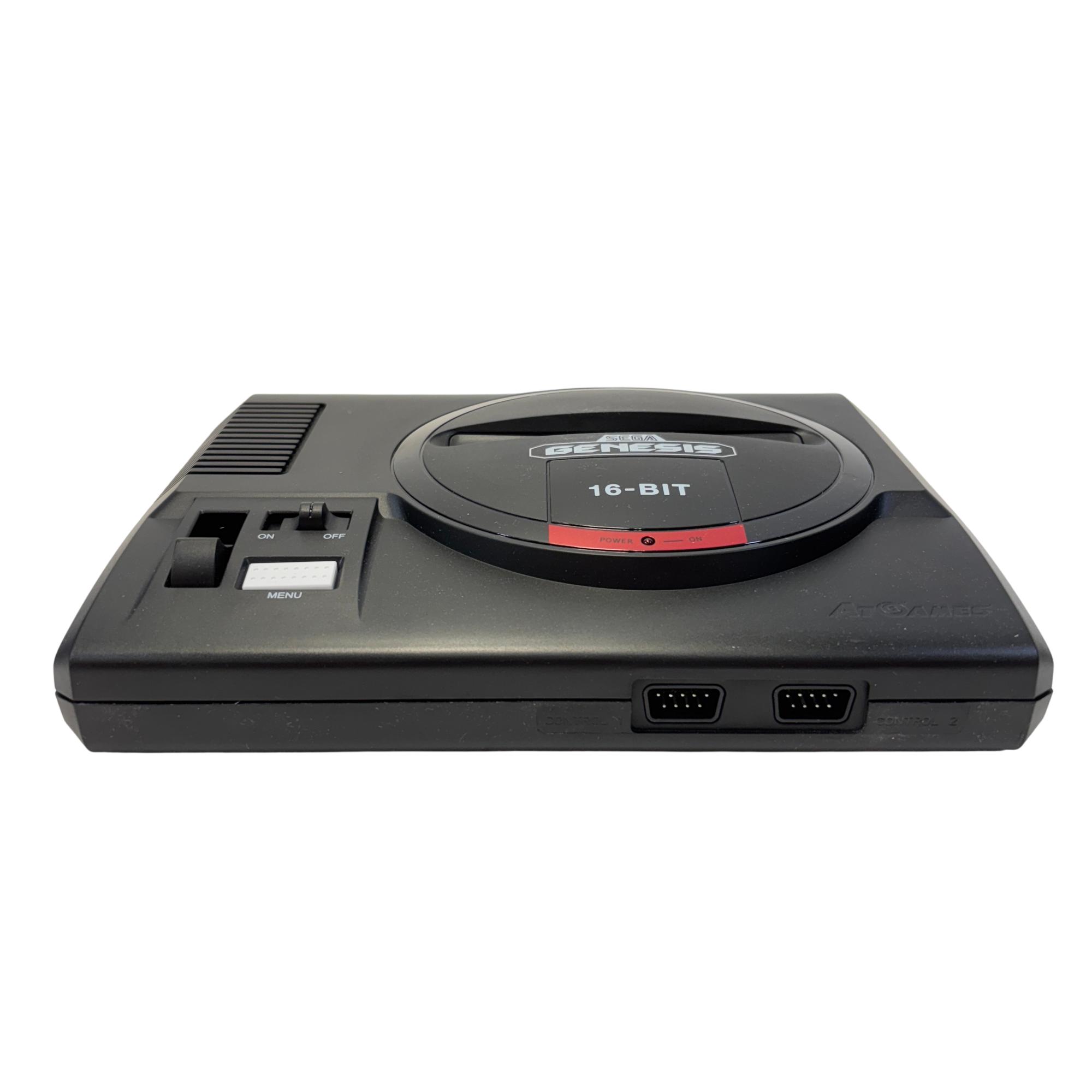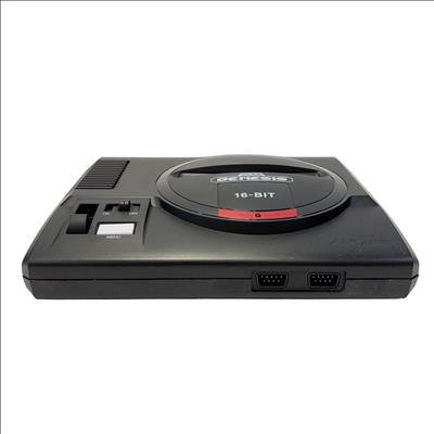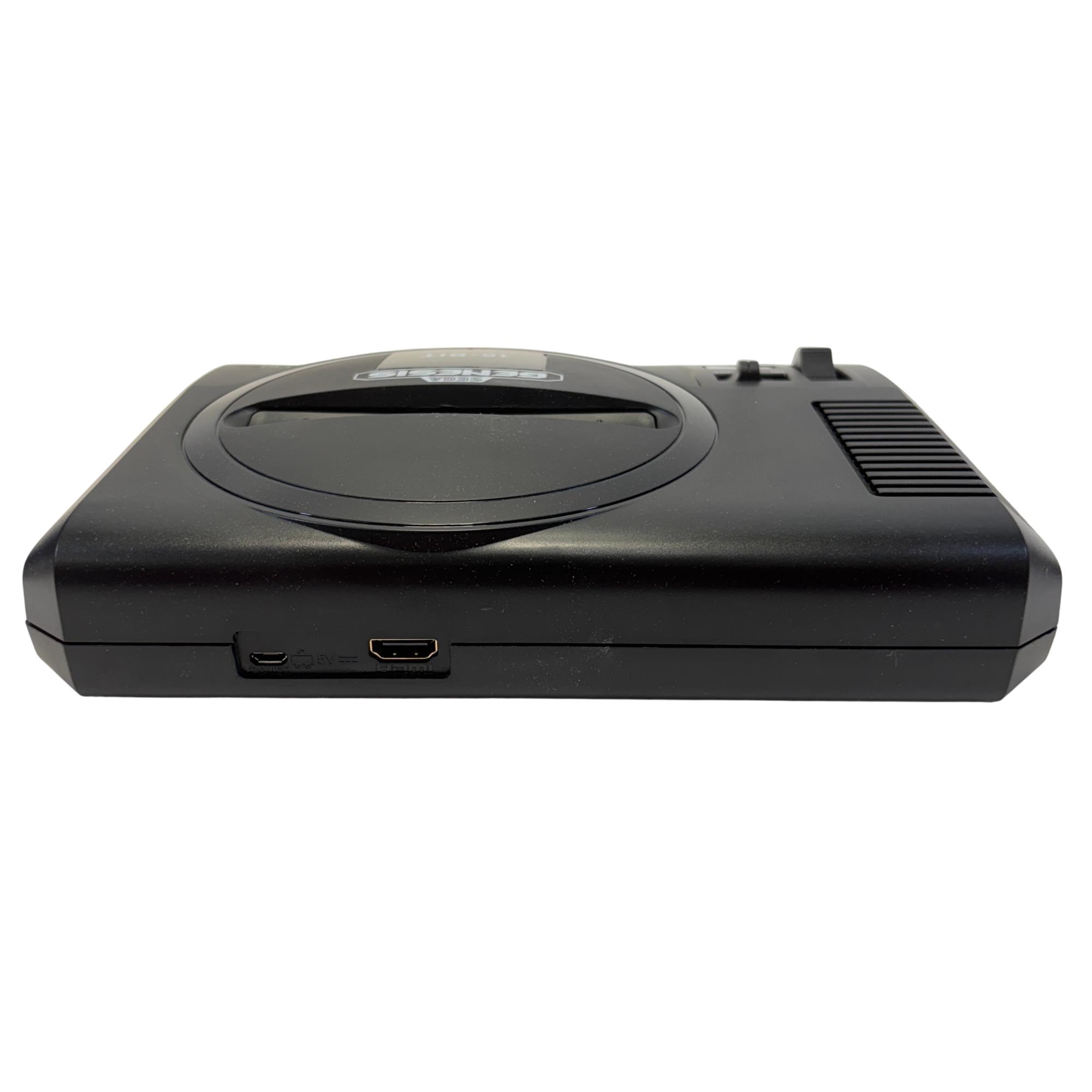 The SEGA Genesis Flashback Console by AtGames offers a classic gaming experience with 85 built-in titles that include both timeless classics and new hit games. This black rectangular video game console features HDMI output, providing high-definition gameplay, and comes with controllers designed for comfortable and precise control. Its 16-bit design faithfully replicates the original SEGA Genesis system, making it ideal for retro gaming enthusiasts.