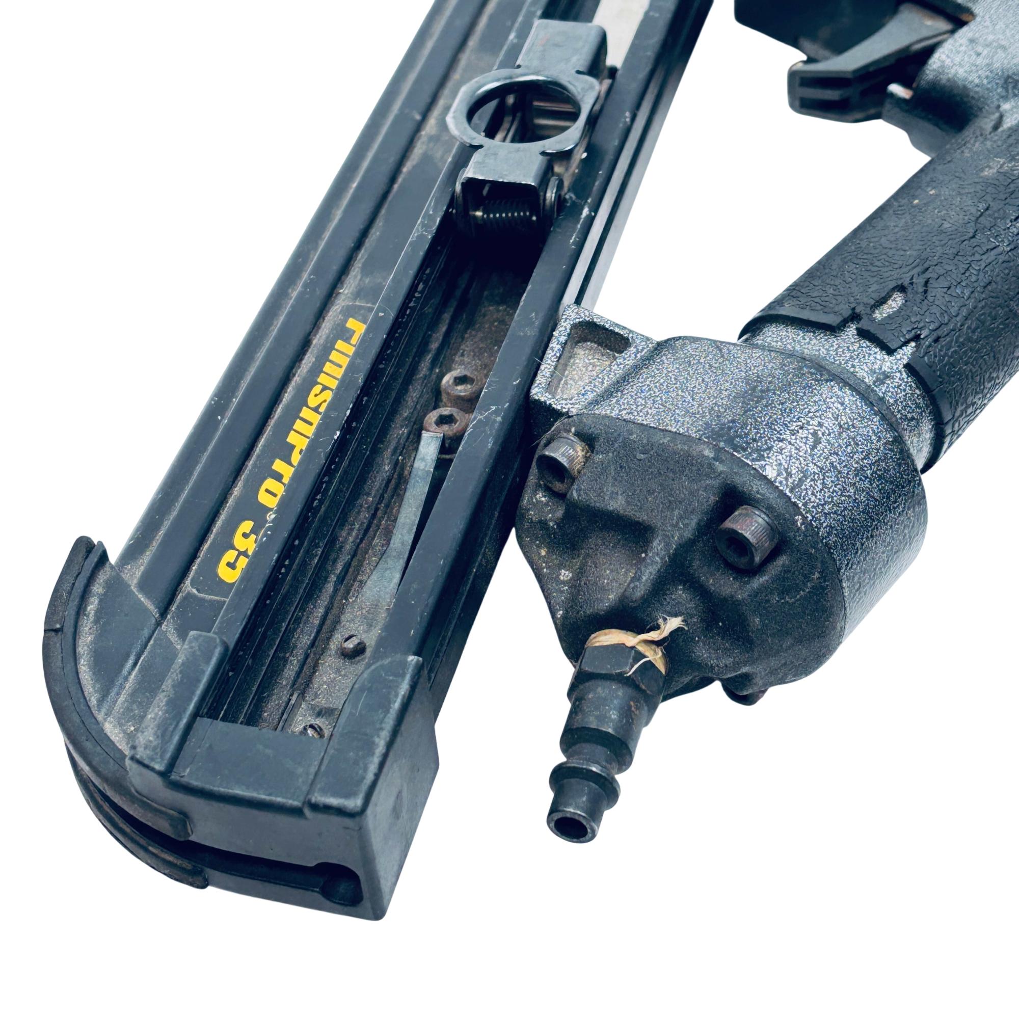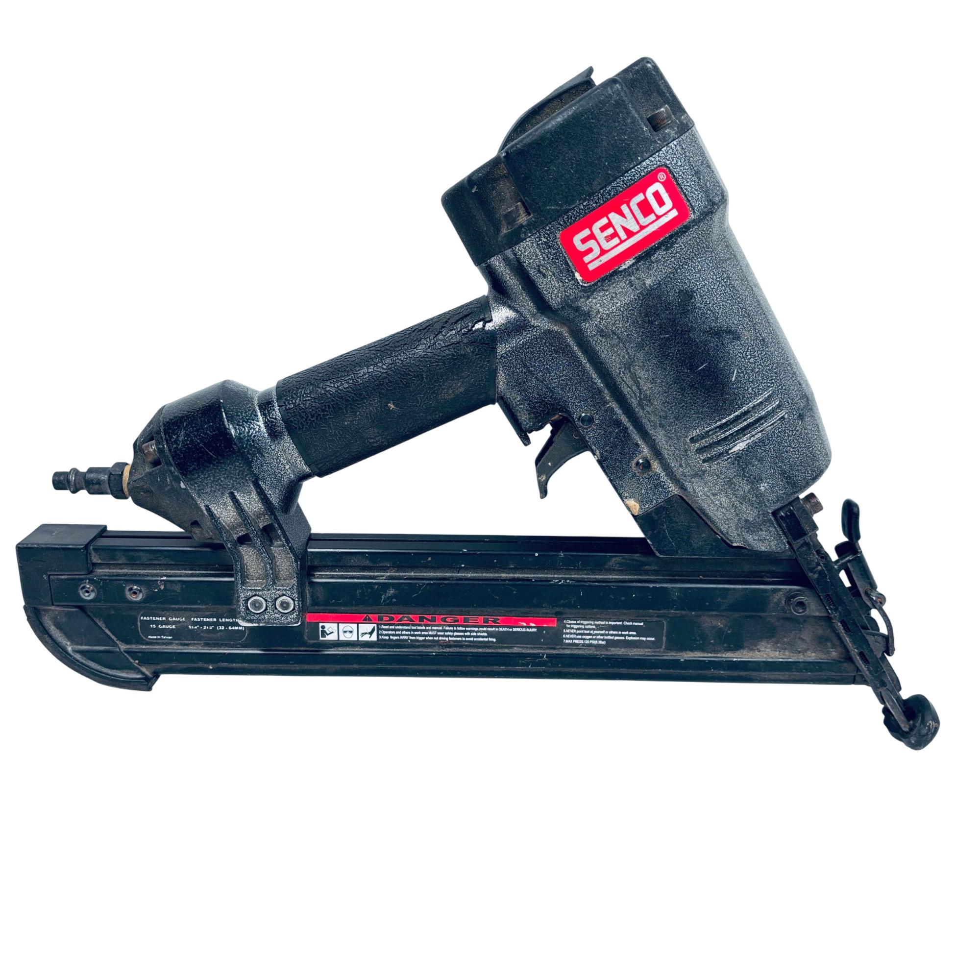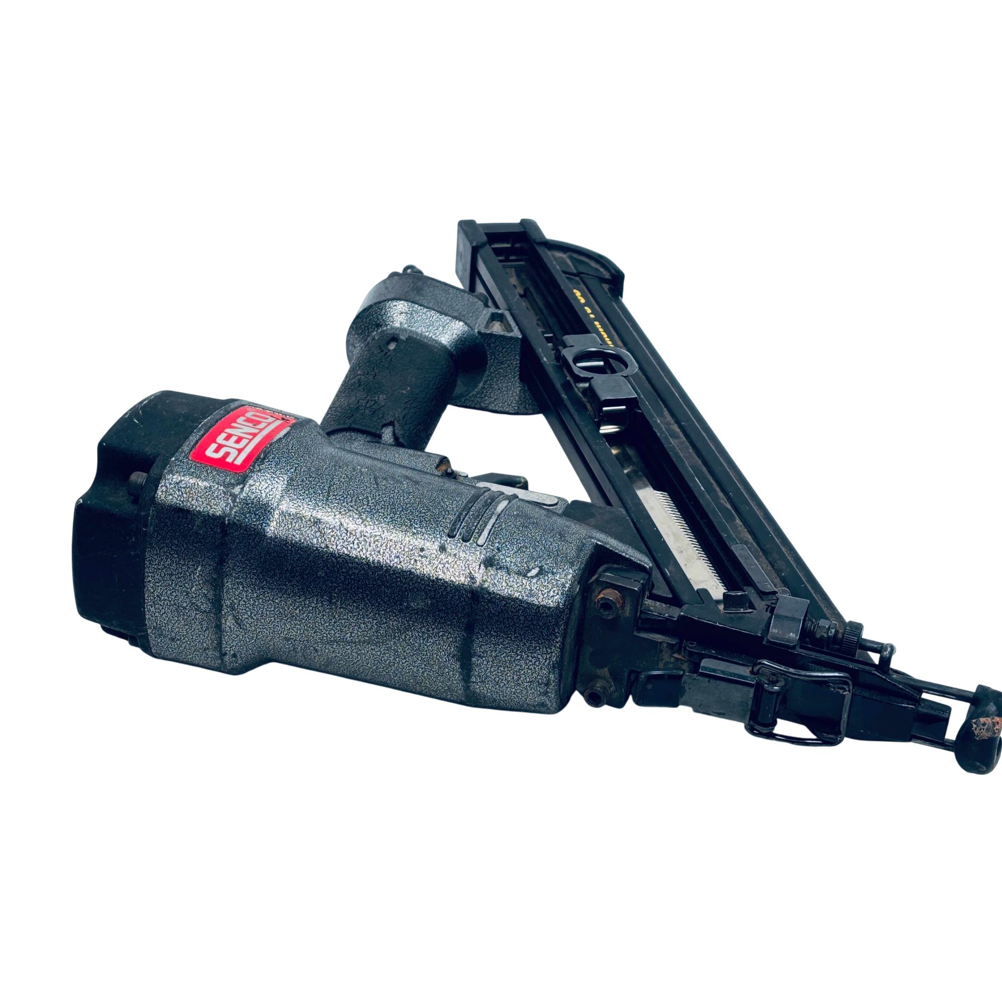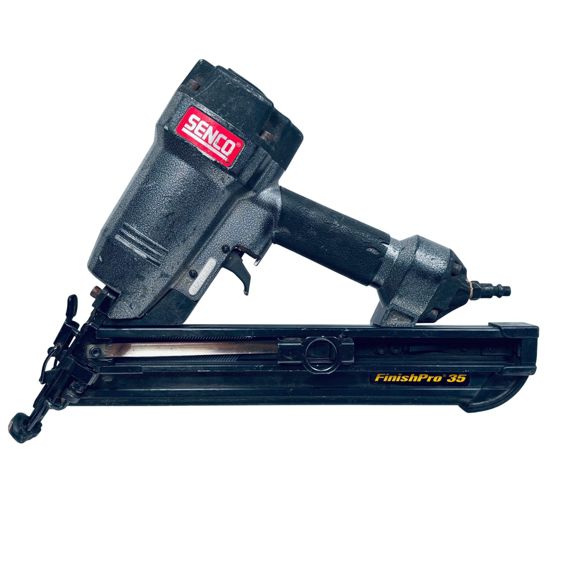 SENCO FinishPro 35 Pneumatic 15-Gauge Angled Finish Nailer is designed for precise finish and trim applications, accommodating fastener lengths from 1-1/4 to 2-1/2 inches. This durable nailer features an angled magazine for improved access in tight spaces and is engineered for consistent, powerful performance on various woodworking projects.