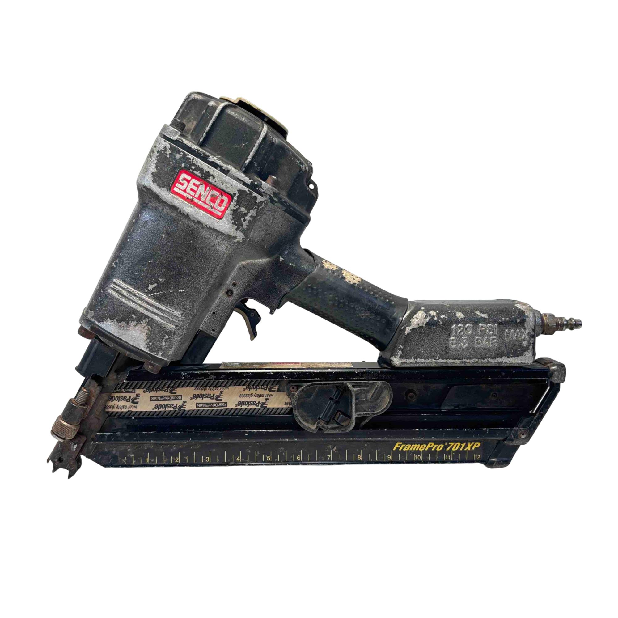 The SENCO FramePro 701XP is a durable and reliable pneumatic framing nailer designed for professional construction work. Built to handle high-volume nailing with precision and speed, this tool features a rugged metal construction and ergonomic grip for extended use. Ideal for framing, sheathing, and decking, this tool ensures efficiency and consistent performance on any job site.