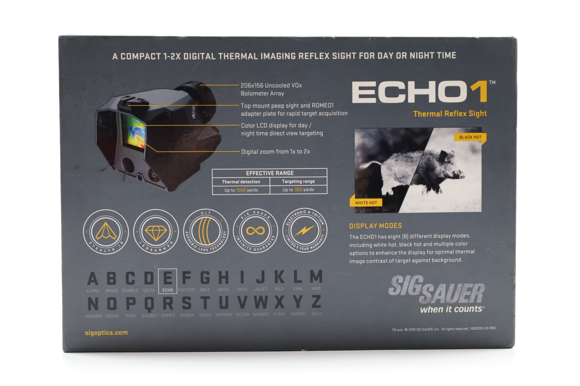 Offers advanced thermal imaging capability for tactical advantage in various conditions, day or night. This kit includes the Echo1 thermal sight, a protective scope coat, a Romeo1 adapter plate for versatility, a USB cable for connectivity, and mounting tools for easy installation. Designed for attachment to firearms with Picatinny/Weaver style mounts, this sight enables the detection of thermal profiles through obstacles like fog, smoke, and foliage using an uncooled VOx microbolometer sensor with a resolution of 206x156 pixels and a refresh rate of up to 30 Hz. It features 1-2x magnification with digital zoom, five customizable digital reticle patterns for preference accommodation, and a built-in color LCD display with a resolution of 220x176, offering multiple viewing palettes for enhanced visibility. The device is equipped for image and star-burst capture, supports connection via a 5-Pin-to-USB port, and is housed in a lightweight, durable magnesium body that is water-resistant (IPX6 rated), ensuring reliable performance in most environmental conditions.