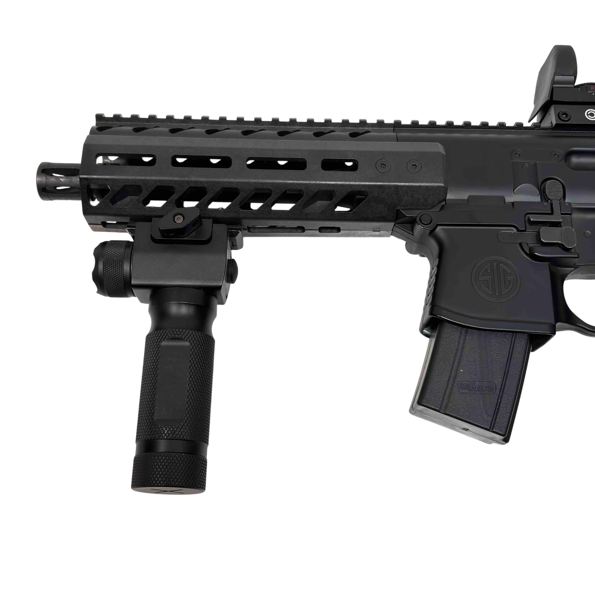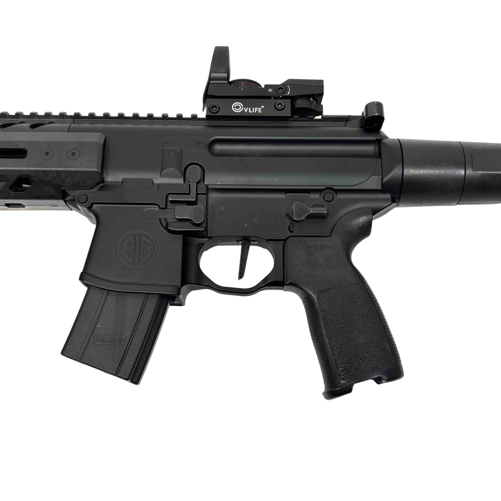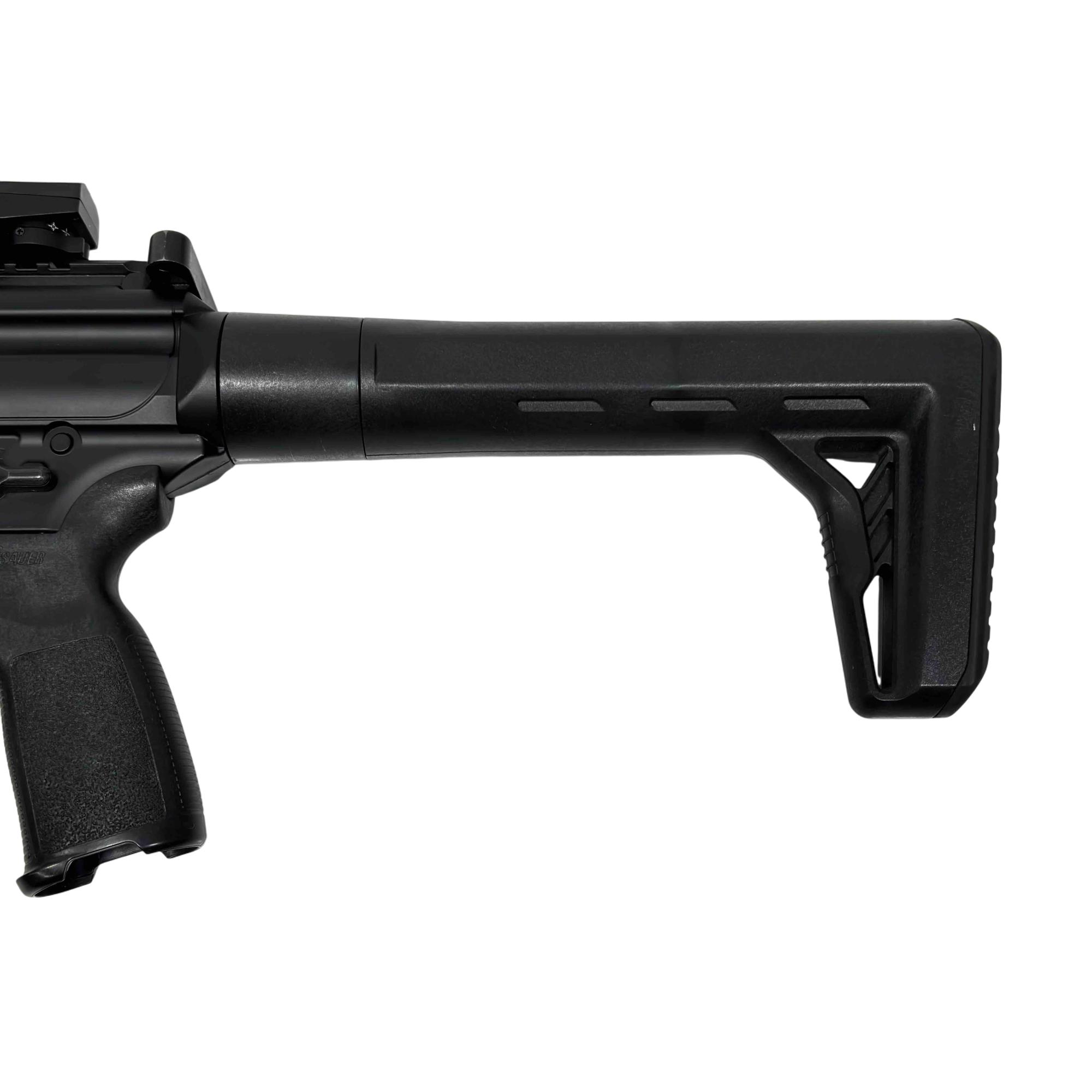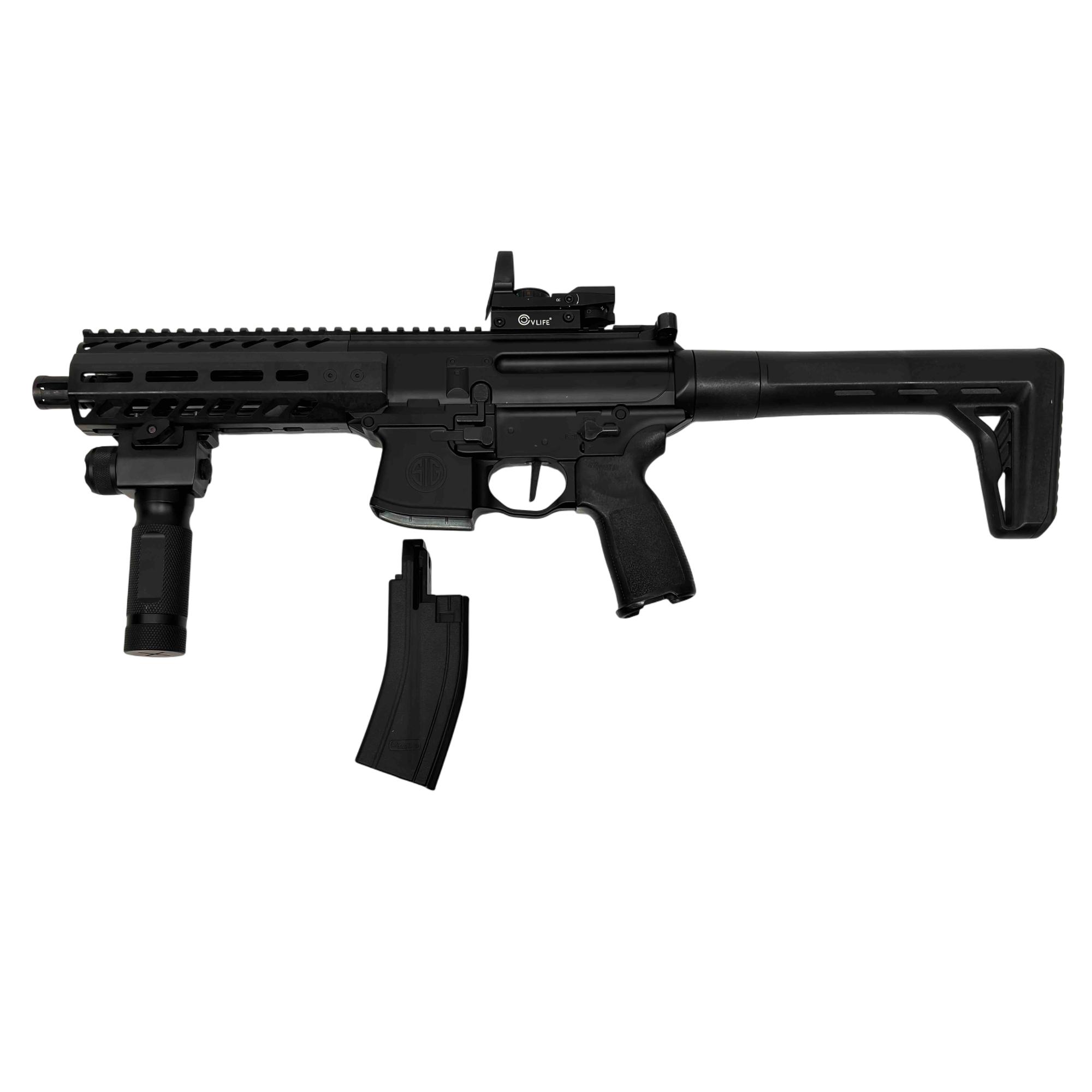 Experience the realism and performance of the SIG Sauer MPX ASP, a CO2-powered semi-automatic air rifle designed for enthusiasts and training. With authentic SIG branding, a metal frame, and .177 caliber (4.5mm) pellet compatibility, this airgun delivers both style and accuracy. Perfect for target shooting and practice, enjoy the reliability and feel of the iconic MPX platform without the cost of live ammunition.
