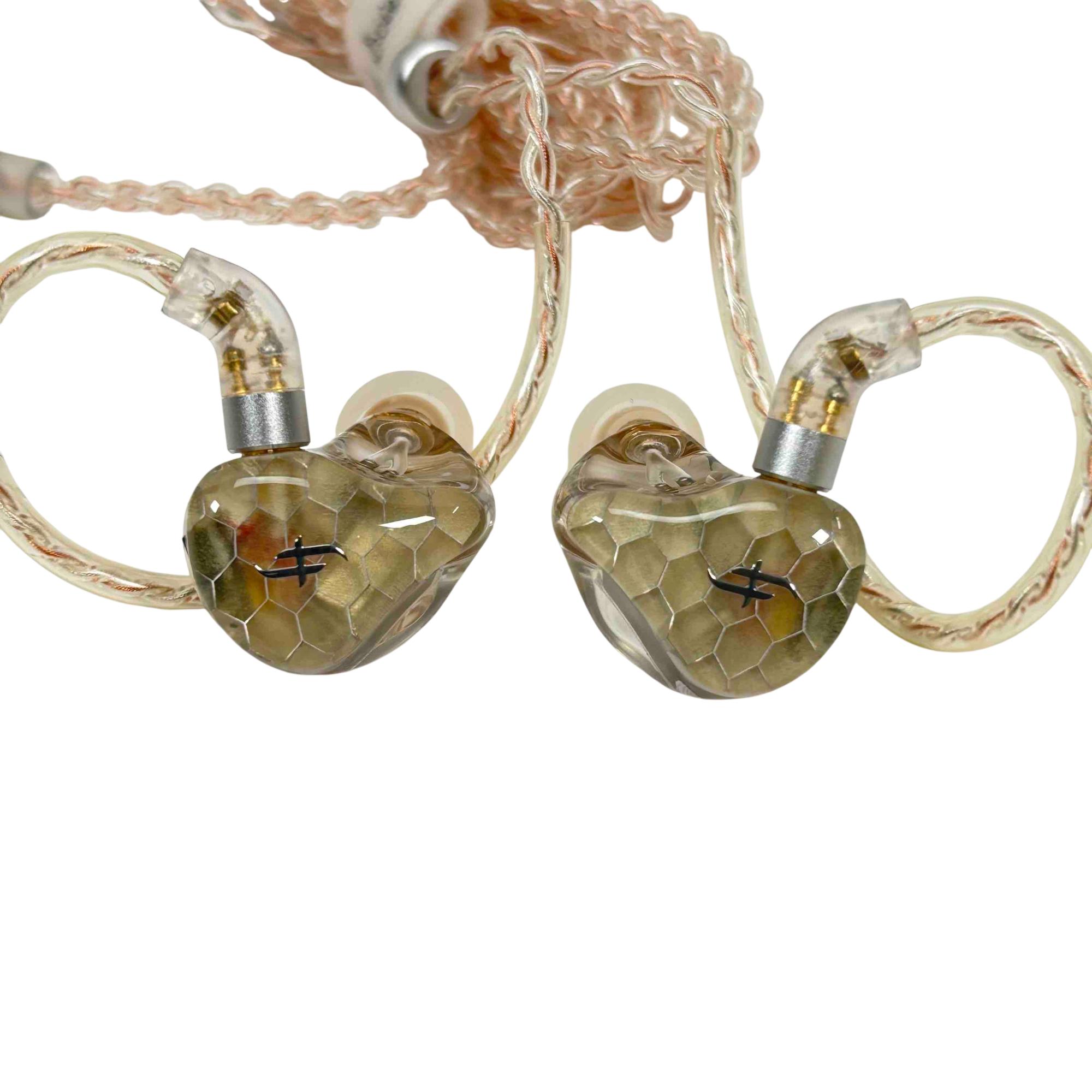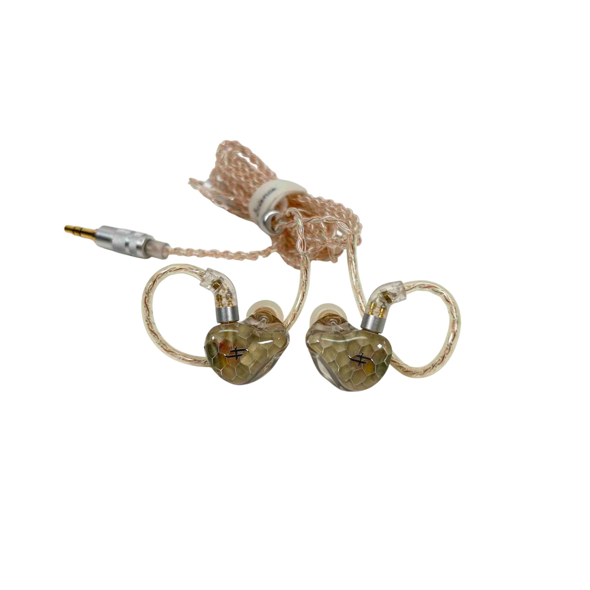 Experience high-fidelity sound with the SIMGOT ET3 In-Ear Monitors, designed for audiophiles and musicians alike. Featuring a stylish, honeycomb-patterned resin housing and professional-grade detachable braided cable, these IEMs deliver crystal clear audio and robust bass. The package includes a premium brown leather carrying case for safe storage and portability.