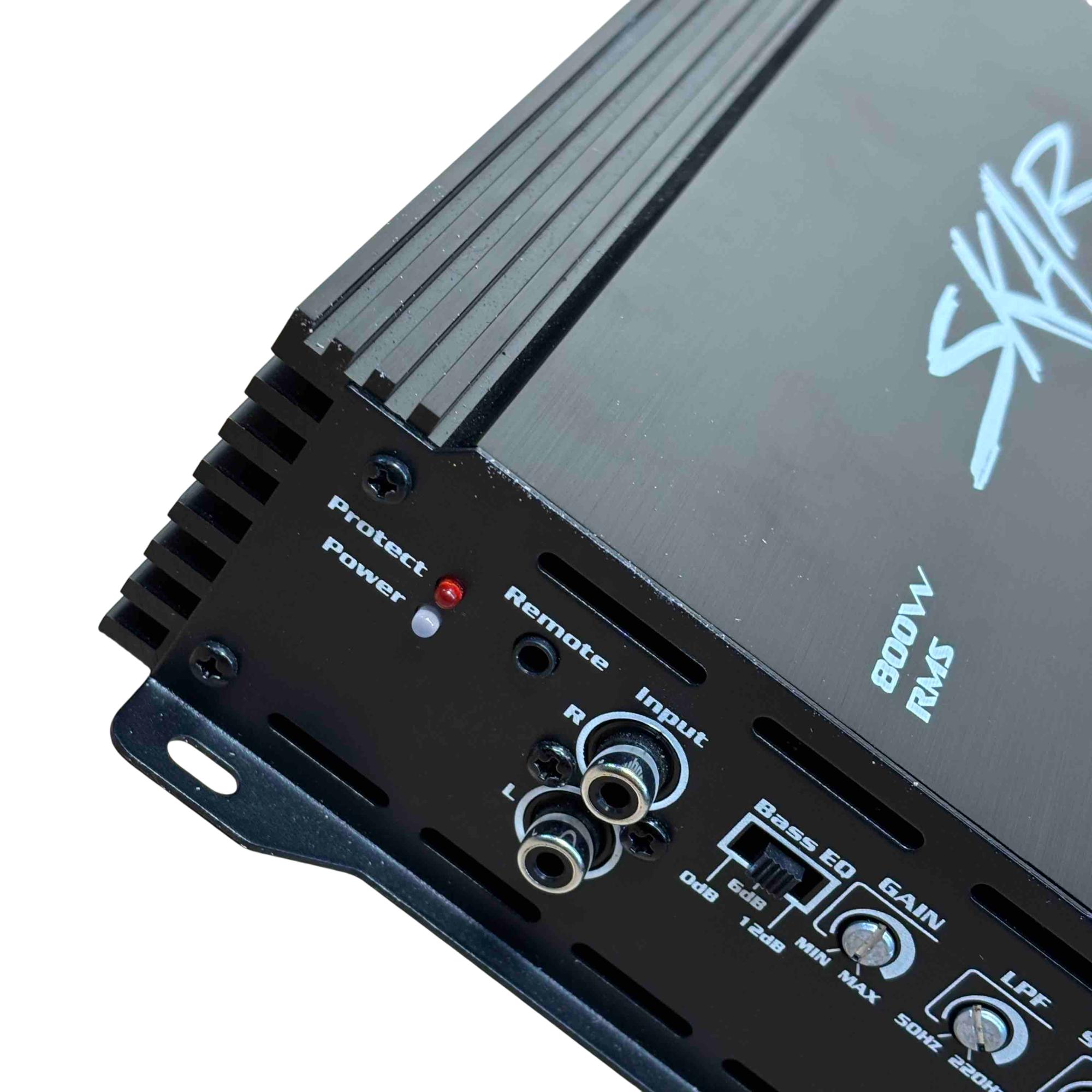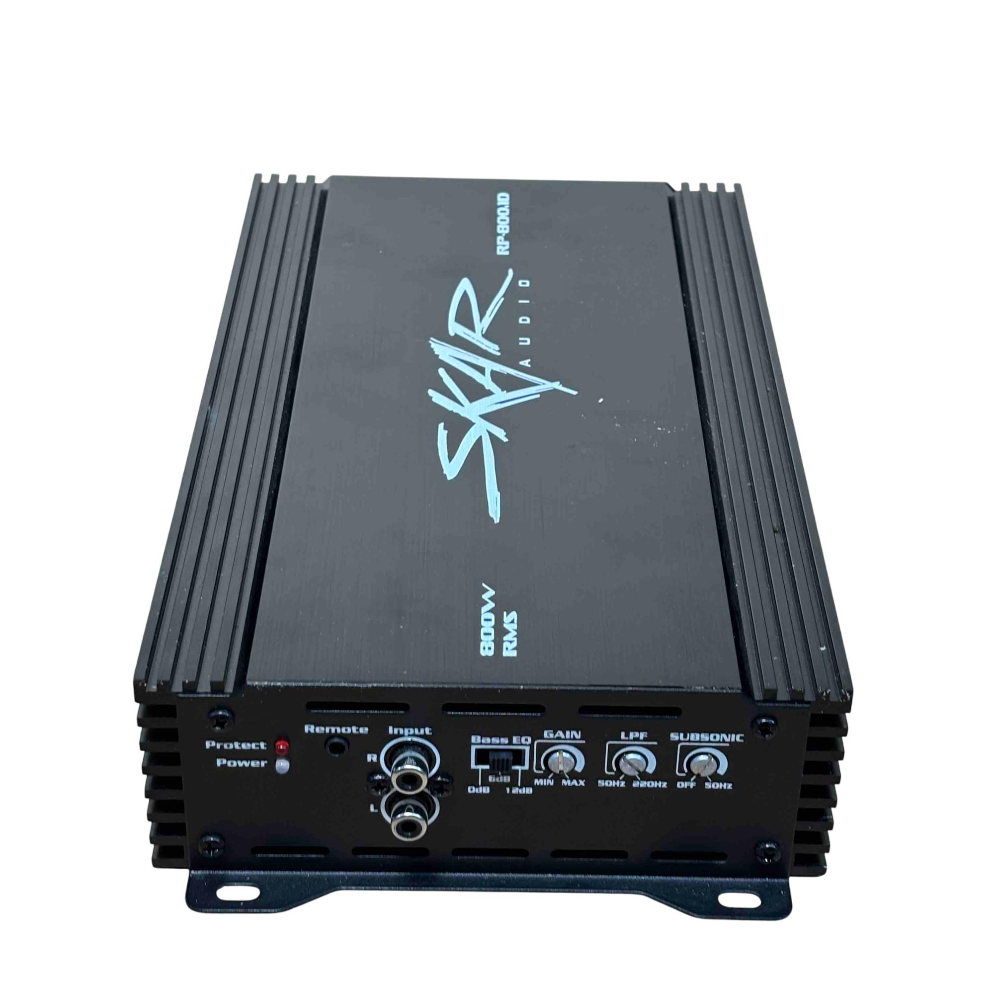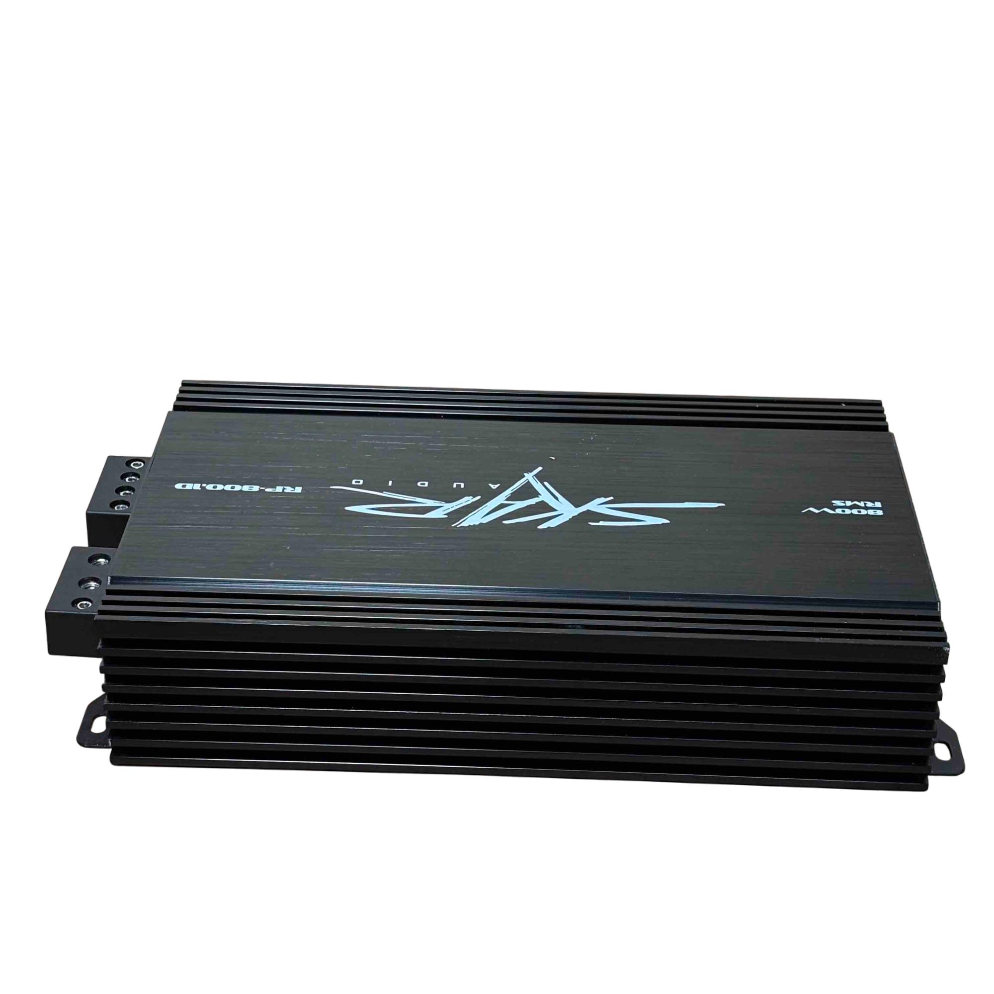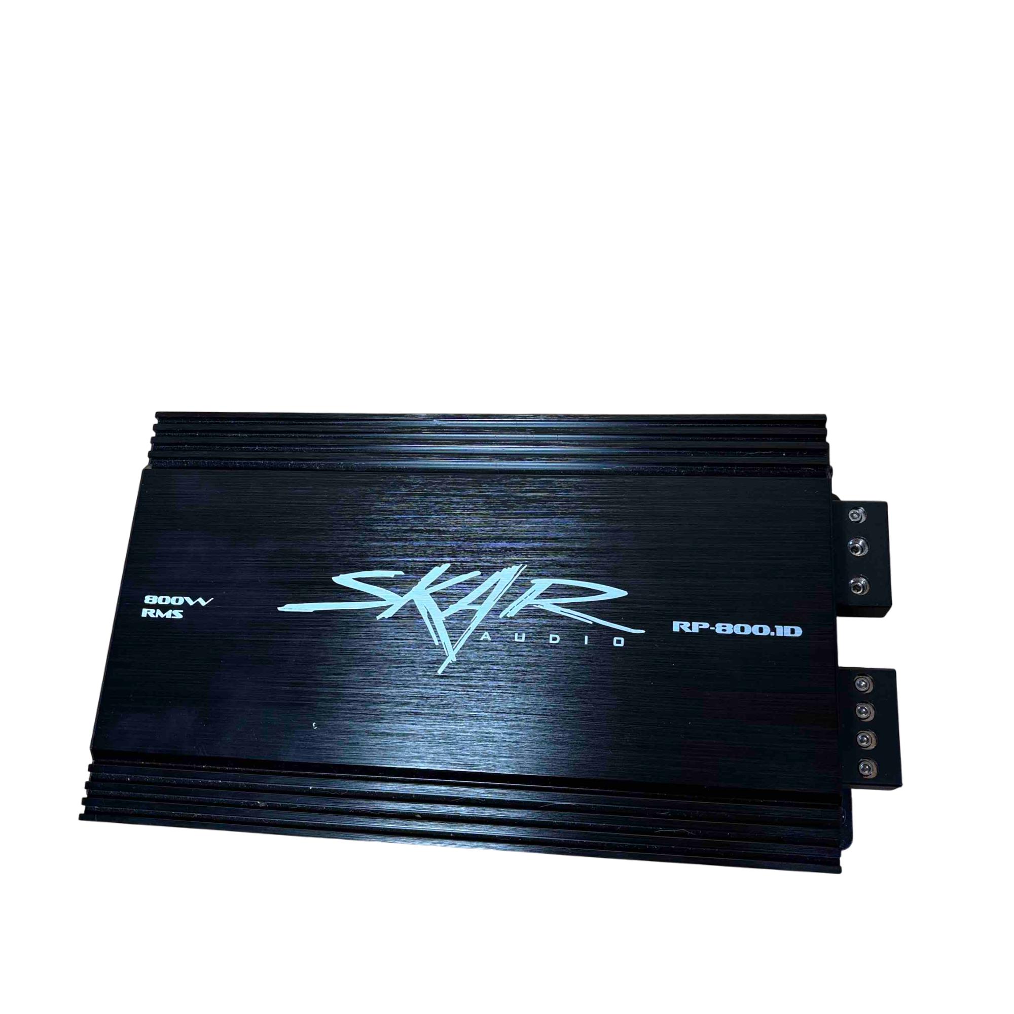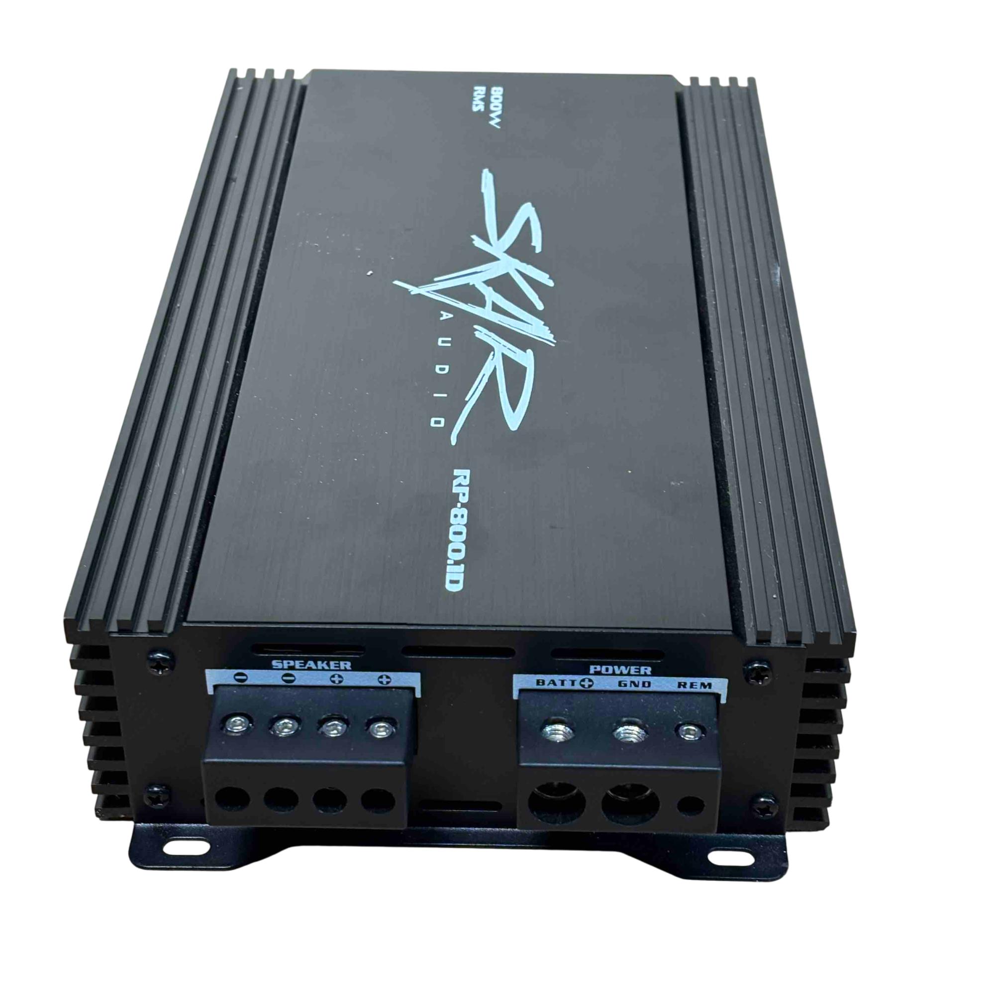Skar Audio RP-800.1D 800W RMS Class D Monoblock Car Amplifier delivers powerful 800 watts RMS output with efficient Class D amplification, ideal for driving subwoofers in car audio systems. This sleek black monoblock design features advanced audio technology for clear, deep bass and high performance in a compact, durable chassis.