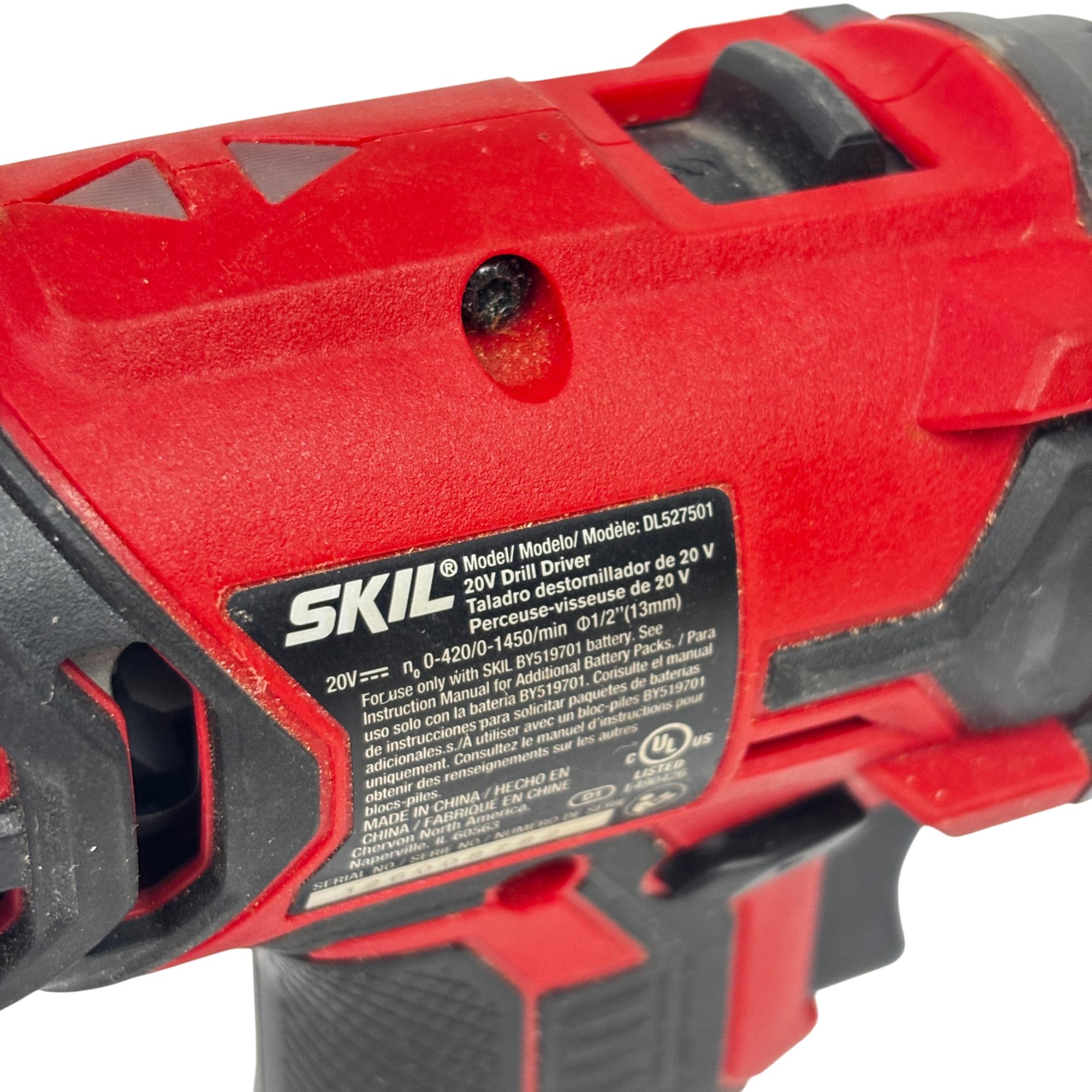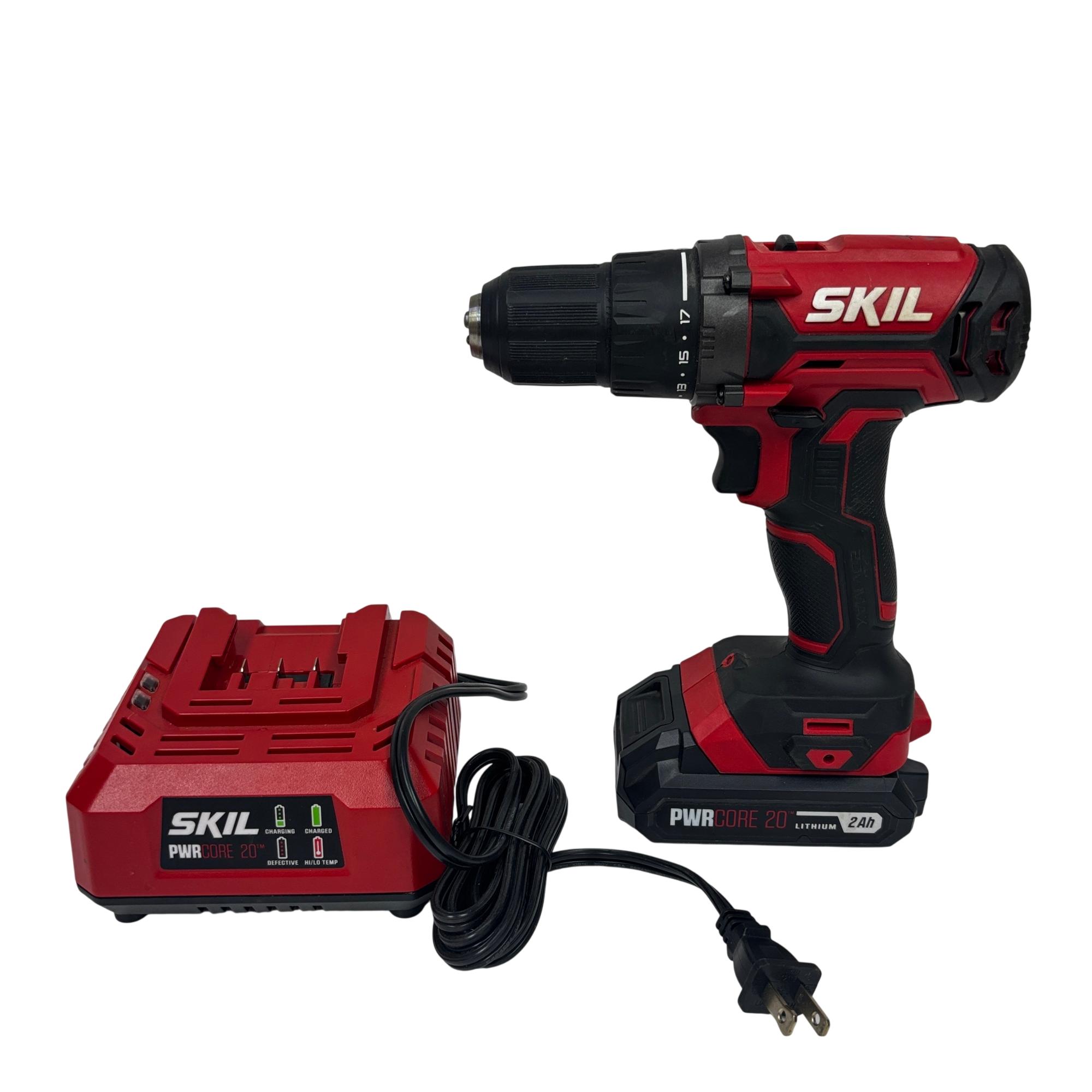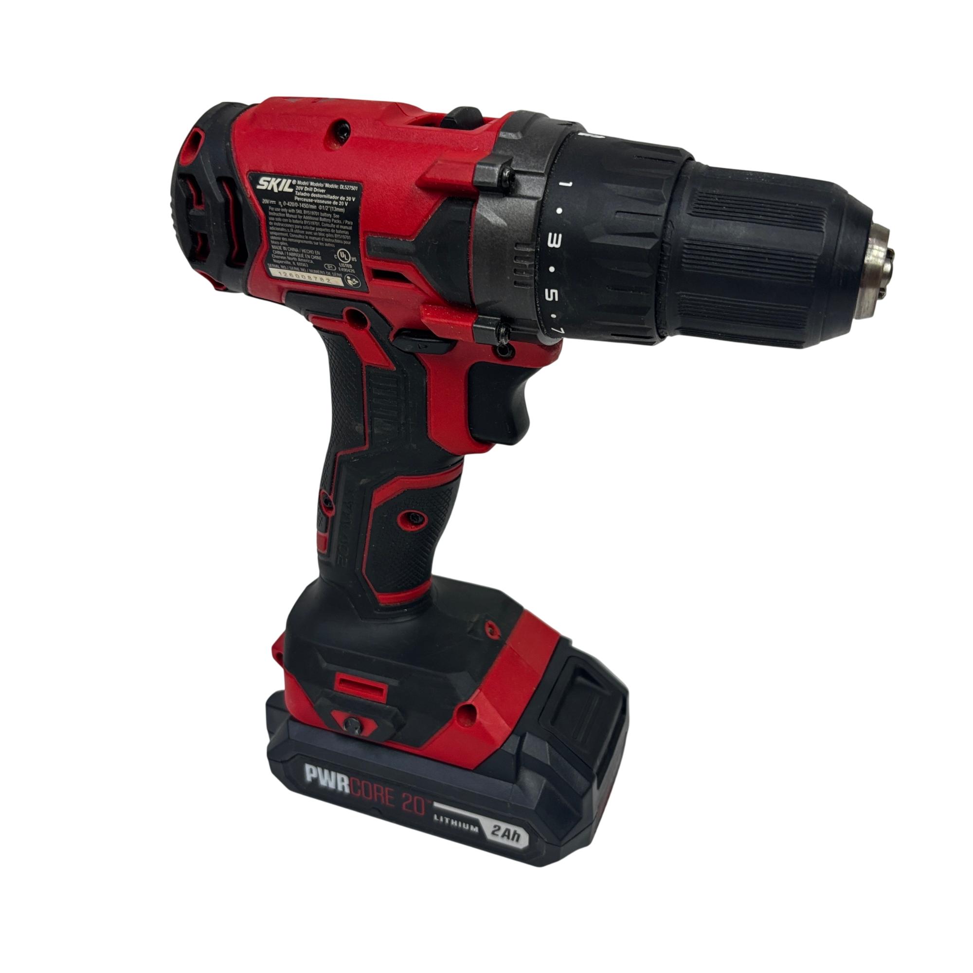 This SKIL PWRCORE 20V Lithium 1/2" Drill Driver Kit, model DL527501, delivers powerful and compact performance ideal for various drilling and driving applications. Featuring variable speed settings up to 0-1450 RPM and a 1/2-inch (13mm) keyless chuck, this cordless drill driver is designed for precision and ease of use in both professional and DIY projects.