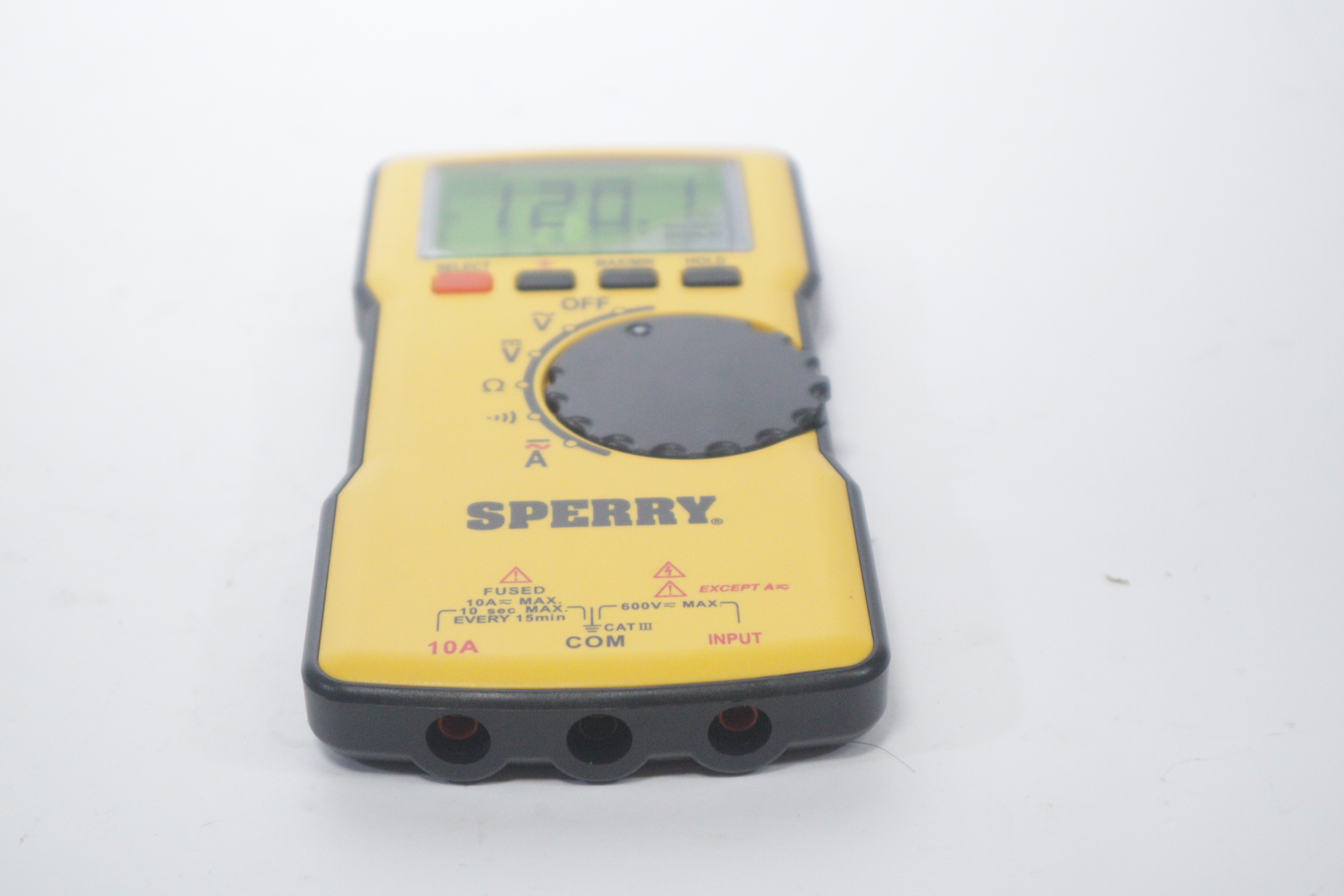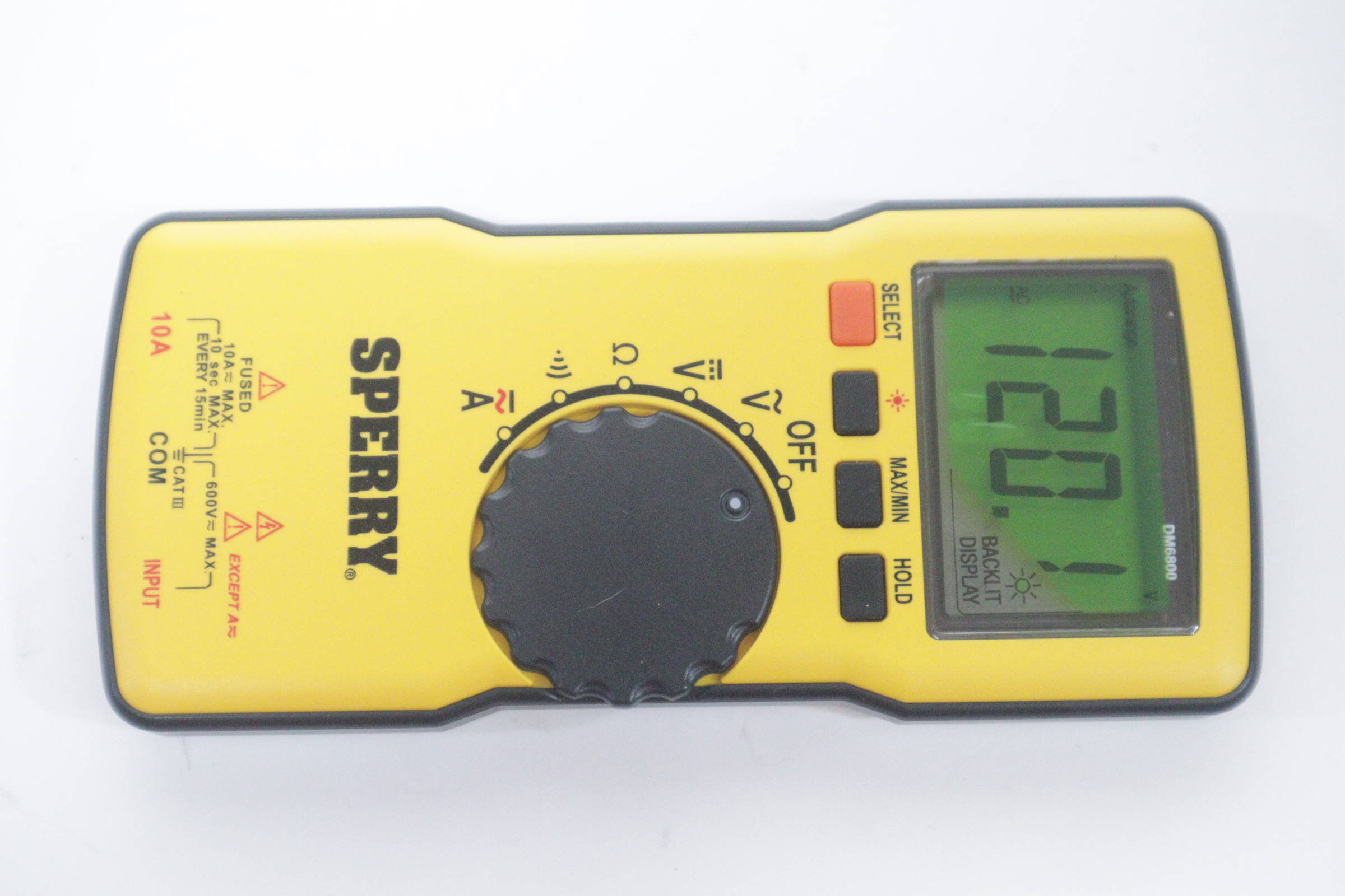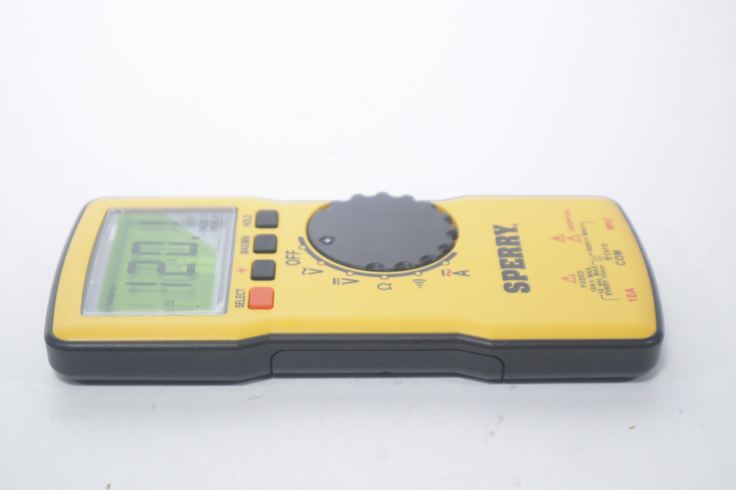 Engineered to exceed the expectations of the professional electrician the Sperry Instruments DM6800 Thin Digital Multimeter offers a durable and ergonomic impact resistant design manufactured to the latest industry standards. At less than 3/4 inch thick, this is the thinnest full-sized multimeter yet. Engineered with the ability to test AC/DC voltage, amperage, resistance, and continuity. Featuring improved audible and visual indicators, and a backlit display. Requires 2 AAA batteries included in the package and designed with both an auto-off function to save battery life and a low battery indicator to ensure the user does not receive incorrect readings due to a low battery. Unit utilizes auto ranging capabilities that allow the meter to determine the resolution based on the application selected without requiring manual range changes. Capable of testing 600V AC/DC, this unit also measures AC/DC amps (10A), resistance (200, 2k, 20k, 200k, 2M, 20M Ohm) and continuity (audible).