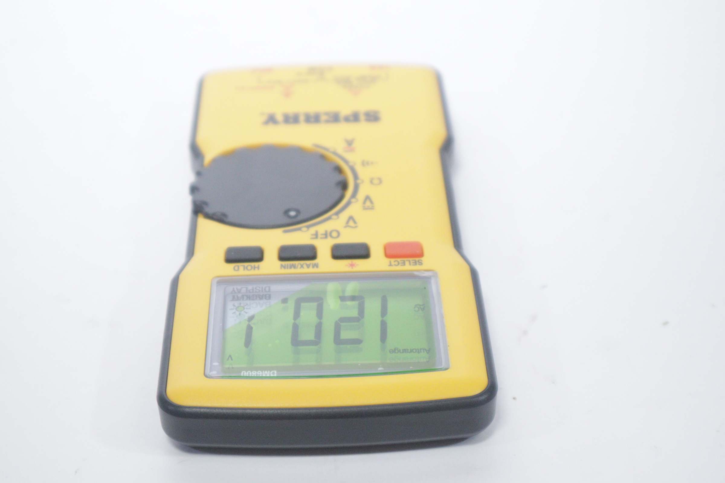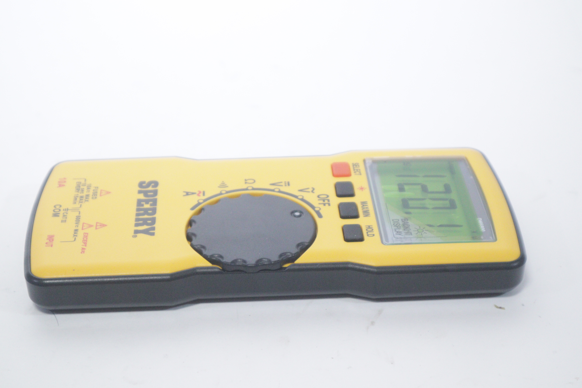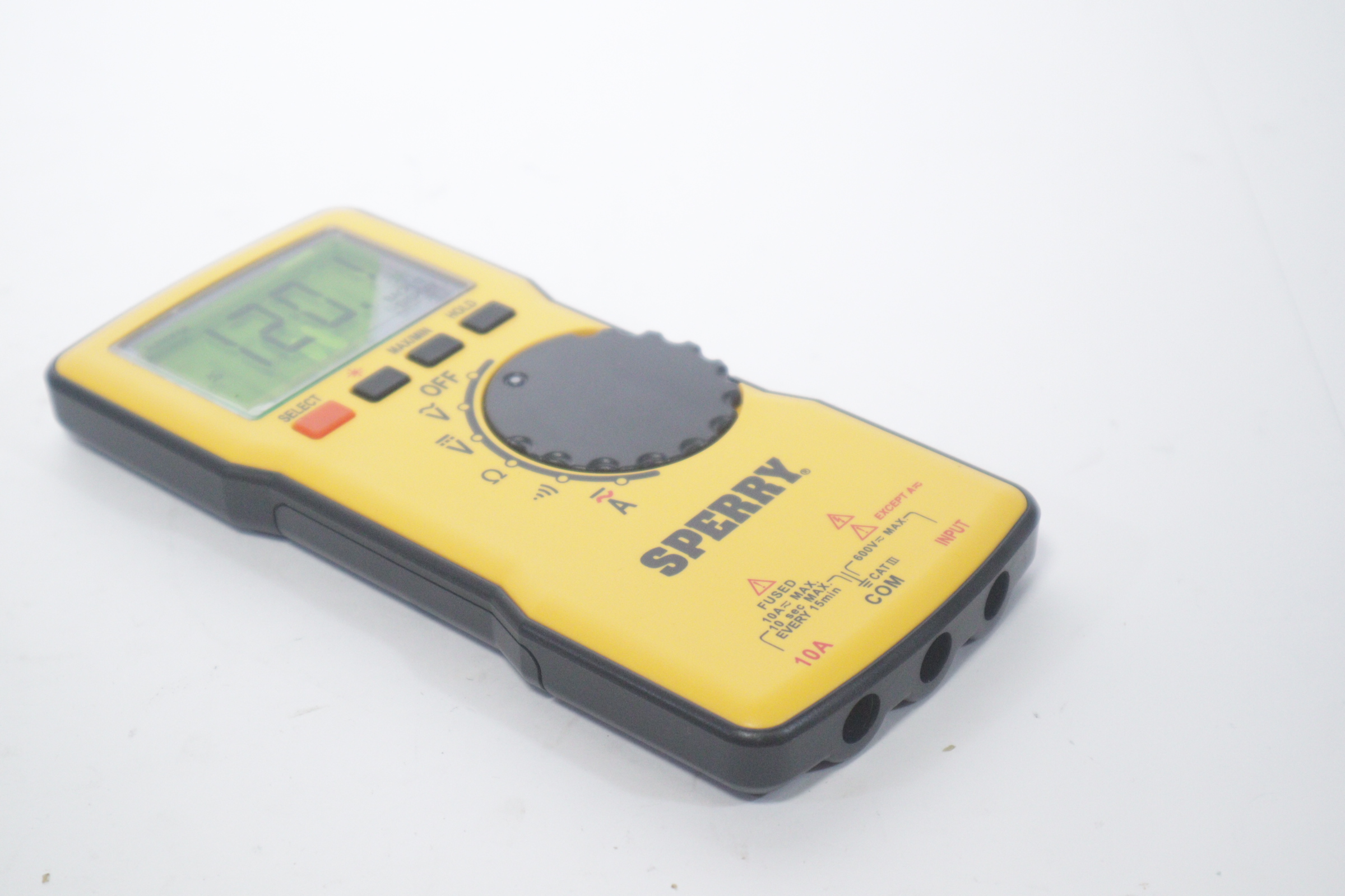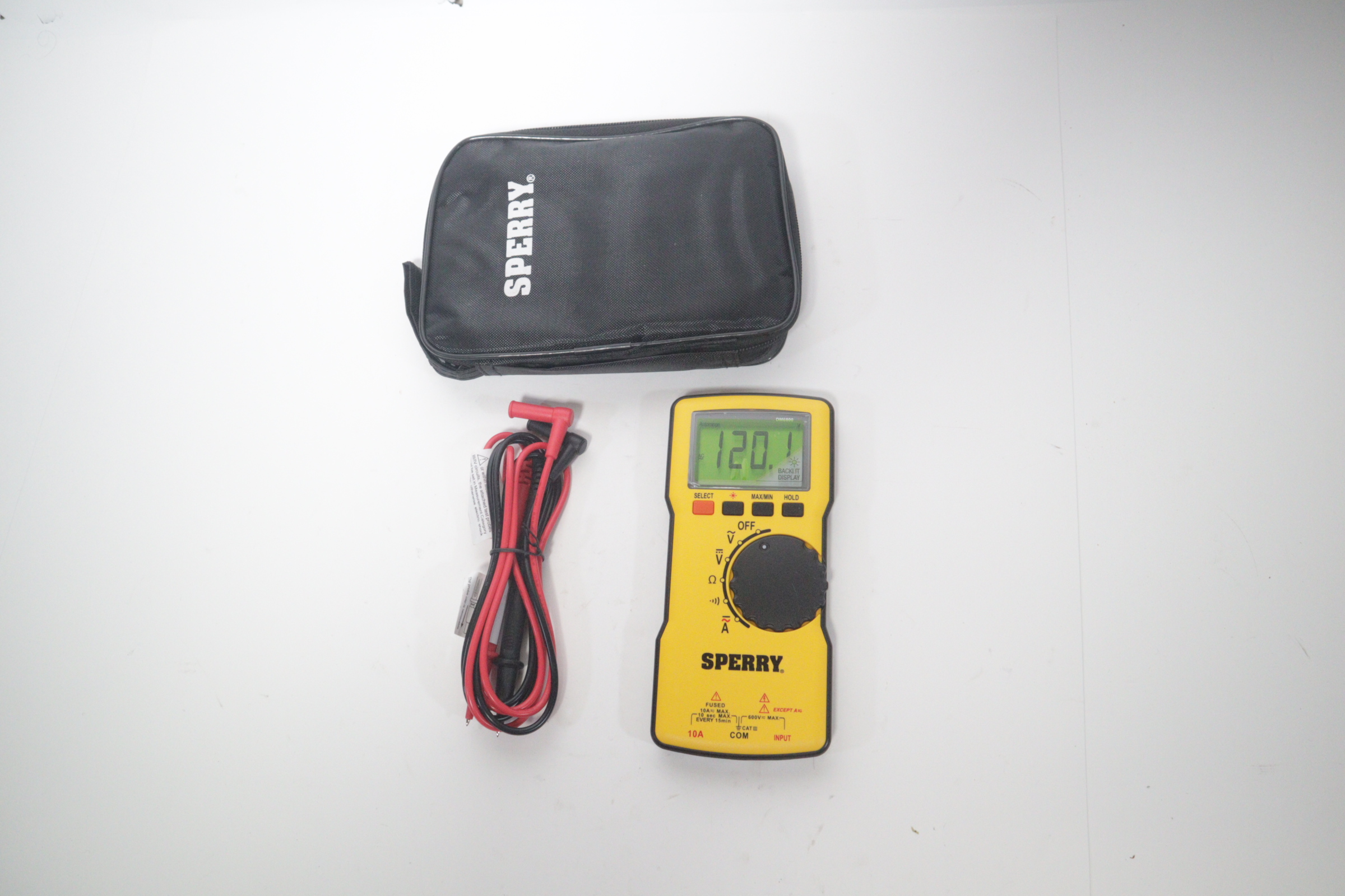 Engineered to exceed the expectations of the professional electrician the Sperry Instruments DM6800 Thin Digital Multimeter offers a durable and ergonomic impact resistant design manufactured to the latest industry standards. At less than 3/4 inch thick, this is the thinnest full-sized multimeter yet. Engineered with the ability to test AC/DC voltage, amperage, resistance, and continuity. Featuring improved audible and visual indicators, and a backlit display. Requires 2 AAA batteries included in the package and designed with both an auto-off function to save battery life and a low battery indicator to ensure the user does not receive incorrect readings due to a low battery. Unit utilizes auto ranging capabilities that allow the meter to determine the resolution based on the application selected without requiring manual range changes. Capable of testing 600V AC/DC, this unit also measures AC/DC amps (10A), resistance (200, 2k, 20k, 200k, 2M, 20M Ohm) and continuity (audible).