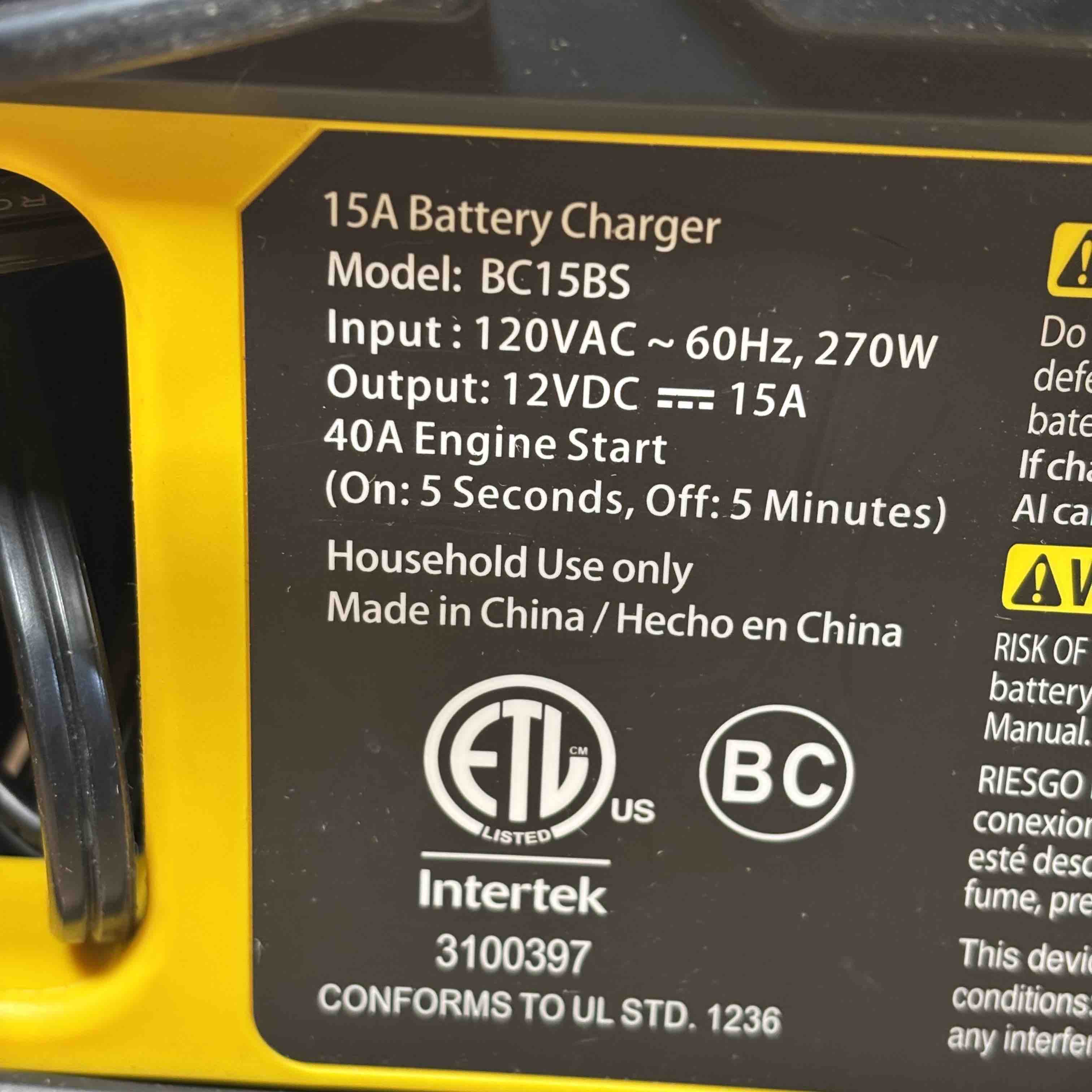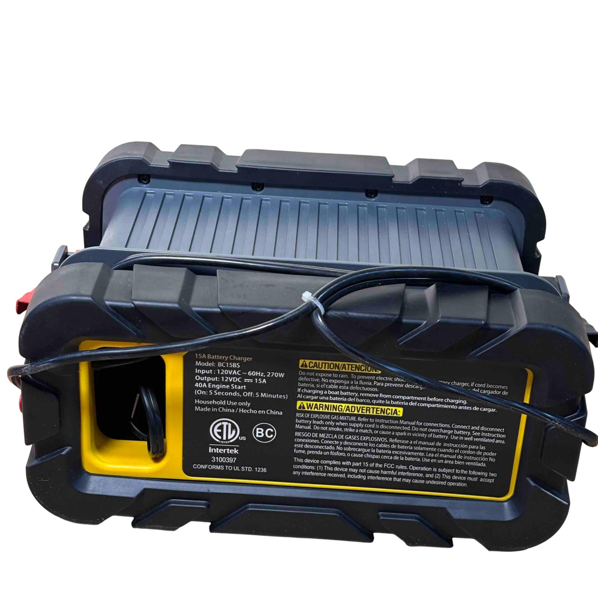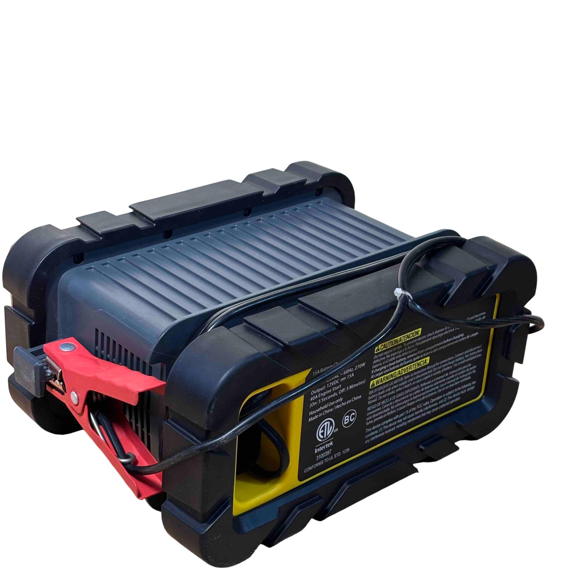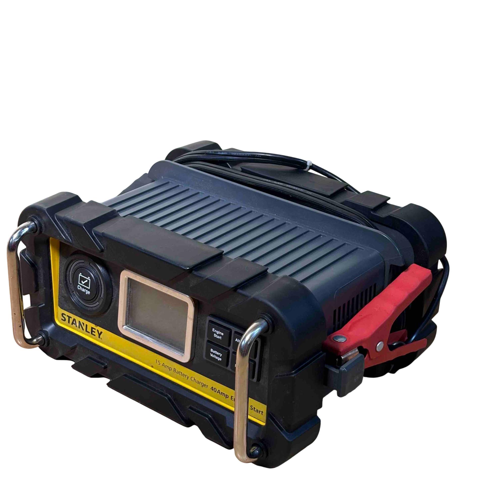 Power up your vehicle quickly and reliably with the Stanley BC15BS battery charger and engine starter. Featuring a 15A battery charging capacity and a 40A engine start function, this heavy-duty, portable charger is perfect for automotive emergencies or regular battery maintenance. The rugged case, digital display, and user-friendly controls ensure safety and durability, making it a must-have tool for any garage.