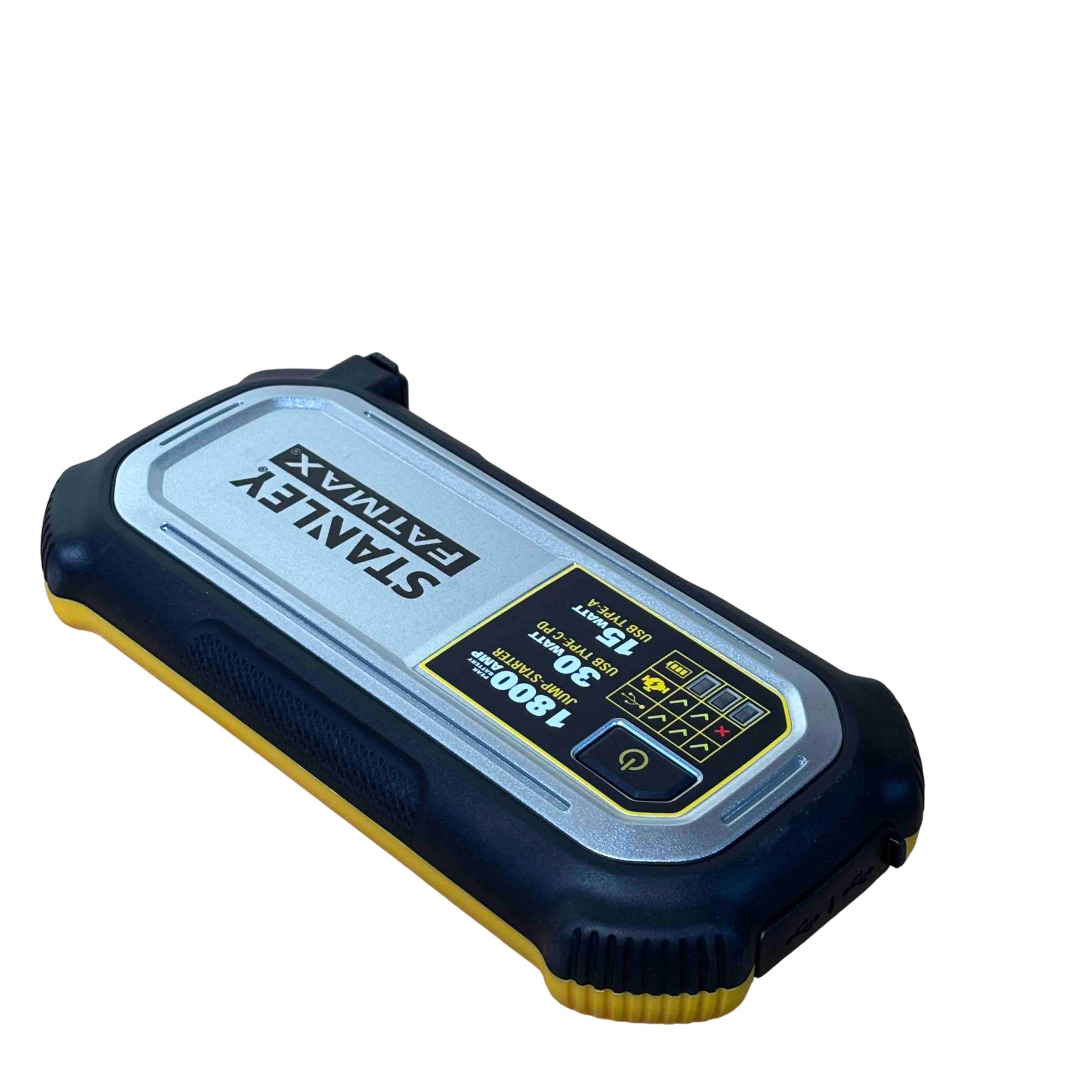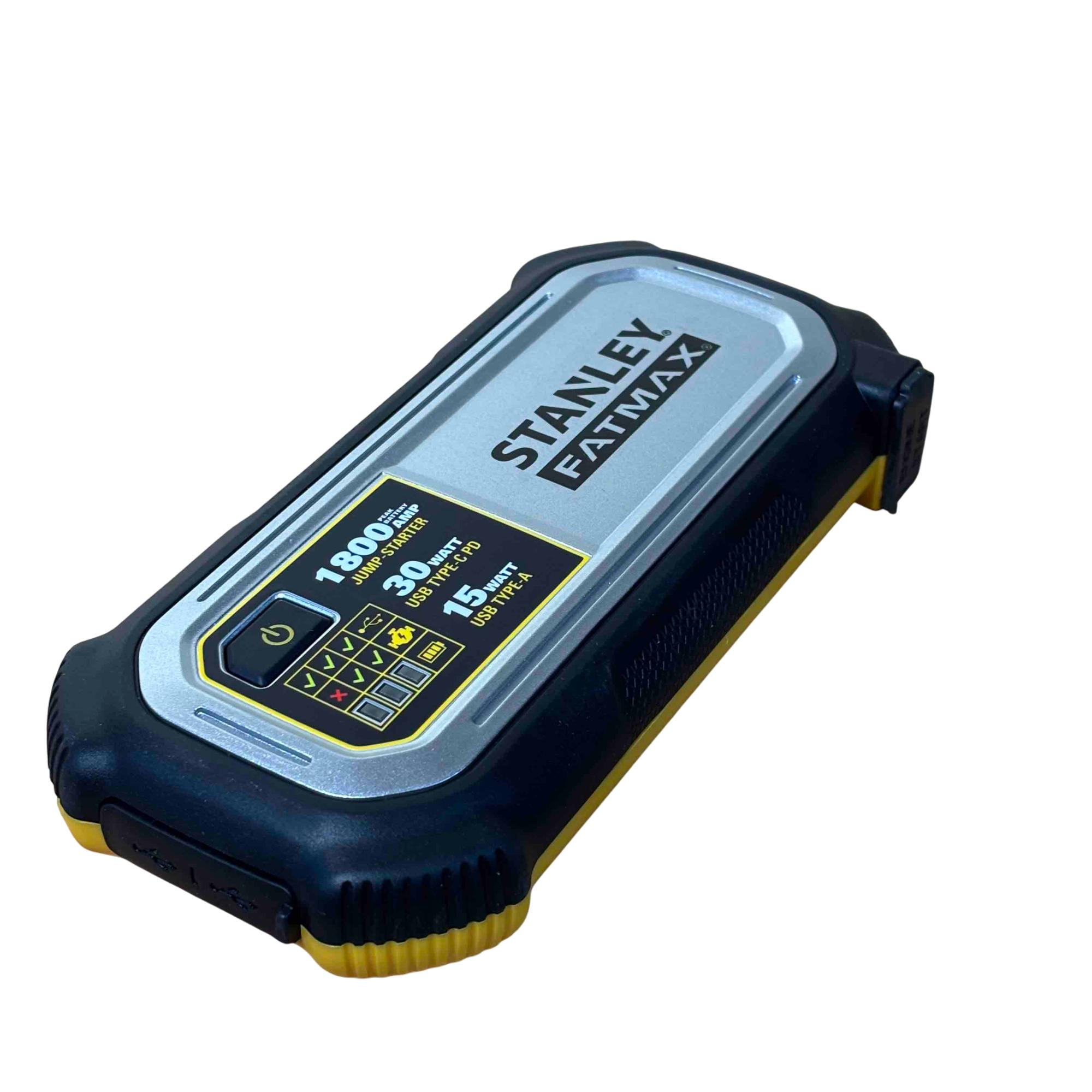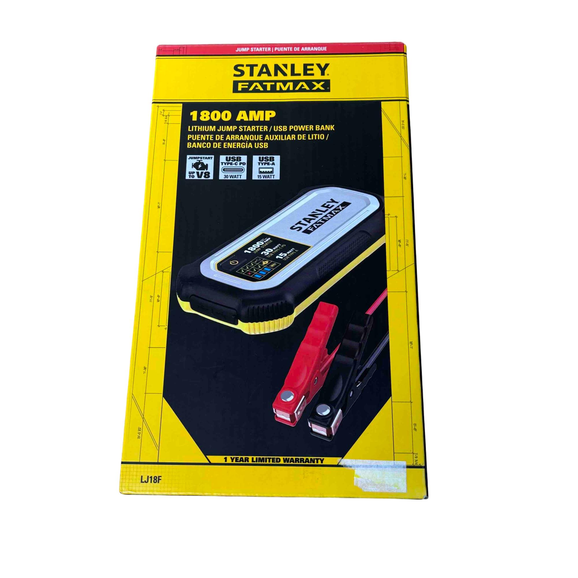 Power up your vehicle and devices anywhere with the Stanley FatMax 1800 AMP Lithium Jump Starter and USB Power Bank. This portable unit features powerful jumper cables, reliable lithium battery technology, and USB ports for rapid charging of electronics. Designed for convenience and safety, its the ultimate roadside assistant for low-voltage vehicles and emergency situations.