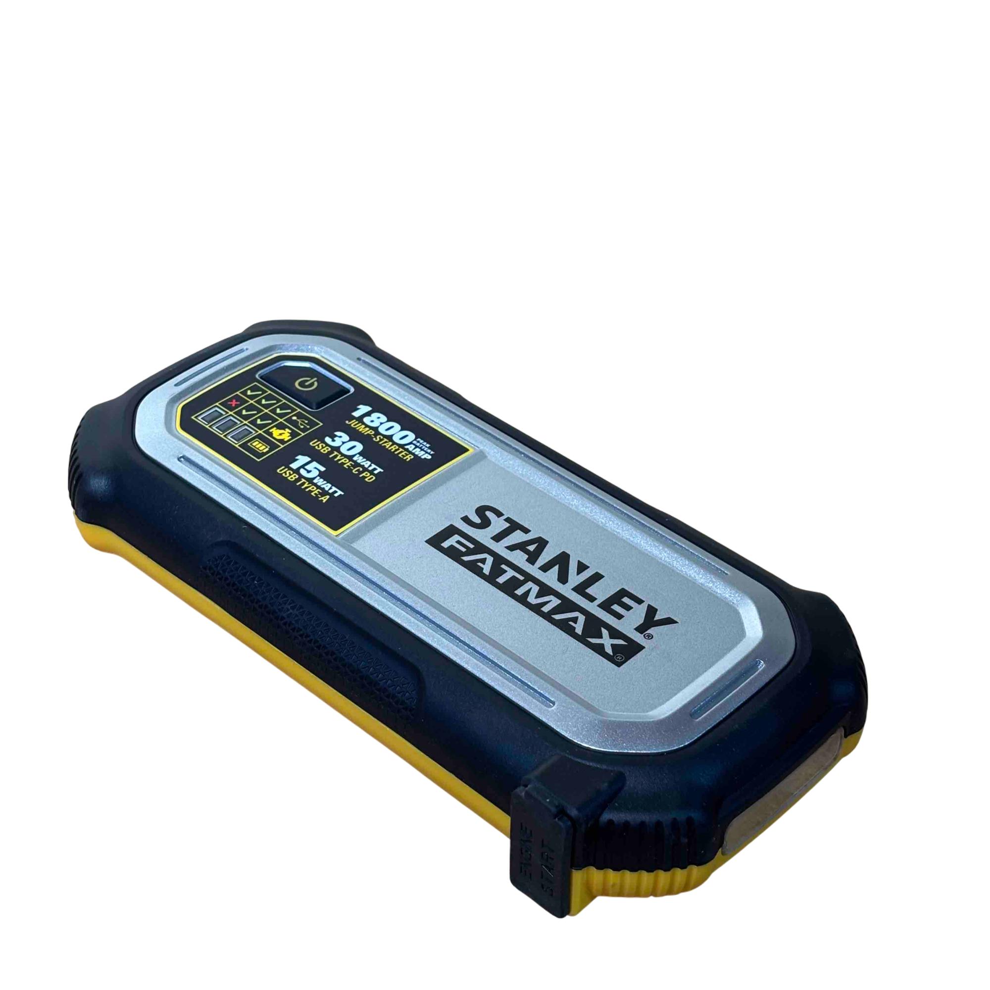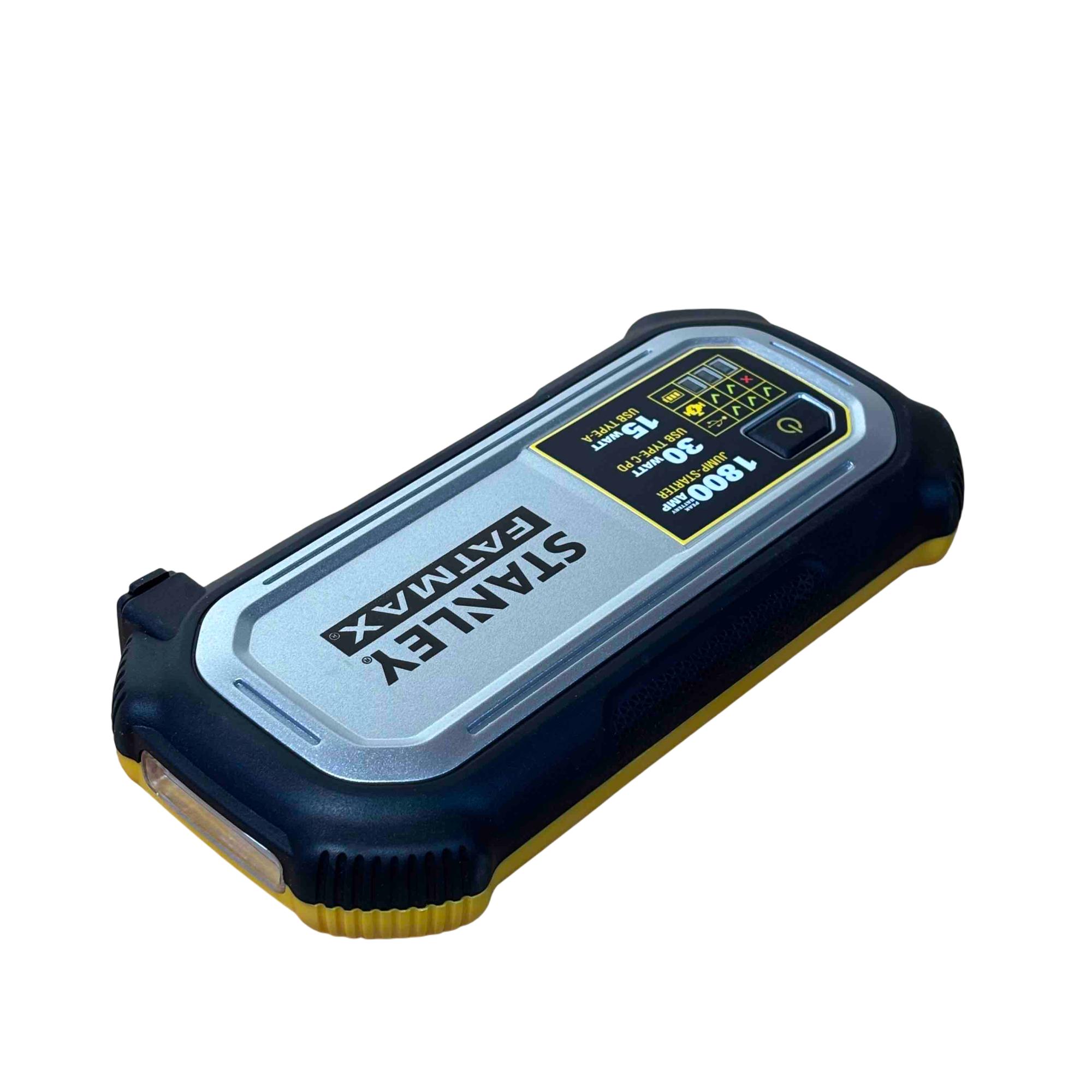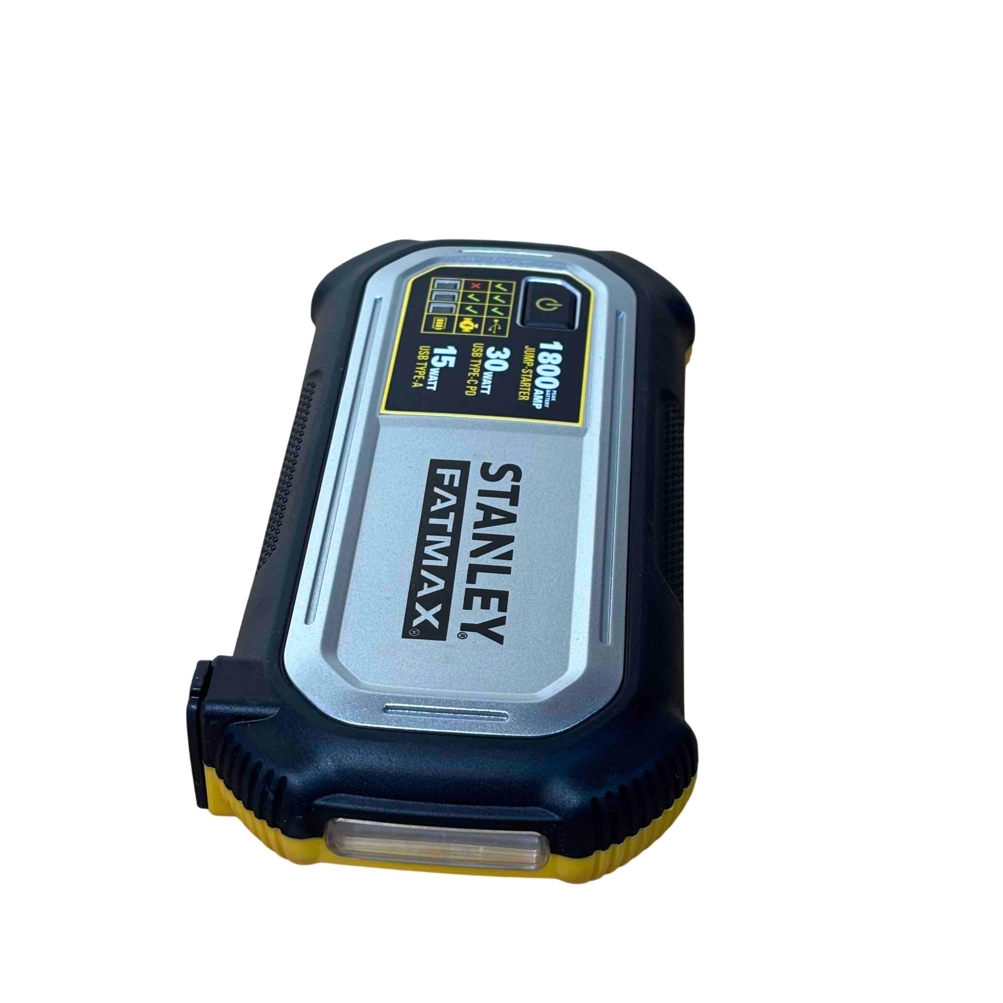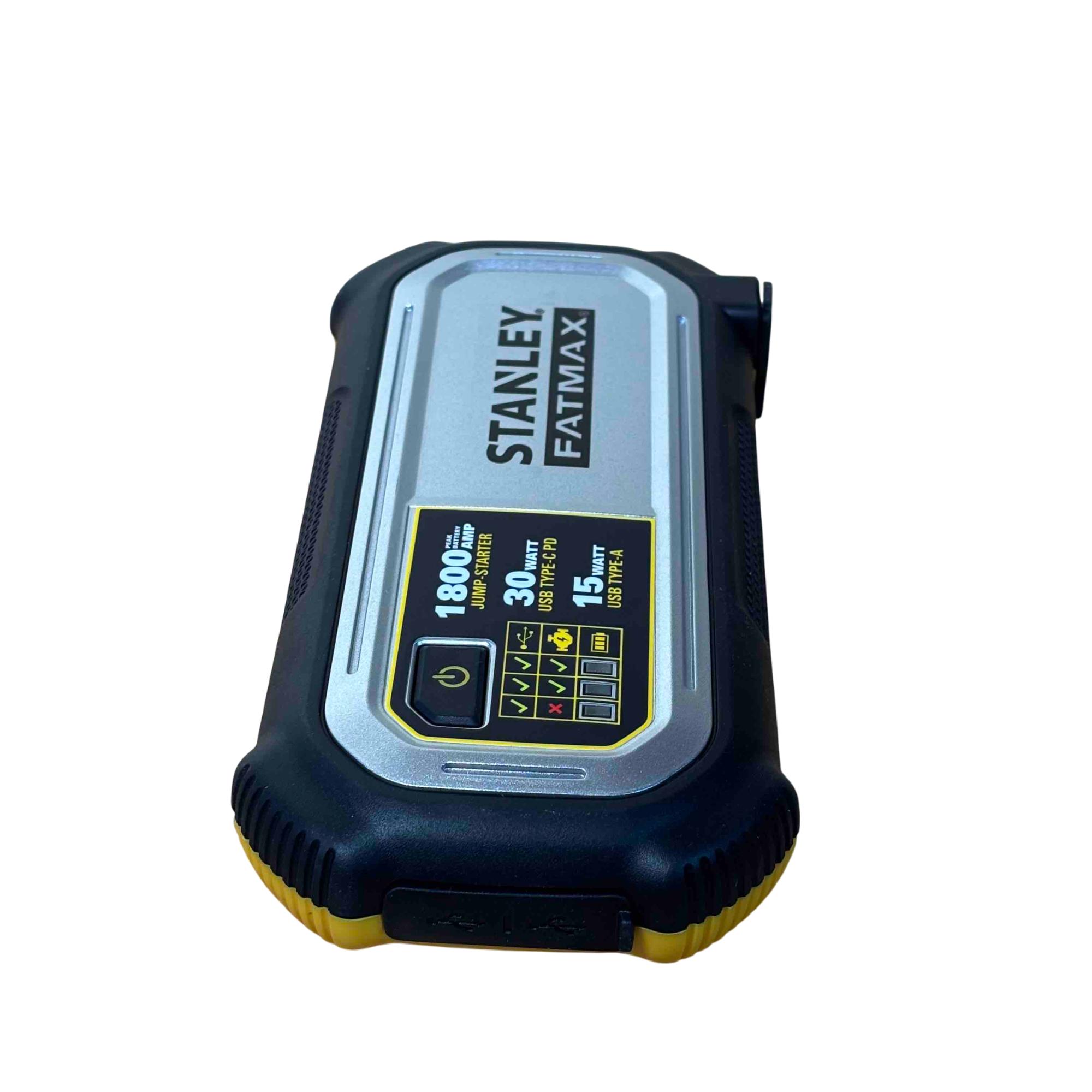Power up your vehicle and devices anywhere with the Stanley FatMax 1800 AMP Lithium Jump Starter and USB Power Bank. This portable unit features powerful jumper cables, reliable lithium battery technology, and USB ports for rapid charging of electronics. Designed for convenience and safety, its the ultimate roadside assistant for low-voltage vehicles and emergency situations.