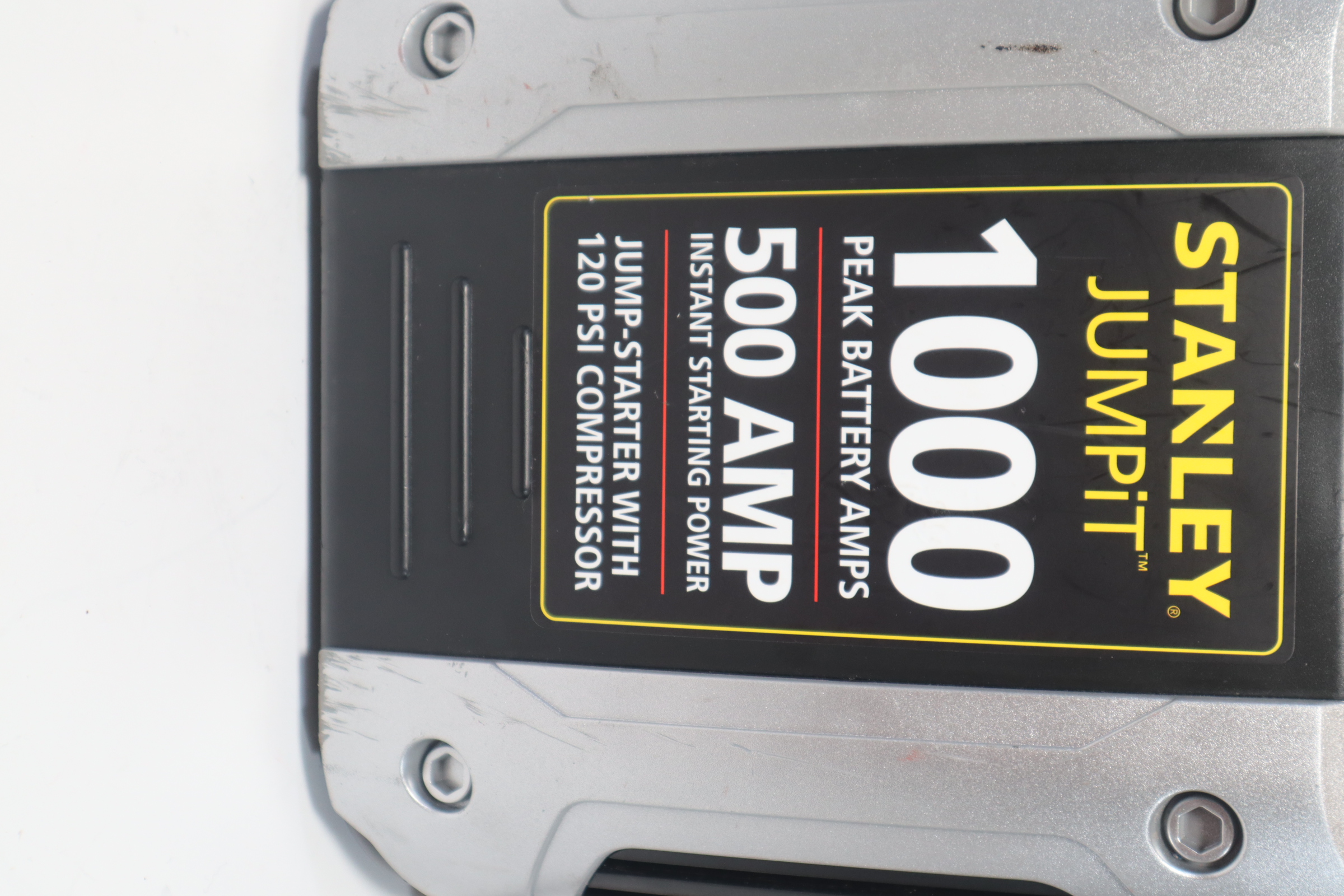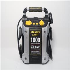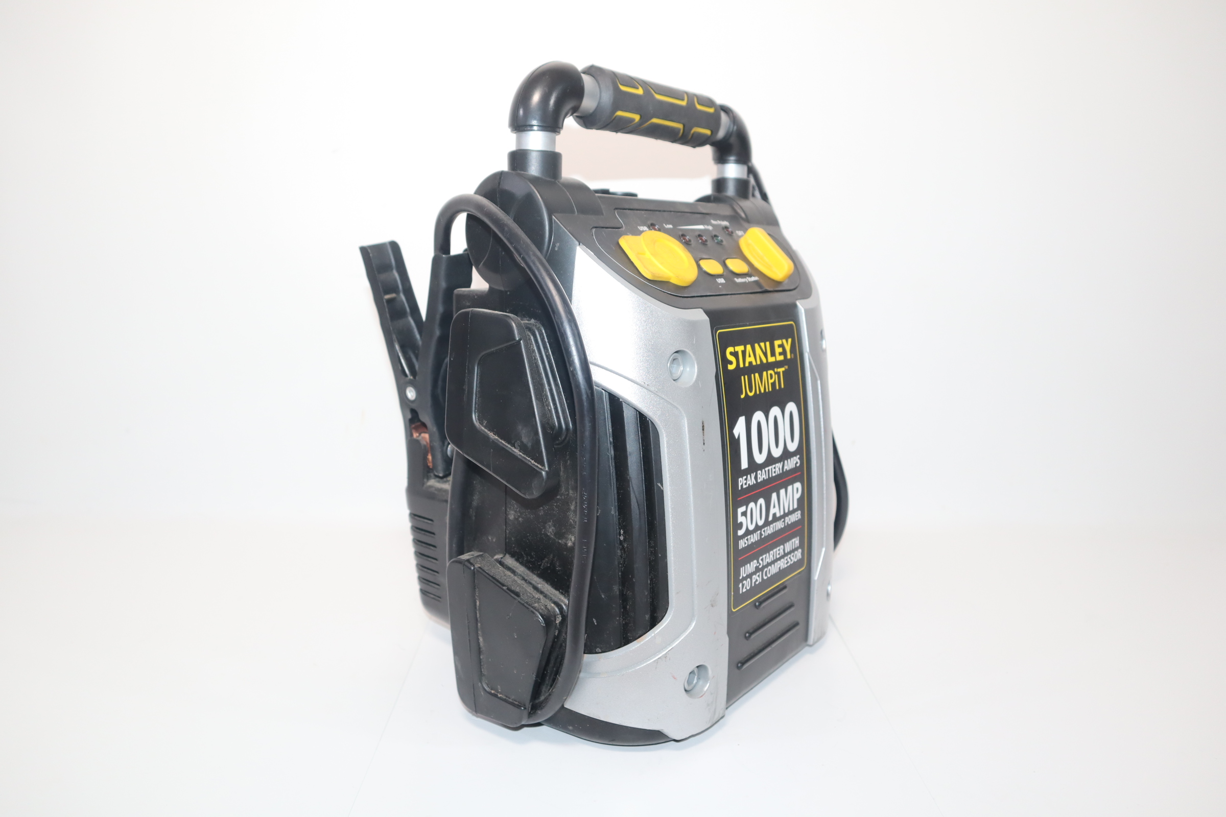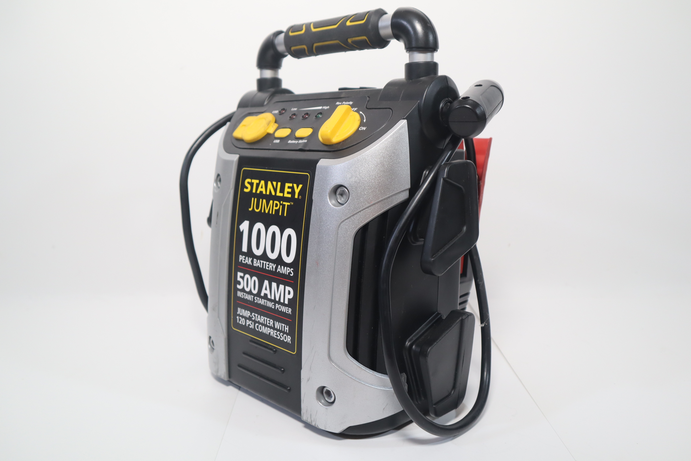Every car owner dreads the day when their car's battery just won't start. The situation gets worse when you're alone and there's not another car in sight. Luckily, you can be prepared with the STANLEY 1000 Peak Amp Jump Starter with Compressor. This device packs 500 amps of instant starting power, as well as 1000 peak amps, offering a convenient, portable way to jump-start your battery without relying on another vehicle. All you need to do is connect the hook the clamps to your battery, turn on the switch and start your vehicle. A built-in safety system sounds an alarm if you connected the clamps incorrectly. This jump starter also has a built-in USB port, highly useful if you need to charge your phone, and the 120-psi compressor can help with low tires. With enough power to jump-start your car, truck, motorcycle, boat, RV or tractor, the STANLEY Battery Jump Starter is ideal for everyday use or roadside emergencies (extension cord NOT included). Note: The unit should be charged every 30 days if it is not being used. If it is used, it should be charged immediately overnight.
