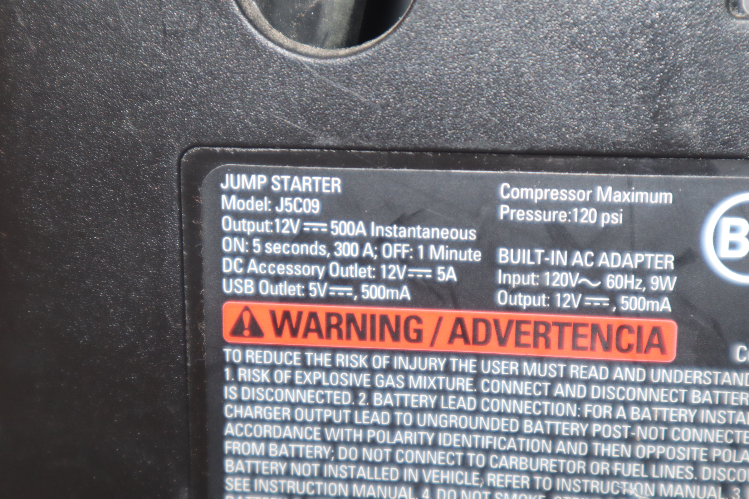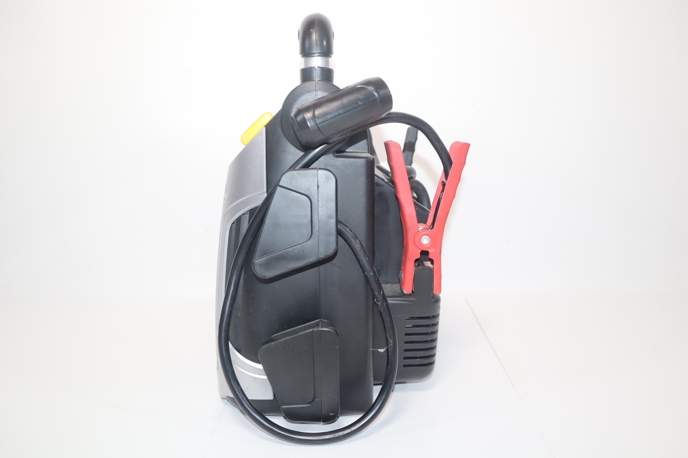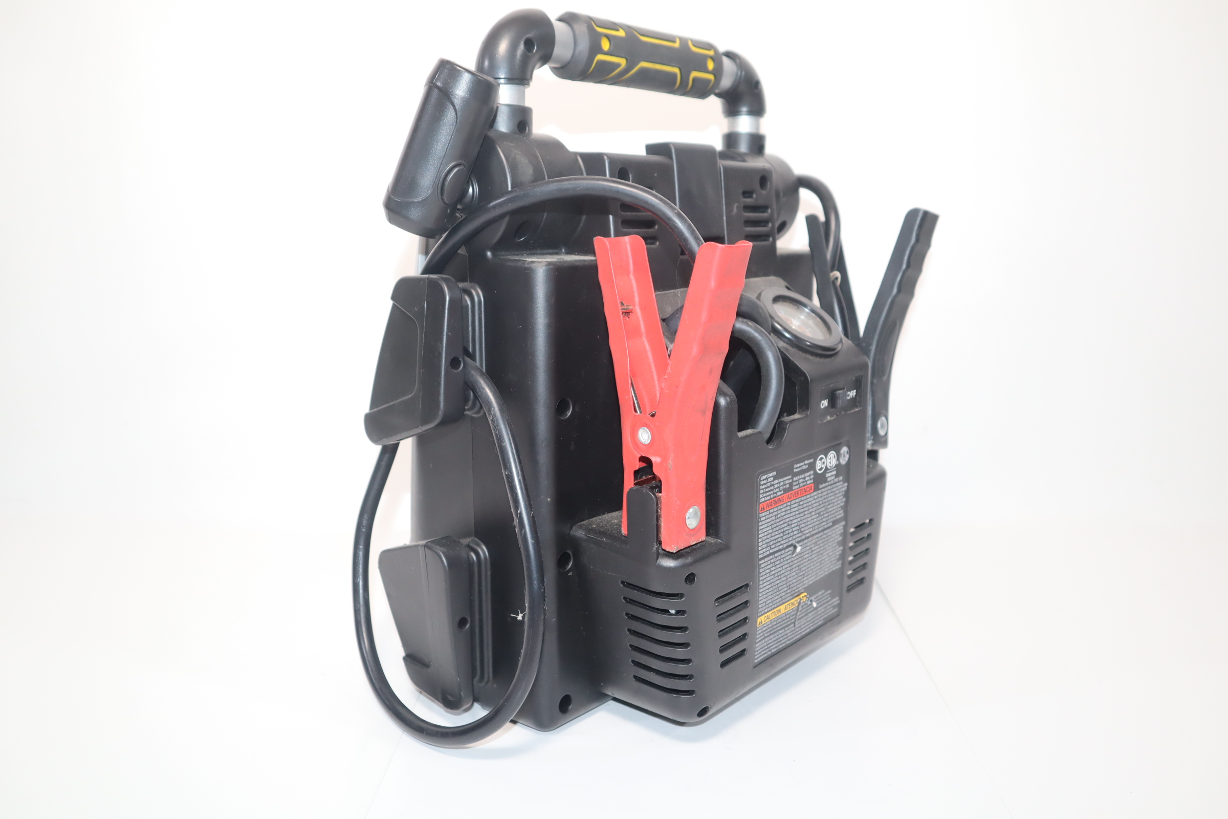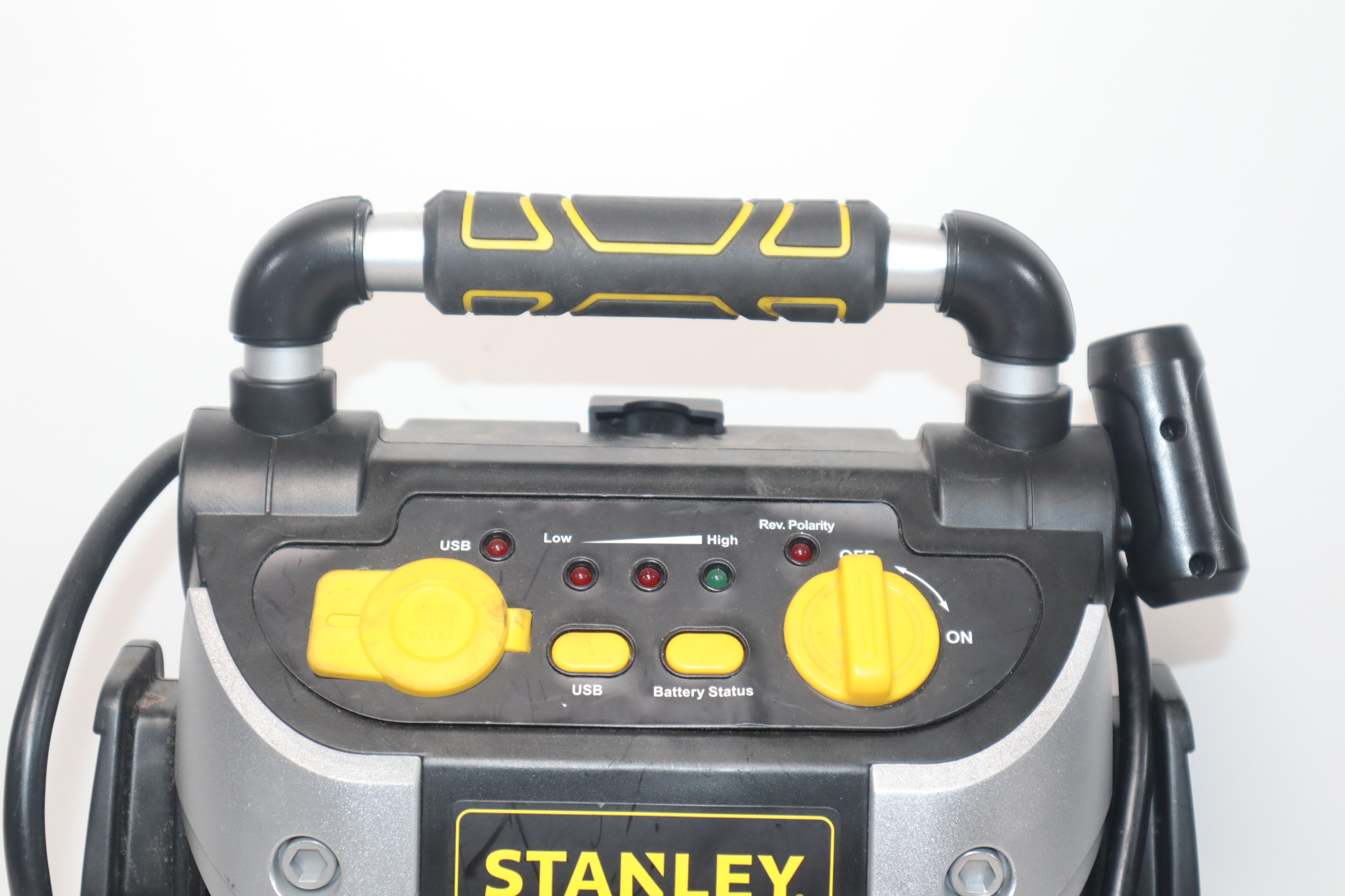 Every car owner dreads the day when their car's battery just won't start. The situation gets worse when you're alone and there's not another car in sight. Luckily, you can be prepared with the STANLEY 1000 Peak Amp Jump Starter with Compressor. This device packs 500 amps of instant starting power, as well as 1000 peak amps, offering a convenient, portable way to jump-start your battery without relying on another vehicle. All you need to do is connect the hook the clamps to your battery, turn on the switch and start your vehicle. A built-in safety system sounds an alarm if you connected the clamps incorrectly. This jump starter also has a built-in USB port, highly useful if you need to charge your phone, and the 120-psi compressor can help with low tires. With enough power to jump-start your car, truck, motorcycle, boat, RV or tractor, the STANLEY Battery Jump Starter is ideal for everyday use or roadside emergencies (extension cord NOT included). Note: The unit should be charged every 30 days if it is not being used. If it is used, it should be charged immediately overnight.