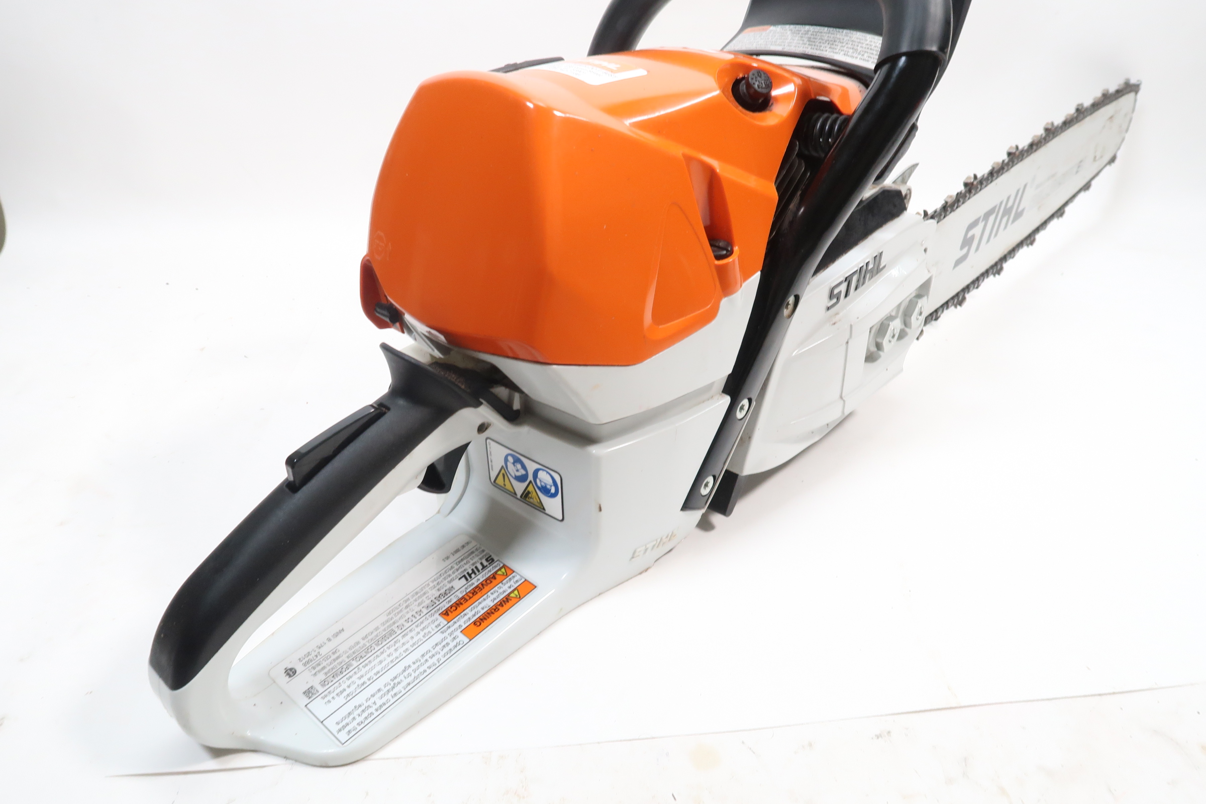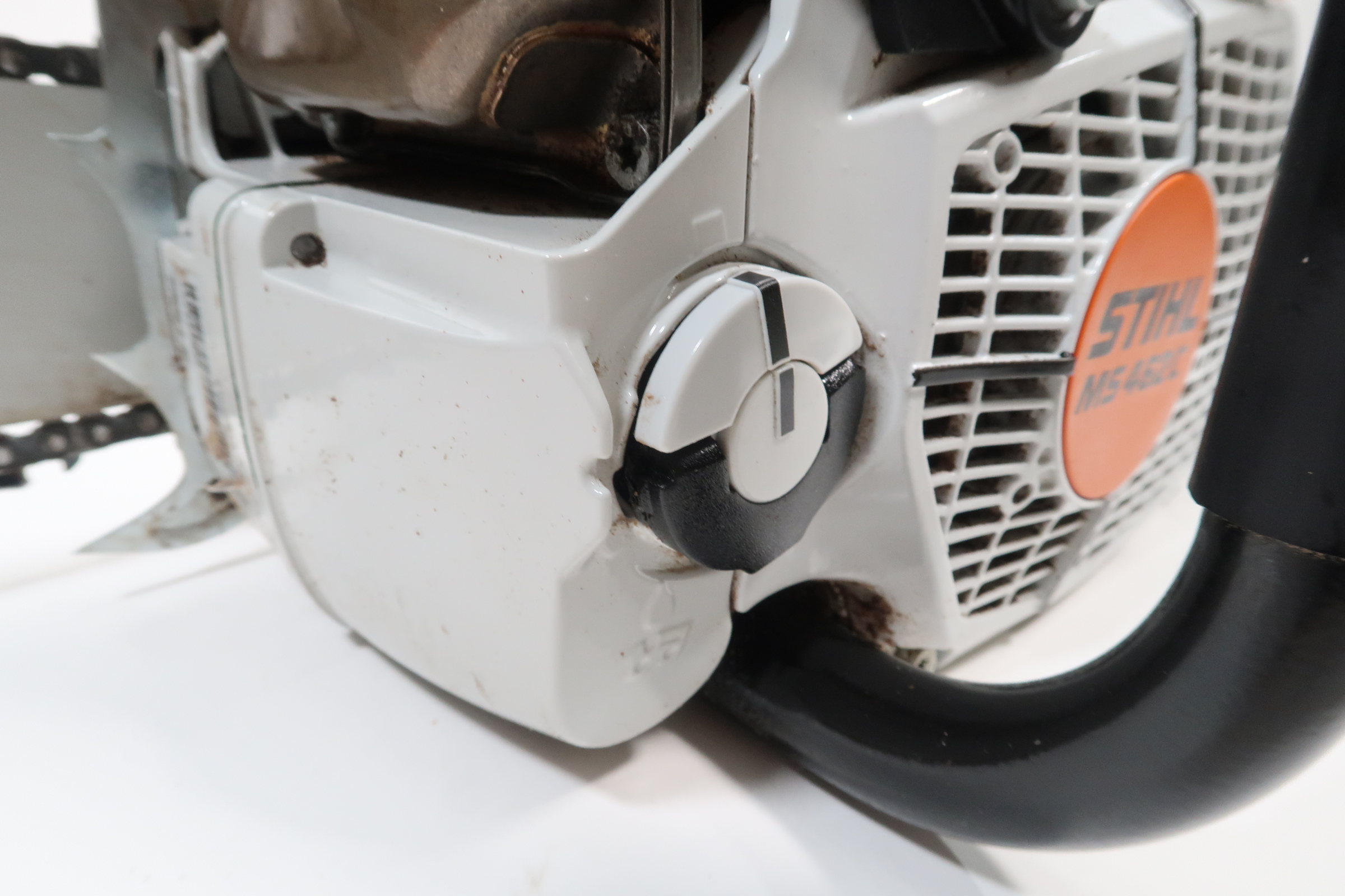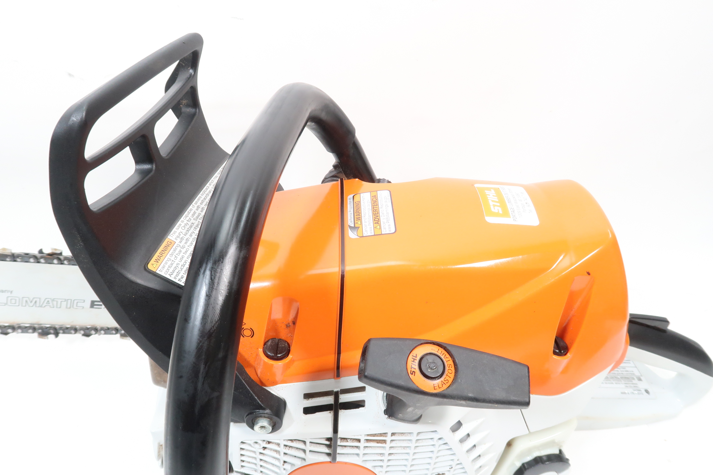 The STIHL Quickstop chain brake is designed to stop the rotation of the chain if activated by the operators hand or by inertia if the saw kicks back with sufficient force