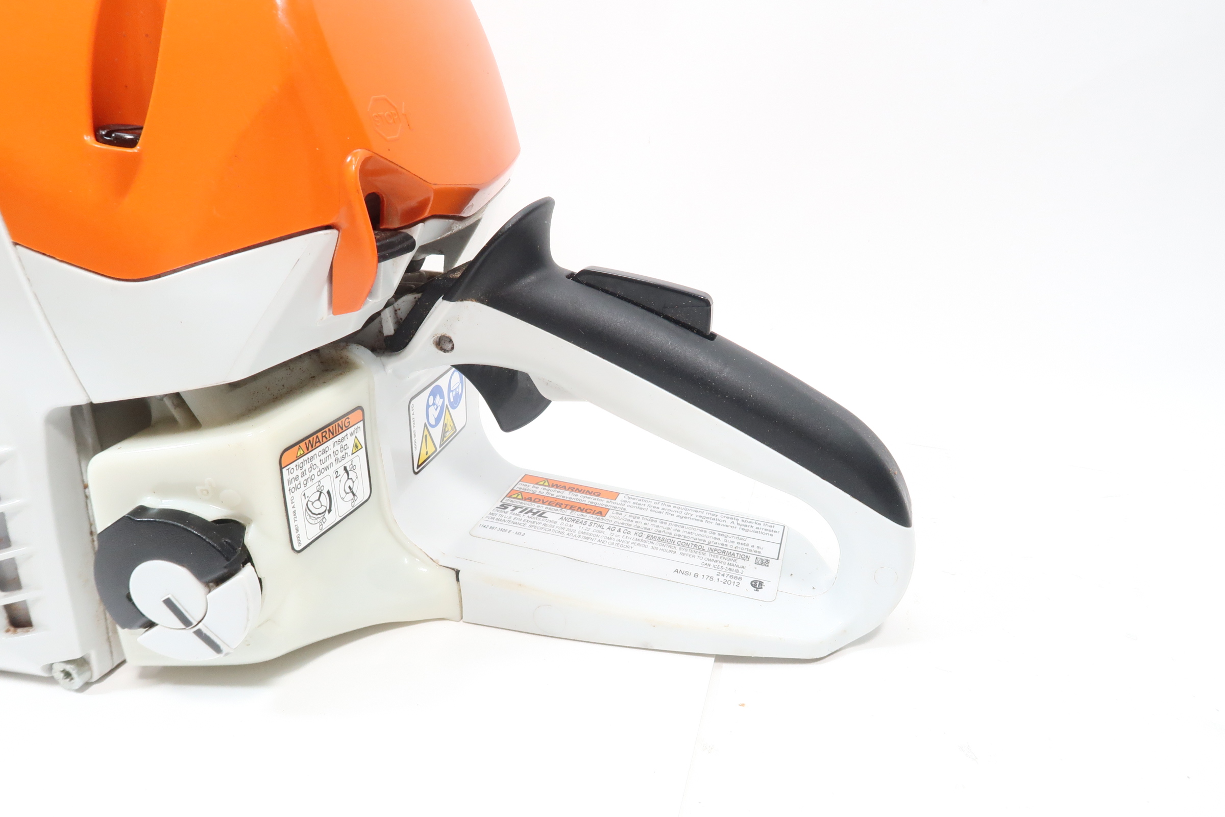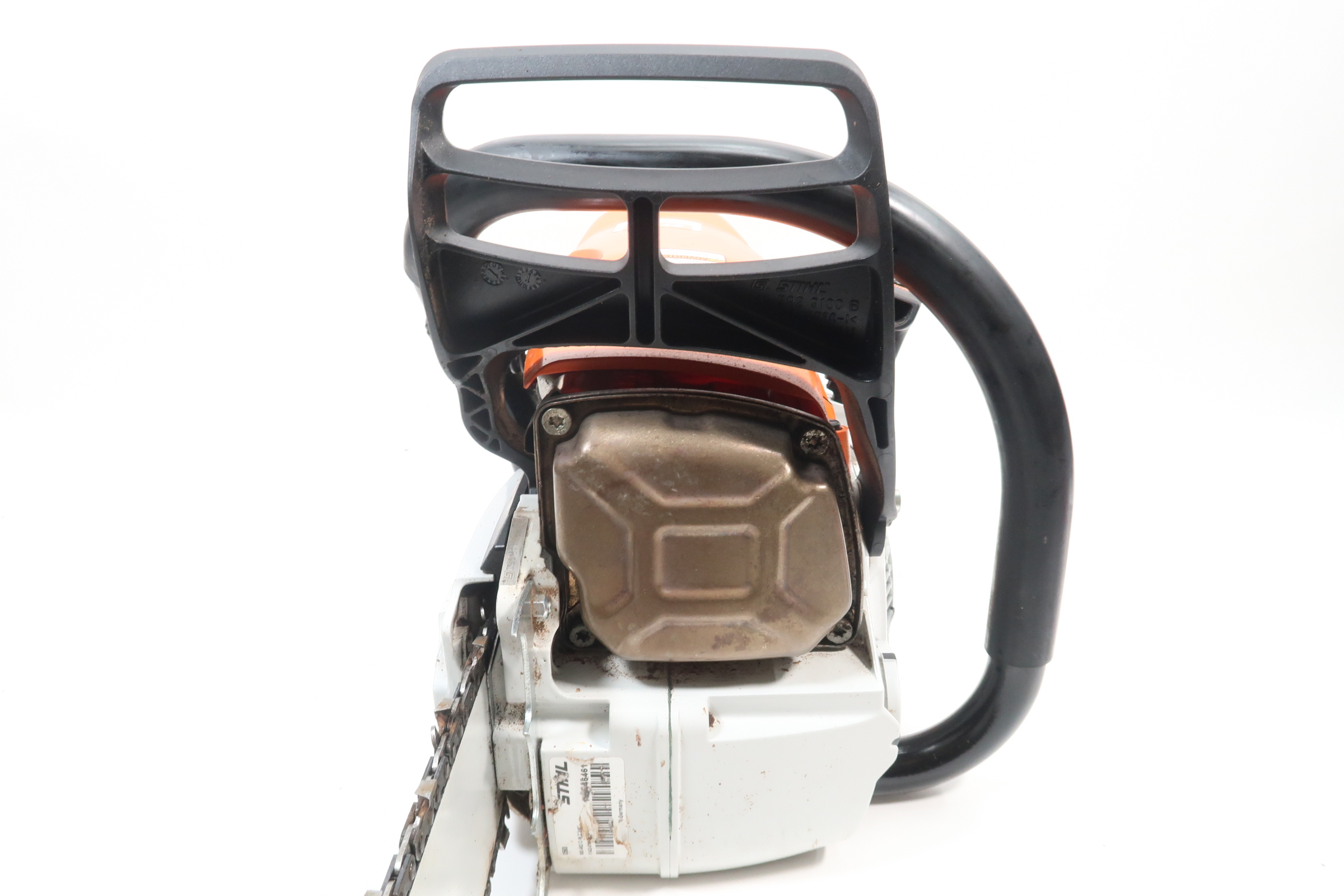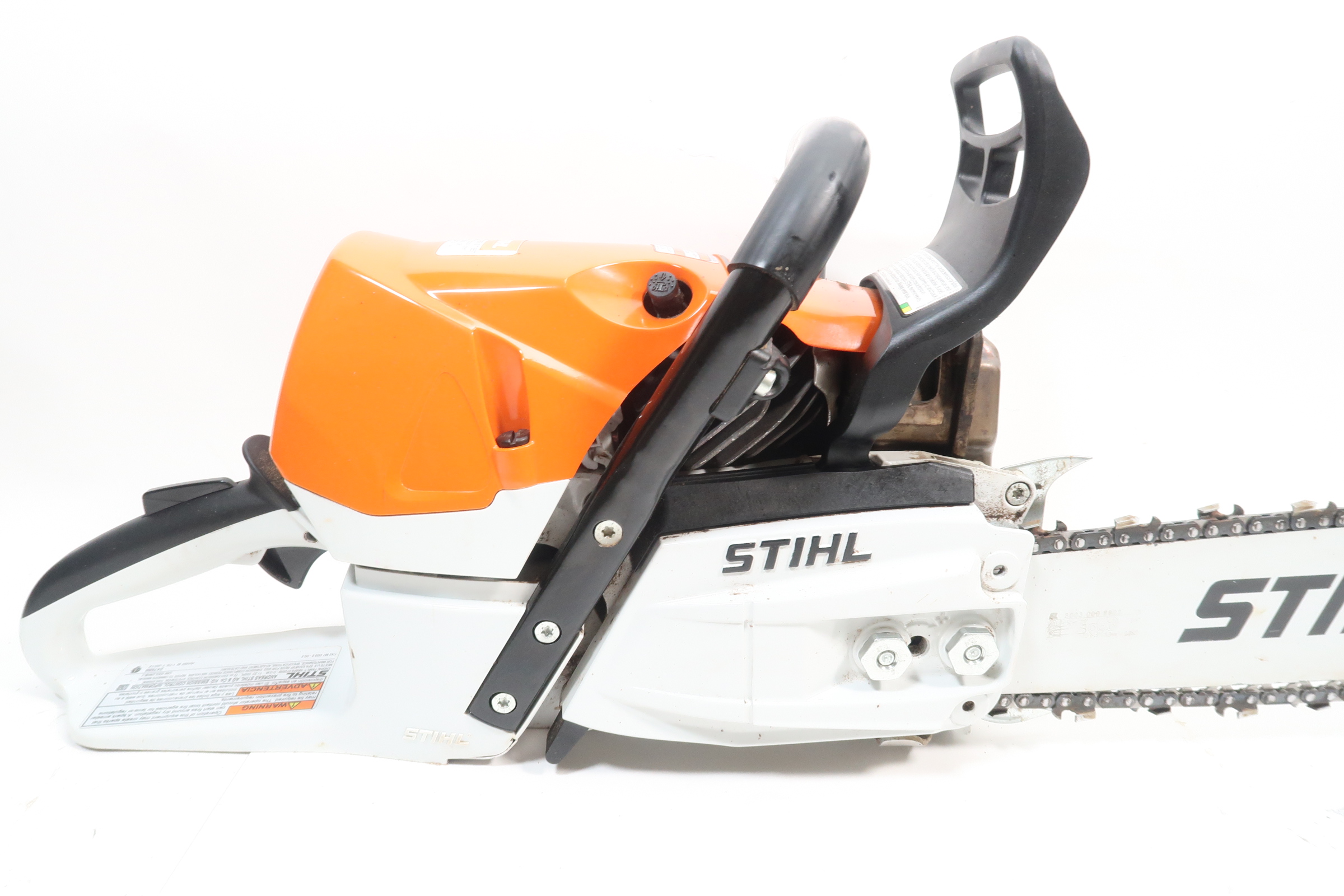 The STIHL Quickstop chain brake is designed to stop the rotation of the chain if activated by the operators hand or by inertia if the saw kicks back with sufficient force