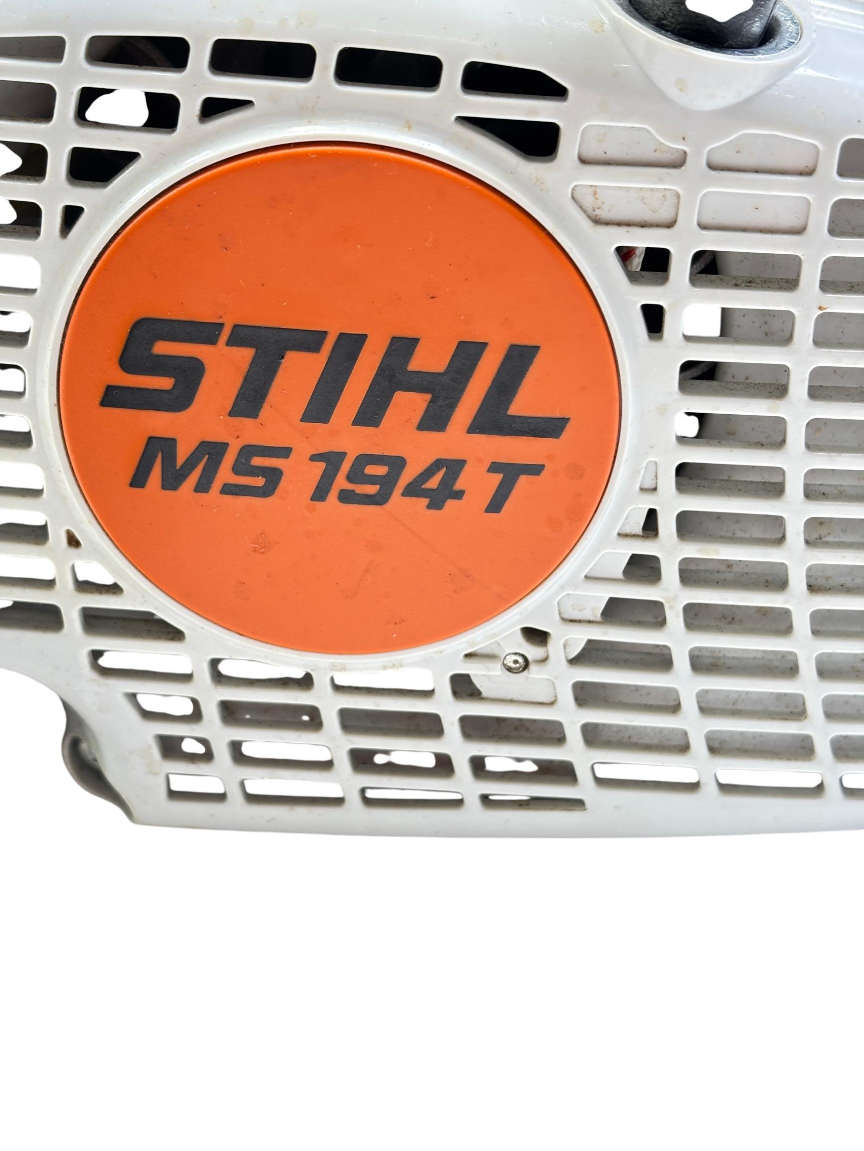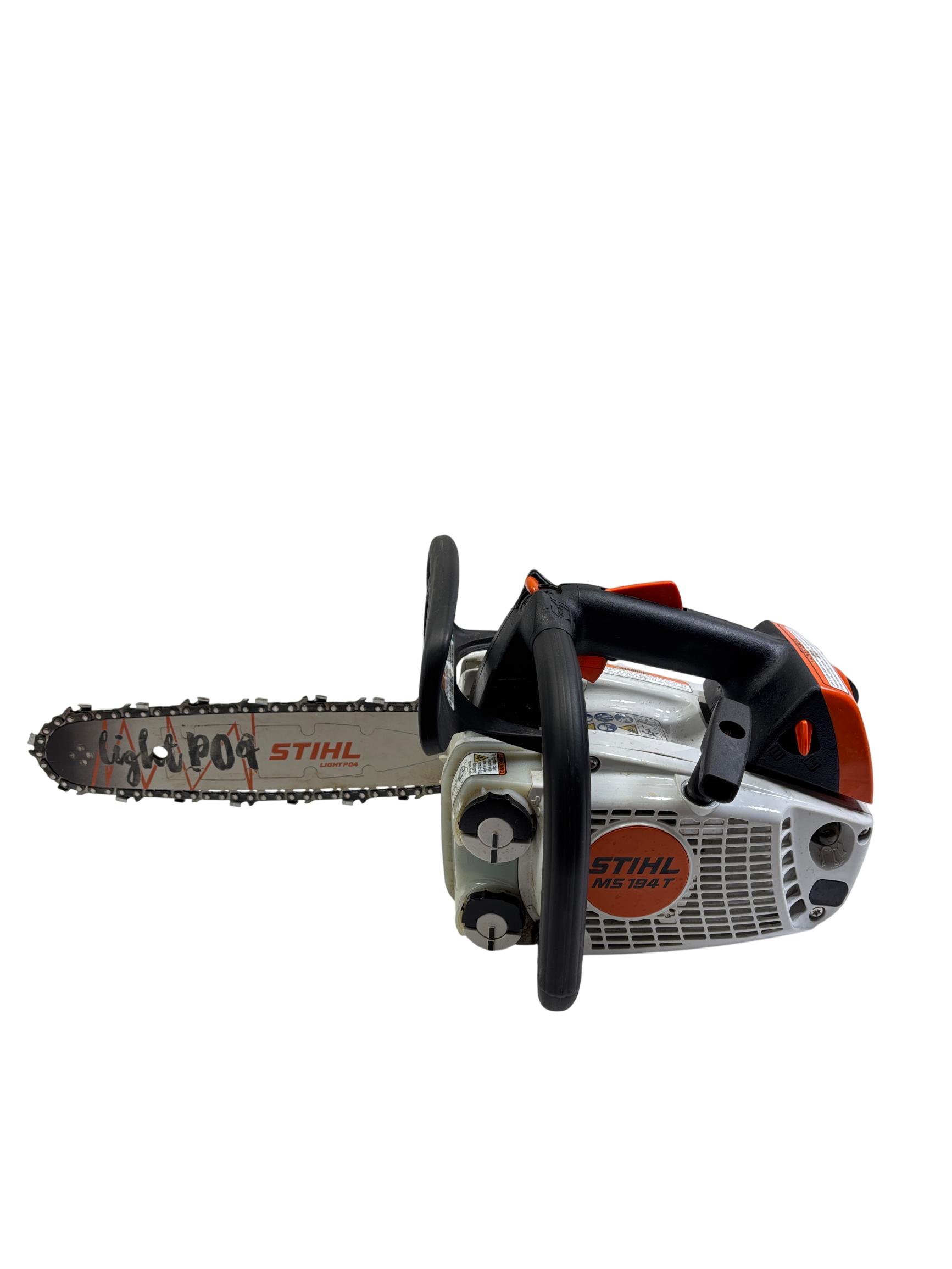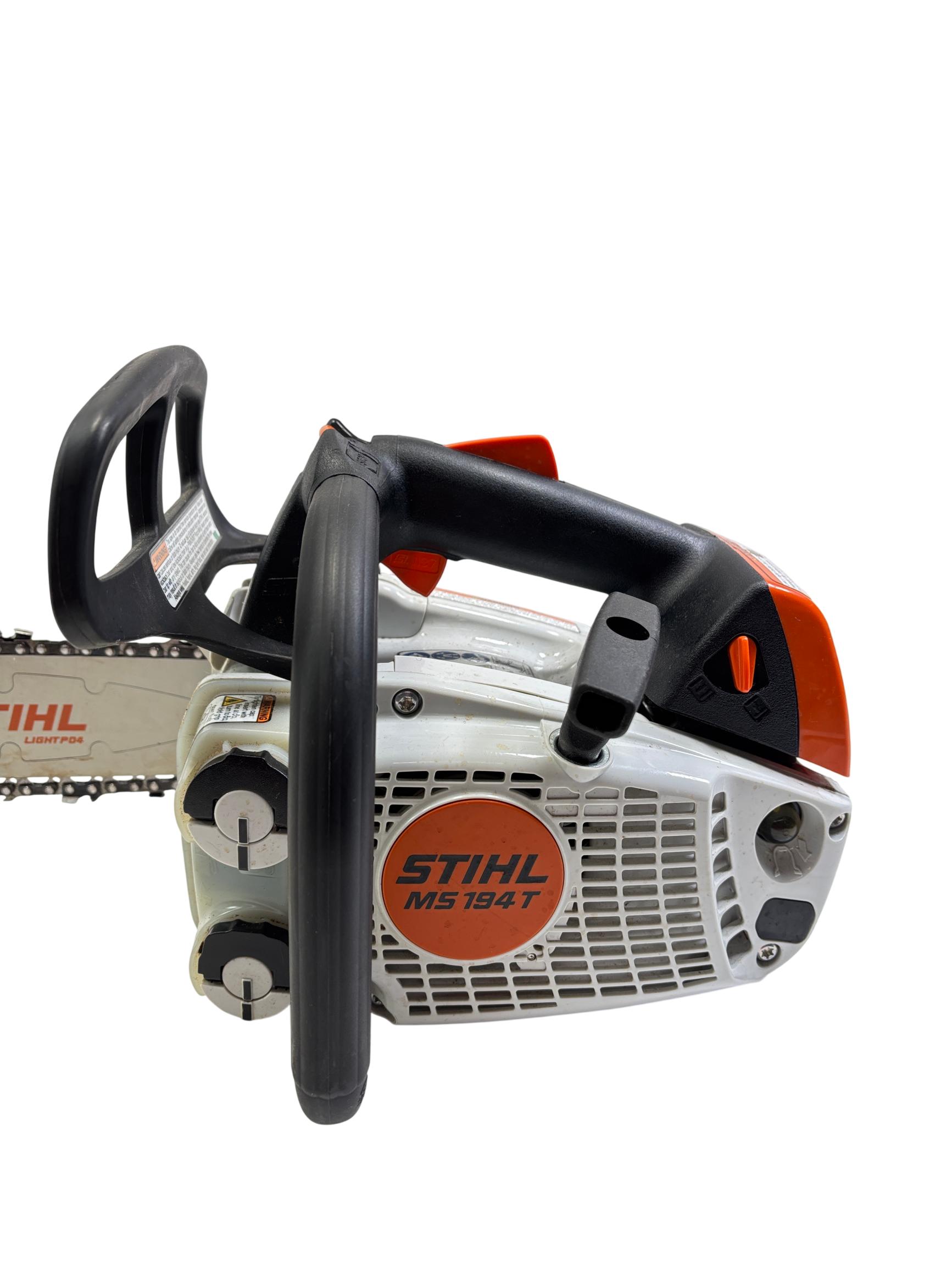 STIHL MS 194 T 16" Gas-Powered Top-Handle Professional Chainsaw delivers powerful performance with a 31.8cc engine and a durable 16-inch guide bar designed for precision cutting in tight spaces. Engineered for professional arborists and tree workers, it features an ergonomic top-handle design that enhances maneuverability and control during demanding tasks.