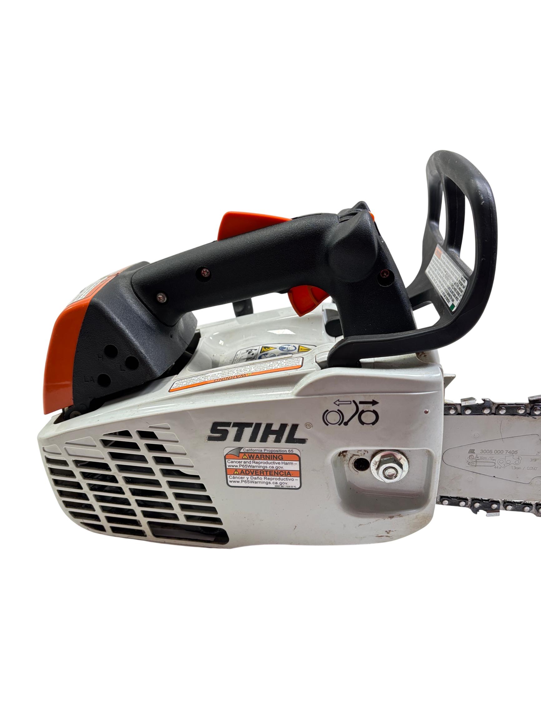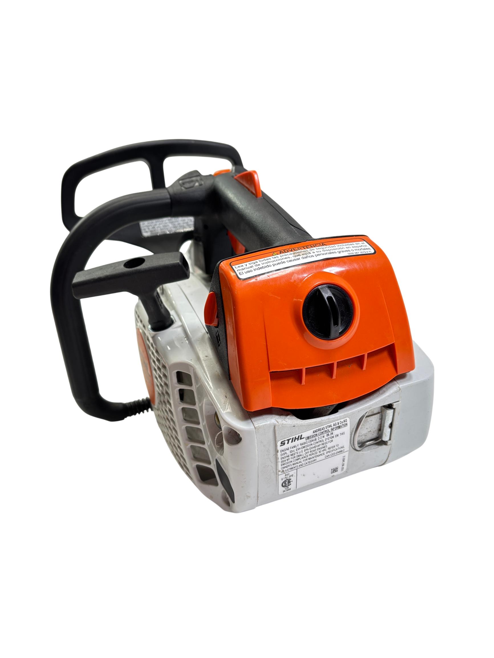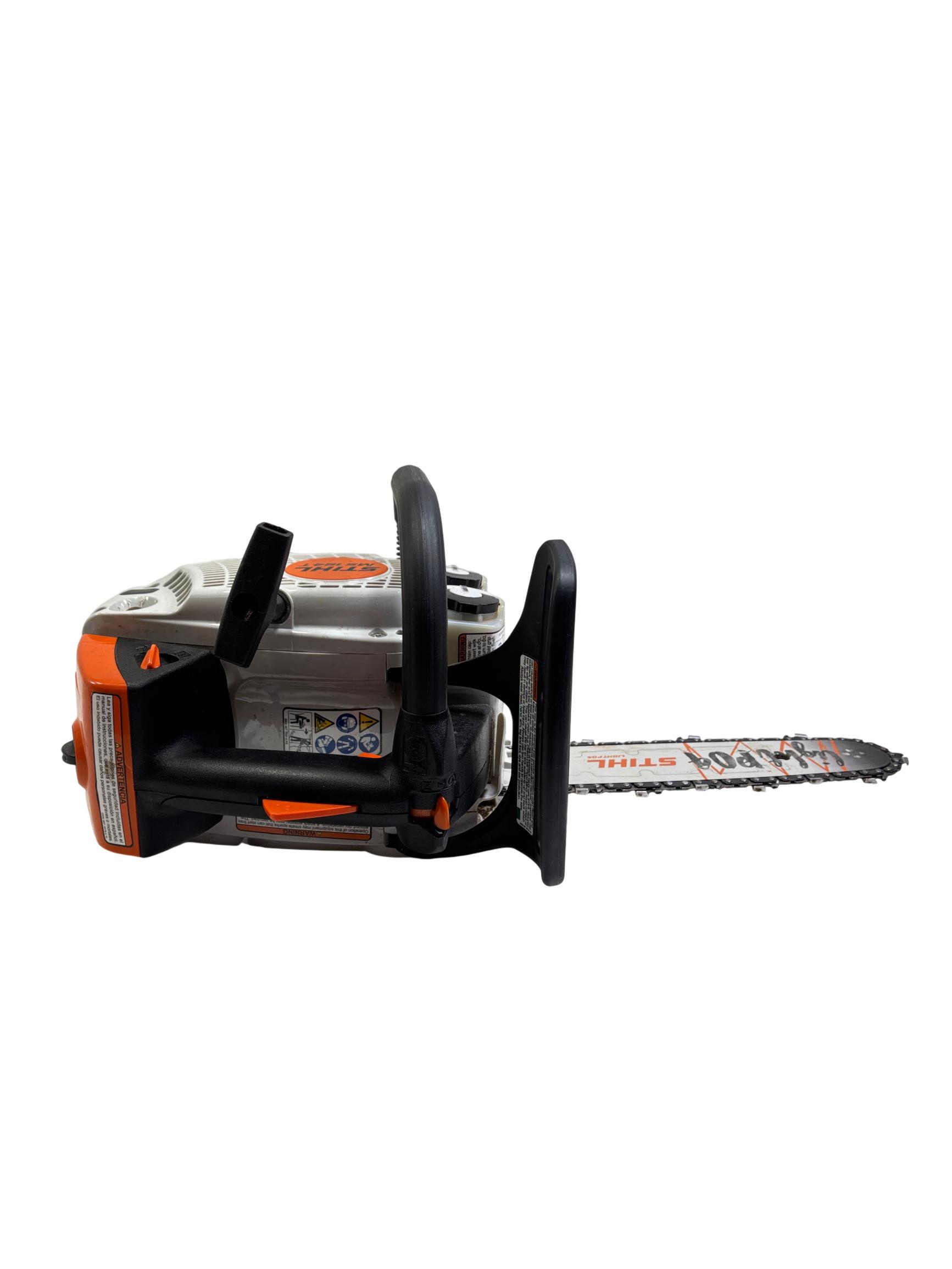 STIHL MS 194 T 16" Gas-Powered Top-Handle Professional Chainsaw delivers powerful performance with a 31.8cc engine and a durable 16-inch guide bar designed for precision cutting in tight spaces. Engineered for professional arborists and tree workers, it features an ergonomic top-handle design that enhances maneuverability and control during demanding tasks.