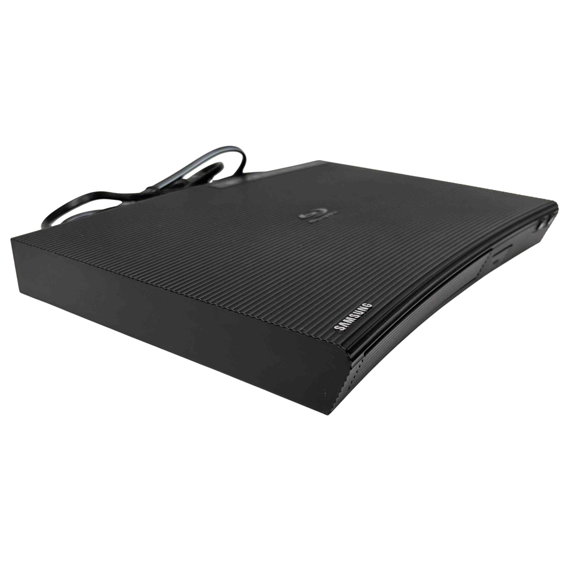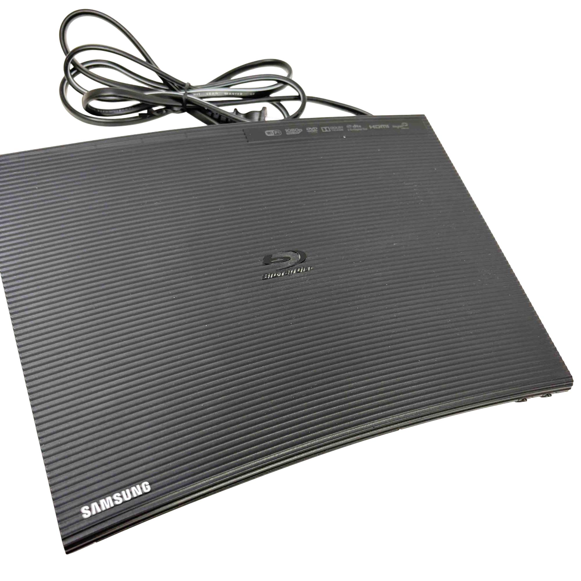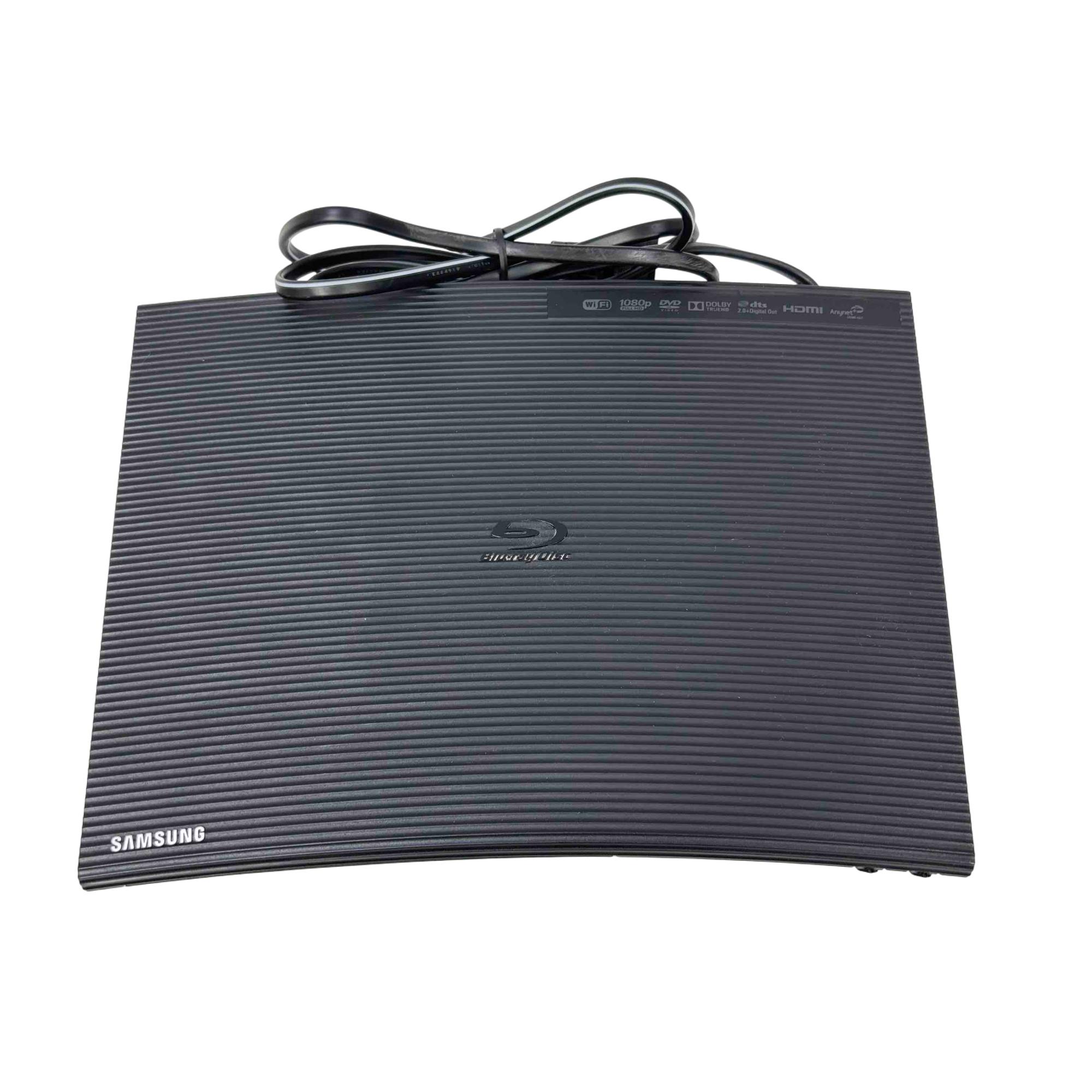 Experience high-quality entertainment with the Samsung BD-JM57C Blu-ray & DVD Player, featuring built-in Wi-Fi for seamless streaming of your favorite content. This sleek, black device supports both Blu-ray and DVD formats, ensuring compatibility with a wide range of discs. The compact design and included controller make it a perfect addition to any home theater setup.